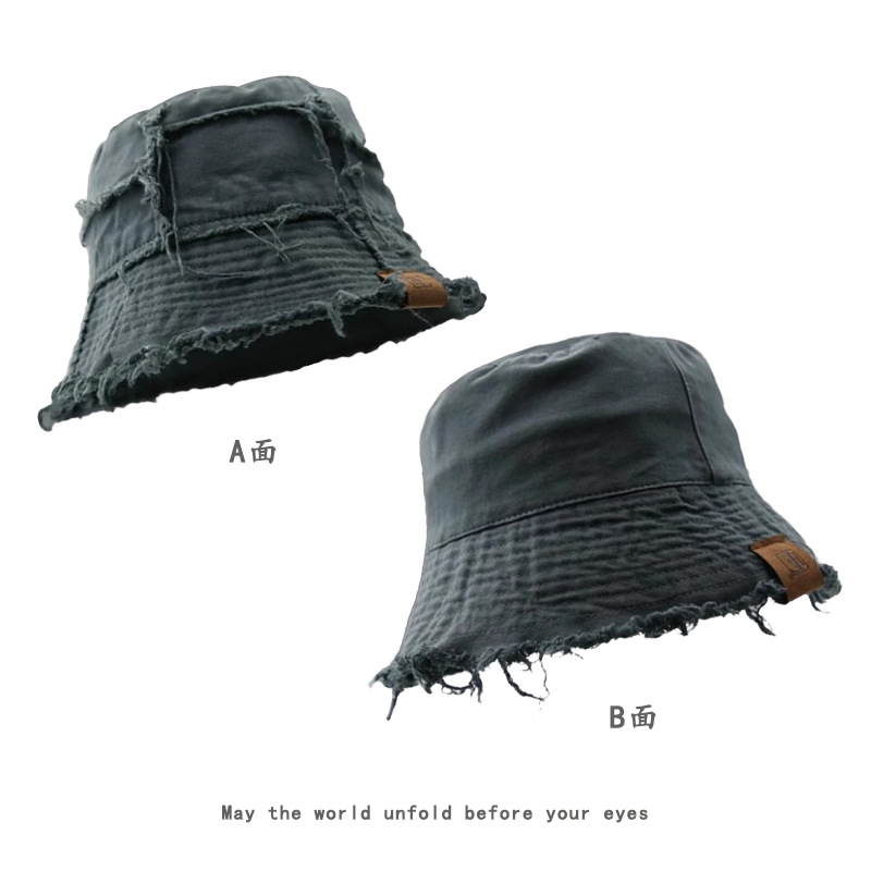 남성과 여성을위한 일본식 씻은 모피 가장자리 어부 모자 봄과 여름 햇빛 양면 양면 양동이 모자 파괴 바람 거지 모자