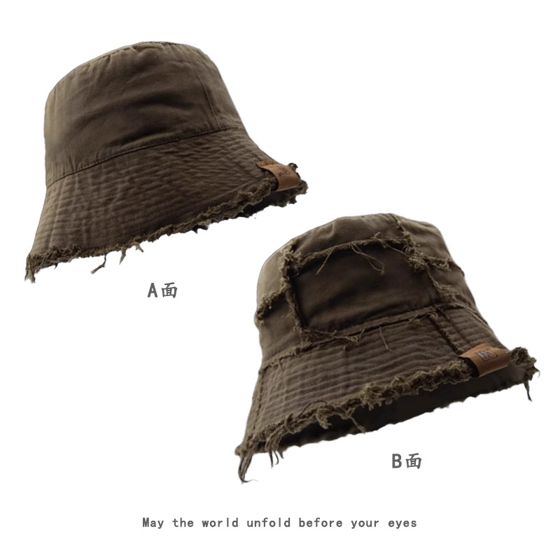 남성과 여성을위한 일본식 씻은 모피 가장자리 어부 모자 봄과 여름 햇빛 양면 양면 양동이 모자 파괴 바람 거지 모자스토어 가기