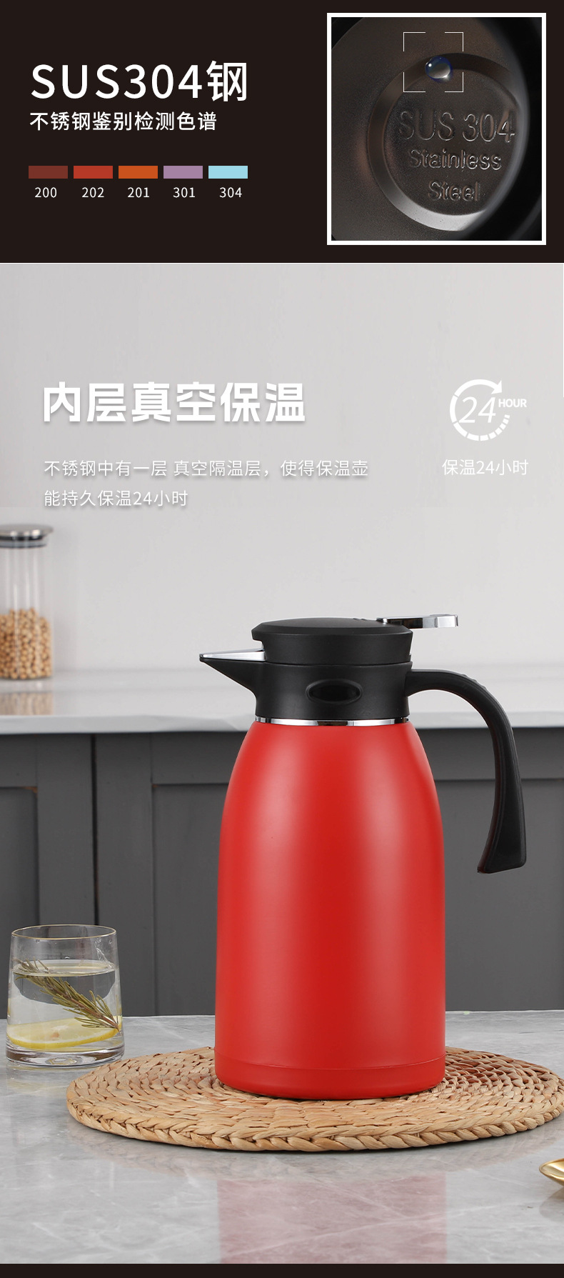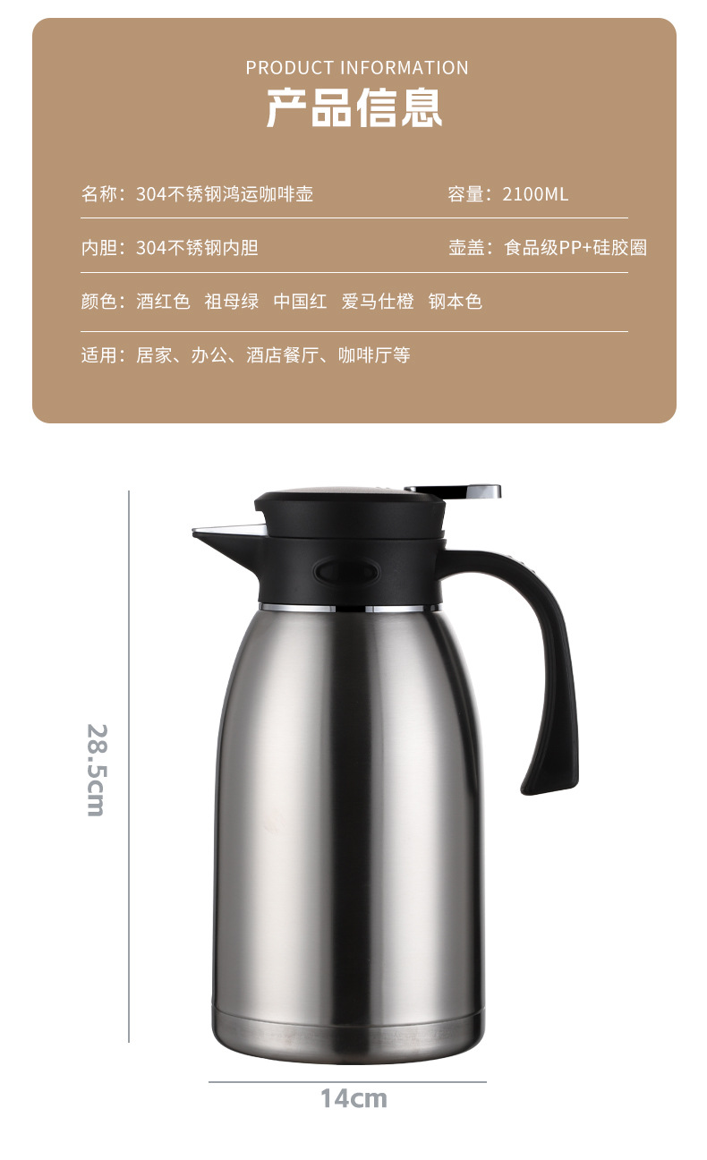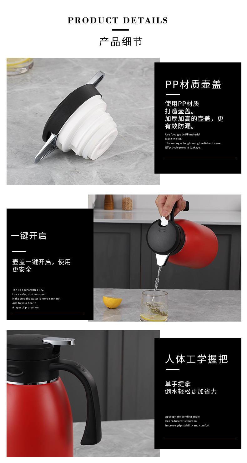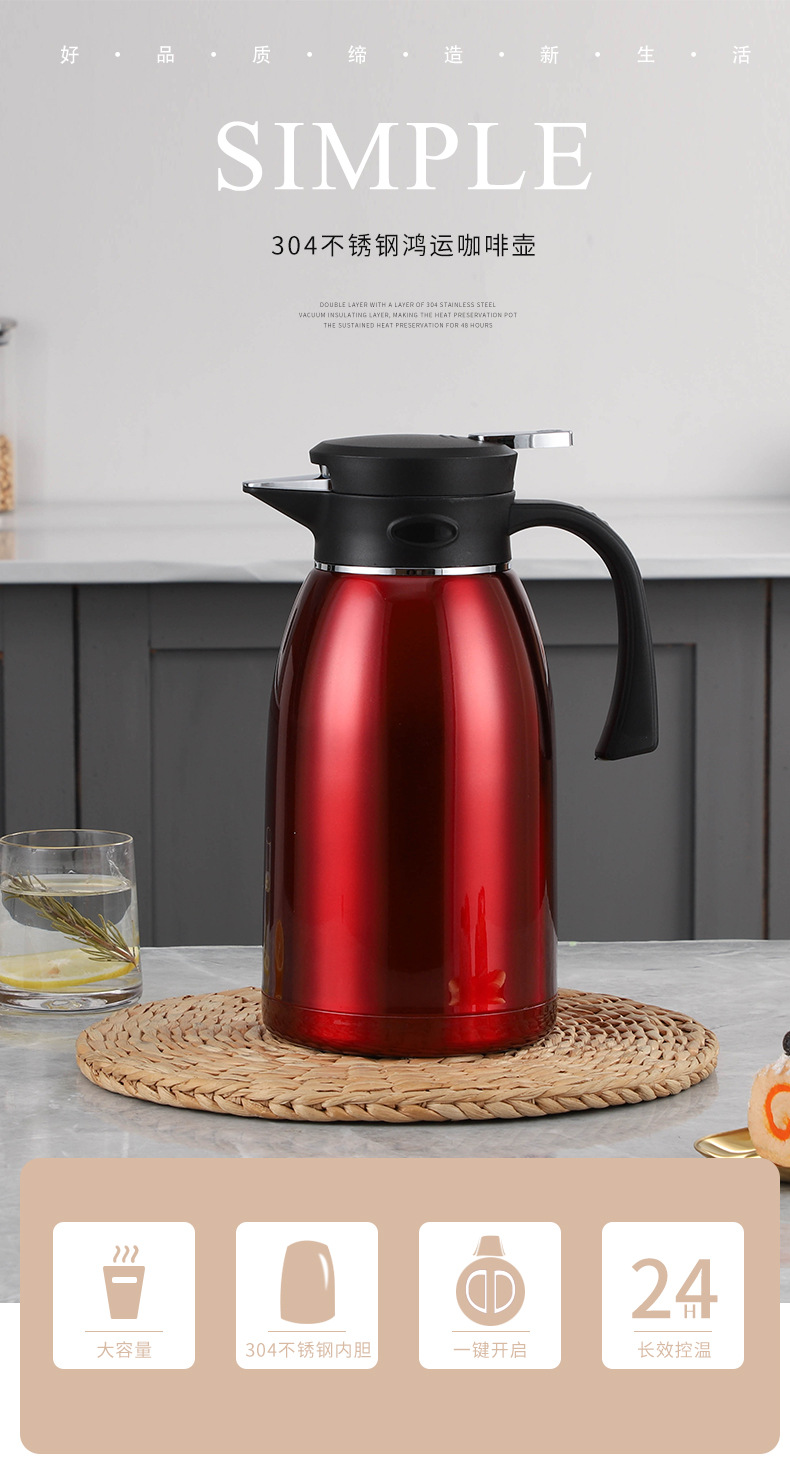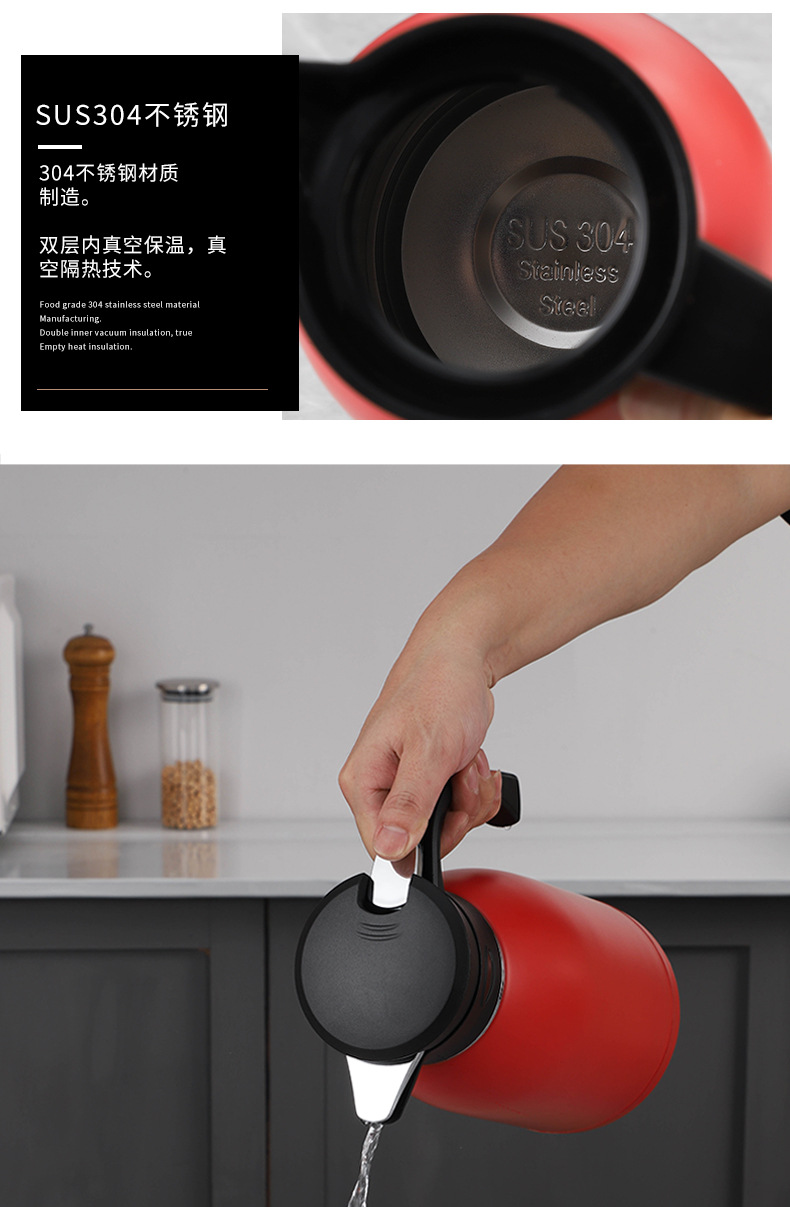 홍윤 진공 주전자 304 스테인레스 스틸 보온병 주전자 가정용 주전자 대용량 보온병 보일러