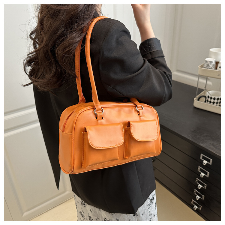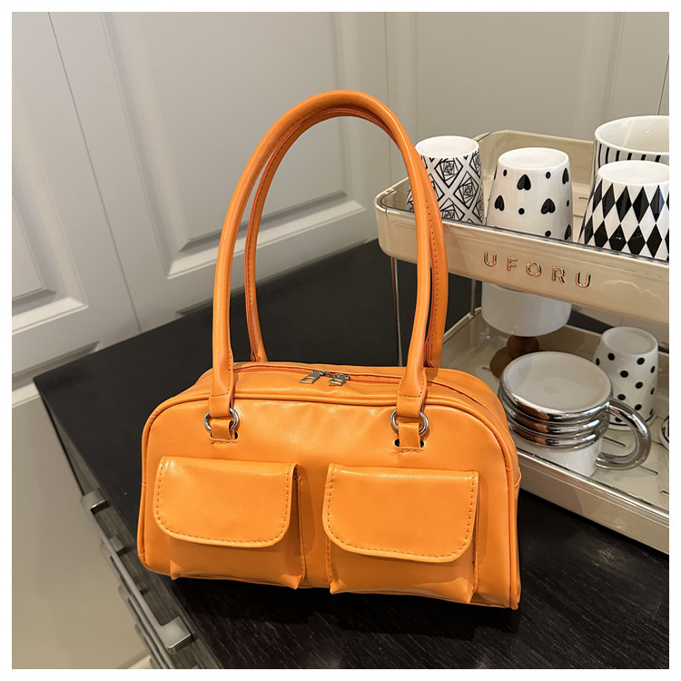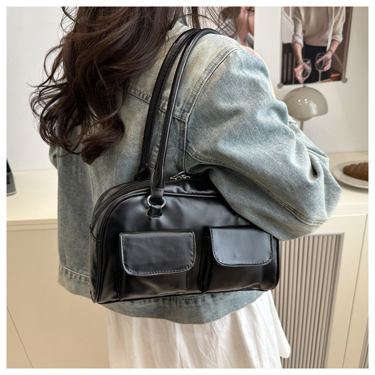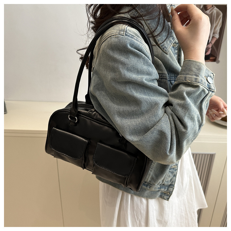 한국 스타일 세련된 디자인 언더암 가방 2025 봄 새로운 보스턴 가방 유행 더블 포켓 볼링 숄더 백