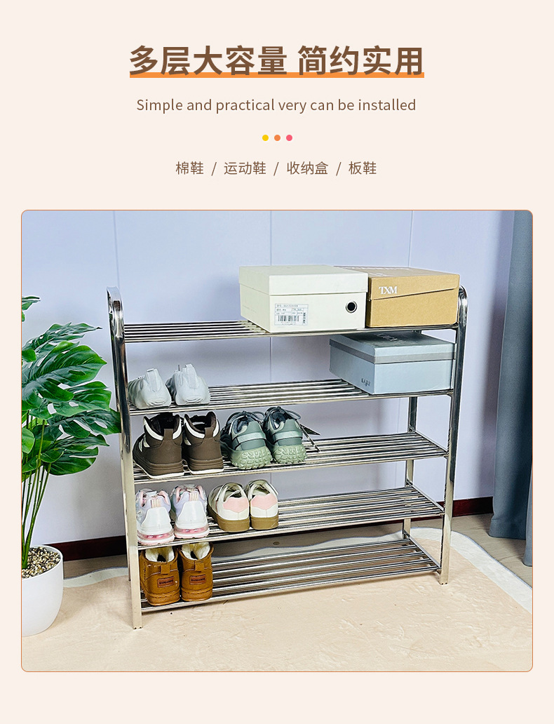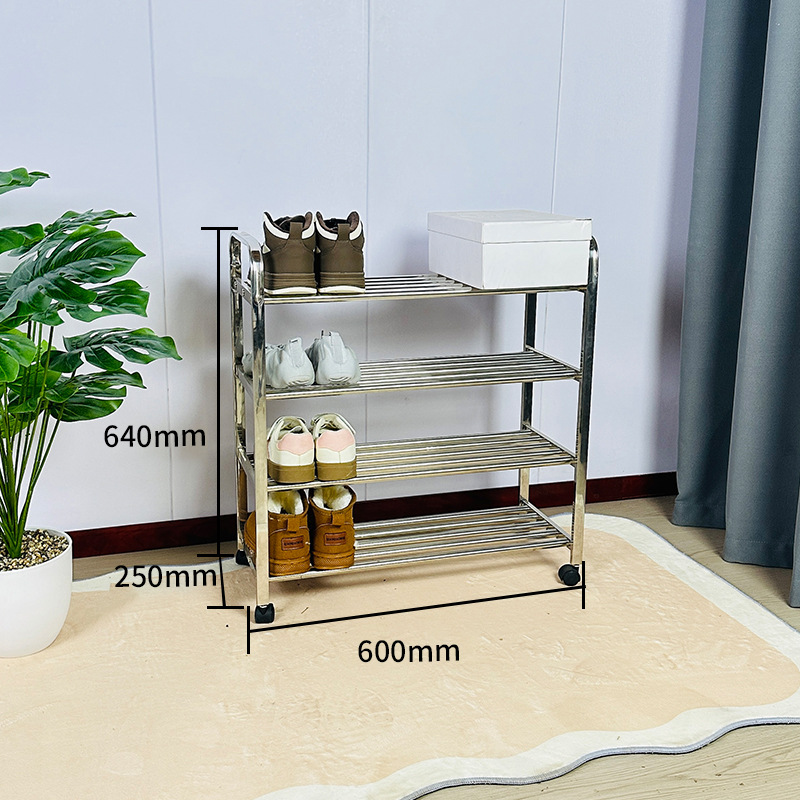 스테인레스 스틸 모바일 신발장 보관 랙 기숙사 범용 휠 신발장 홈 도어 조립 다층 간단한 랙