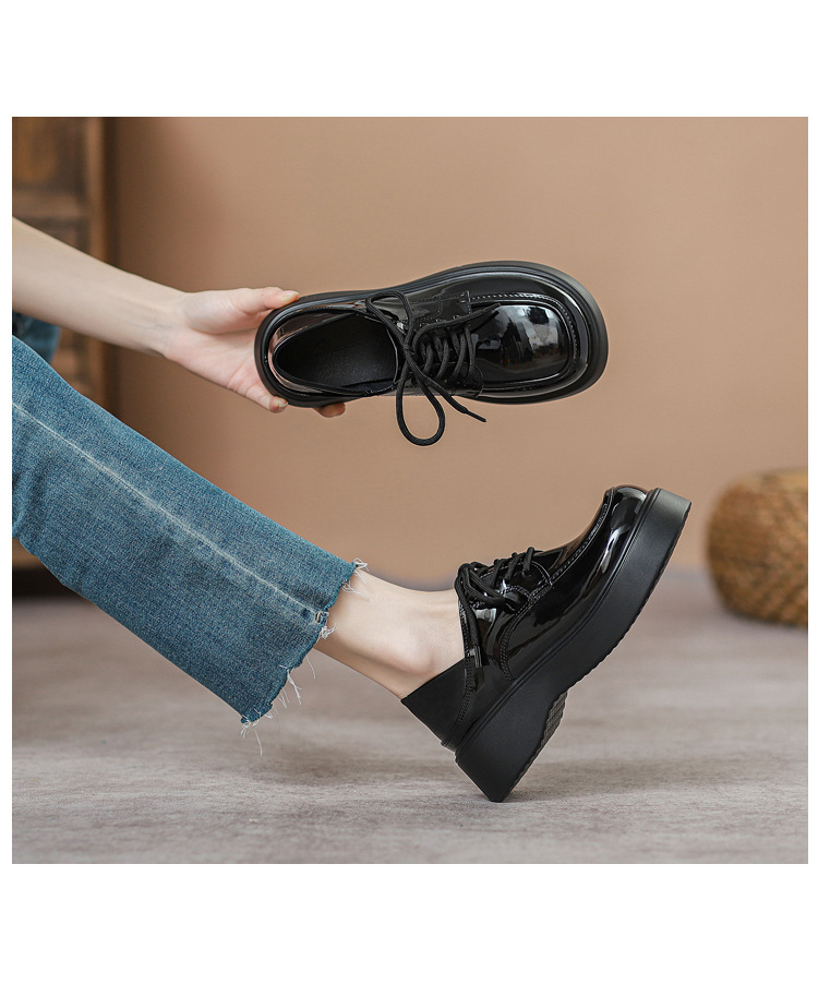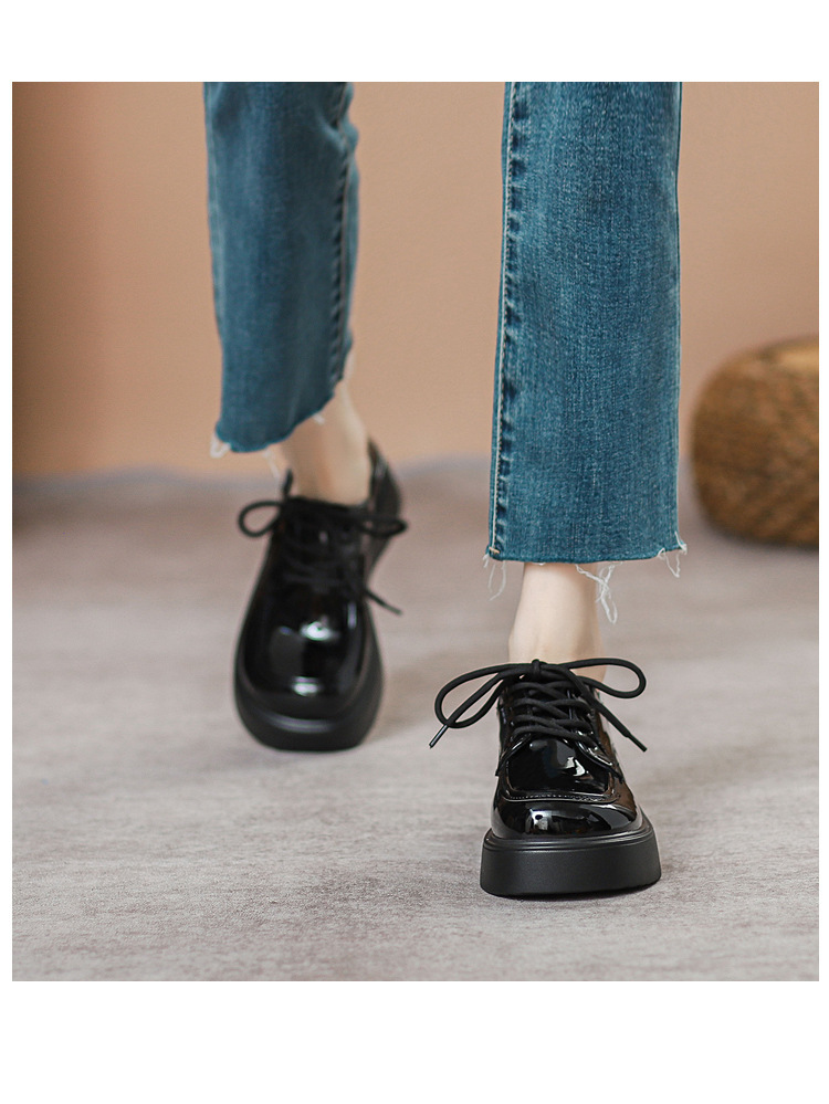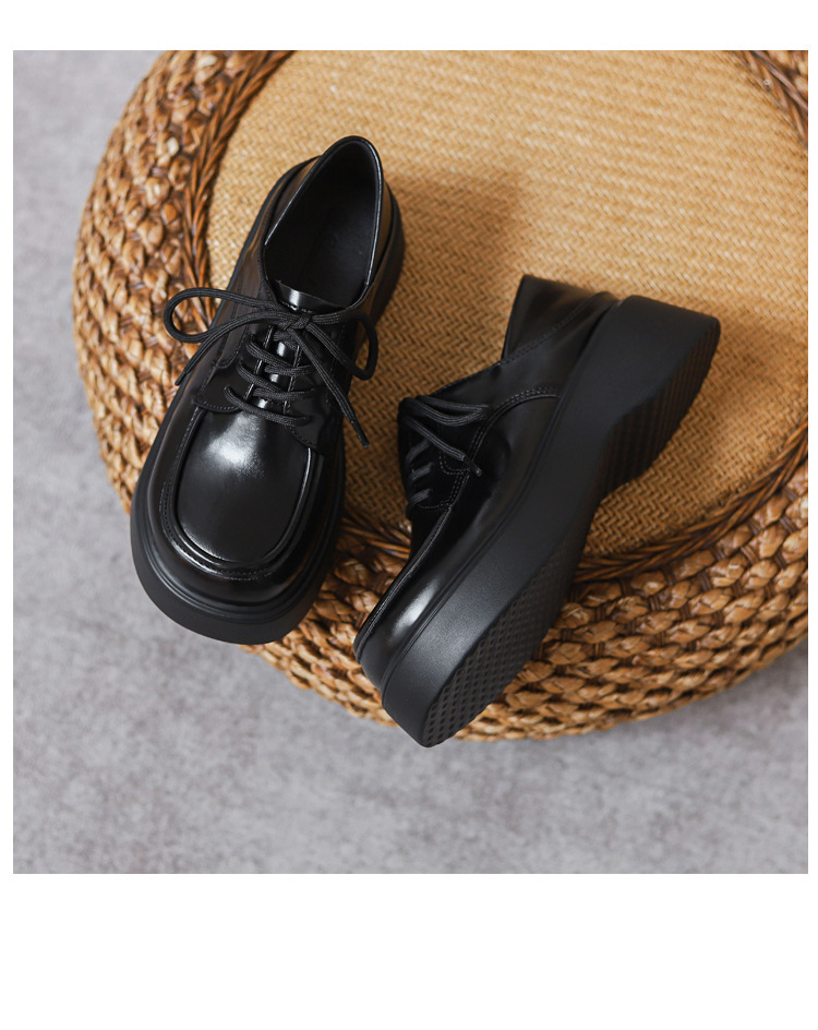 플랫폼 작은 가죽 신발 여성 2025 봄과 가을 올 매치 영국 복고풍 라운드 발가락 메리 제인 싱글 레이어 신발 틈새 디자인 감각스토어 가기
