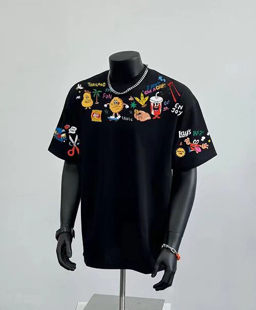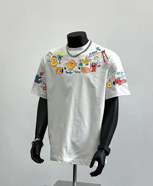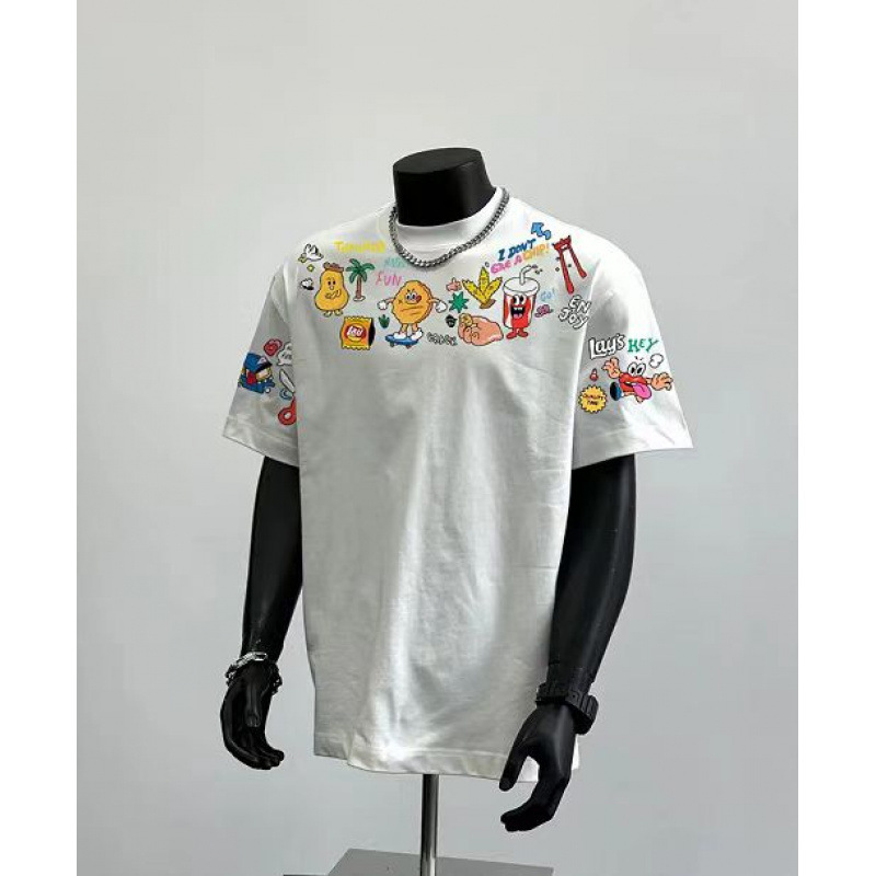 2025 새로운 반팔 티셔츠 남성 인스 타 그램 패션 브랜드 유럽과 미국의 힙합 크루 넥베이스 셔츠 탑 여름