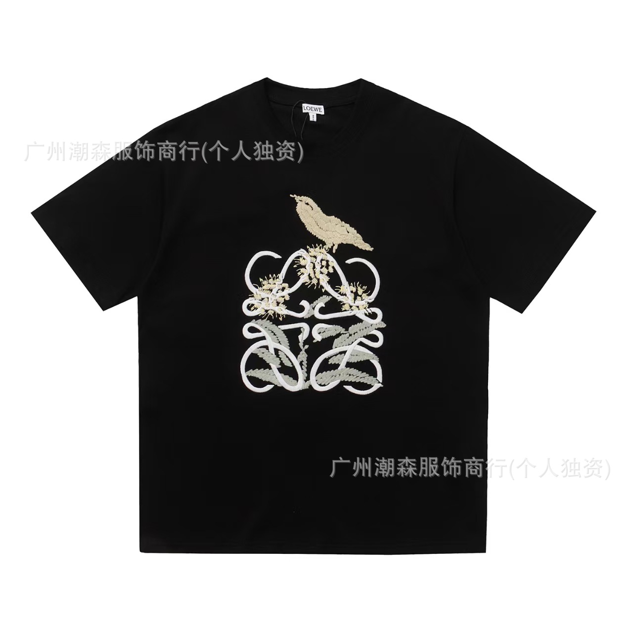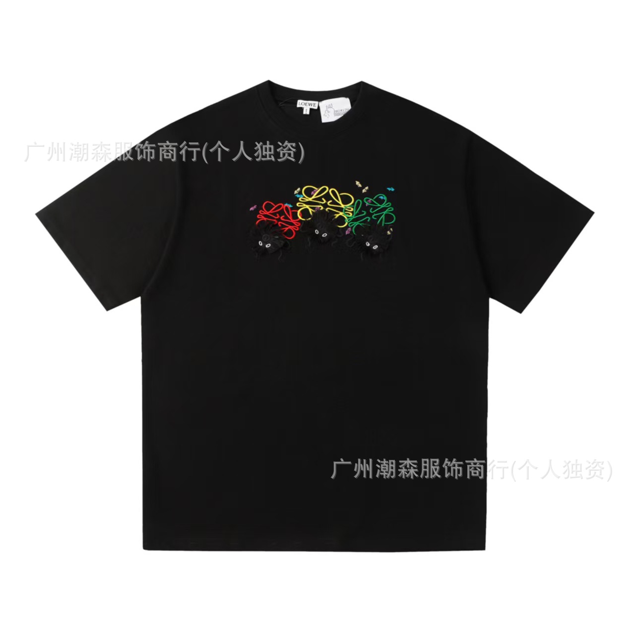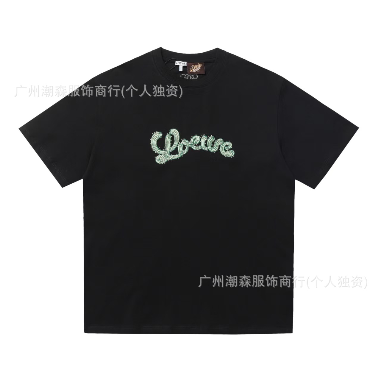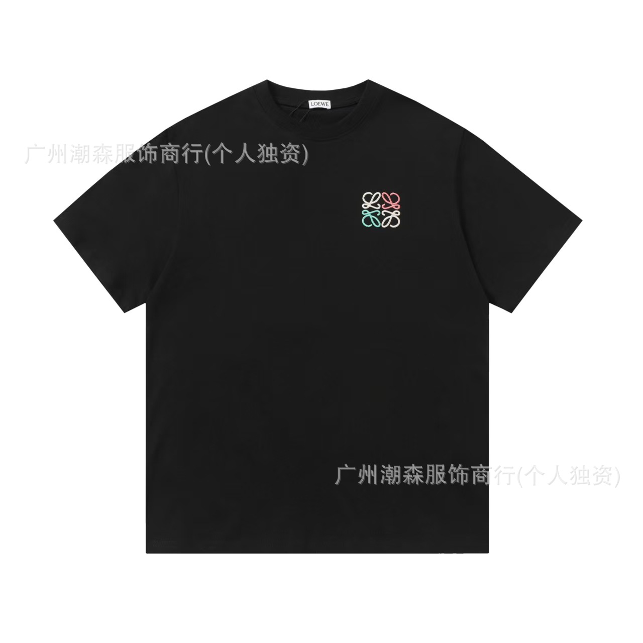 국경 간 25ss Luojia 하이 퀄리티 자수 로고 느슨한 면 반팔 남성 및 여성 캐주얼 패션 다목적 티셔츠스토어 가기