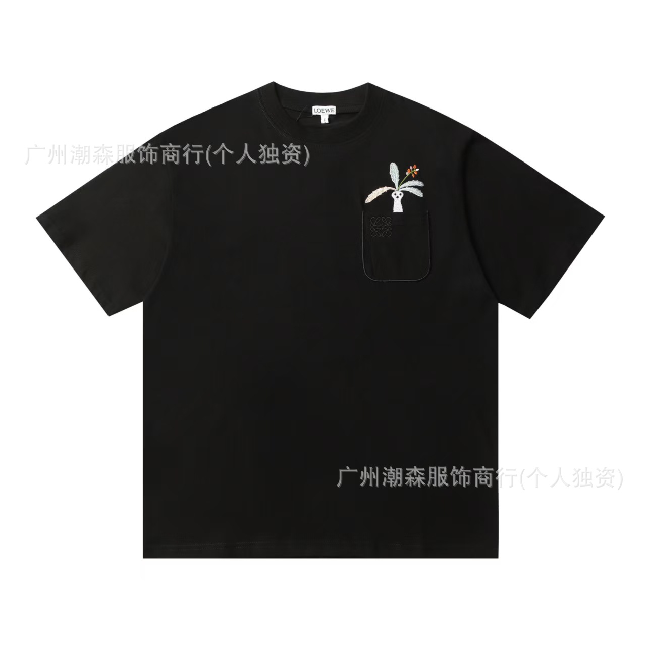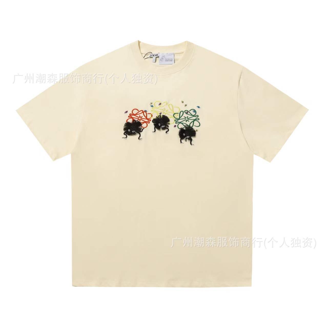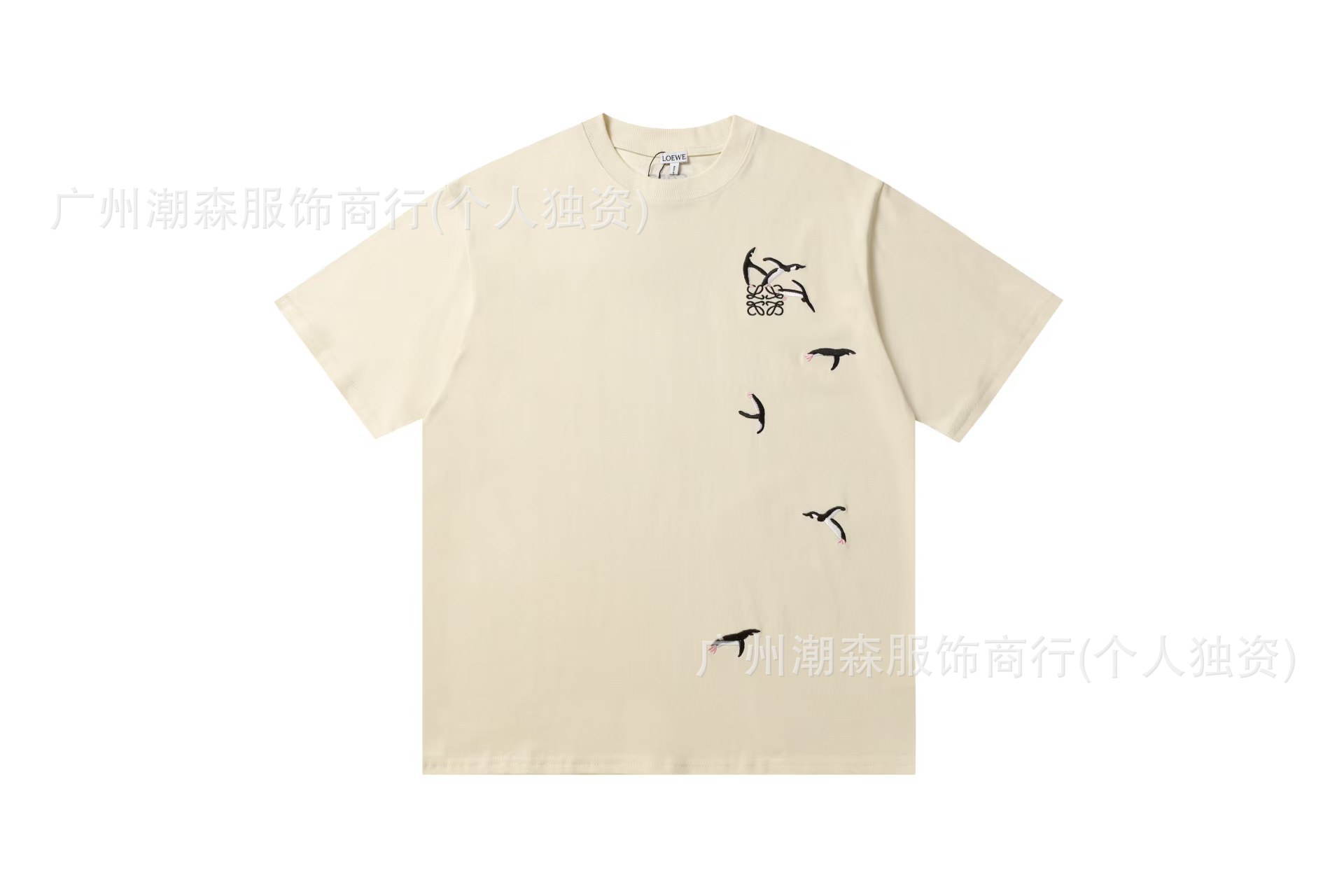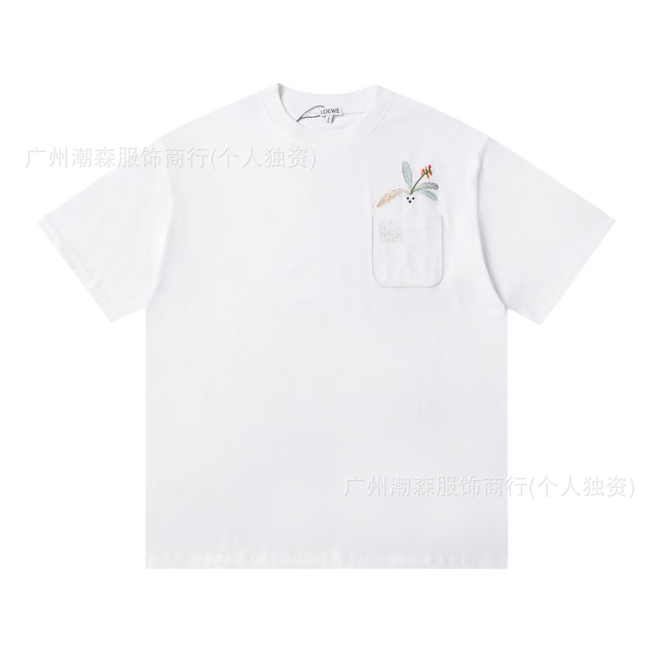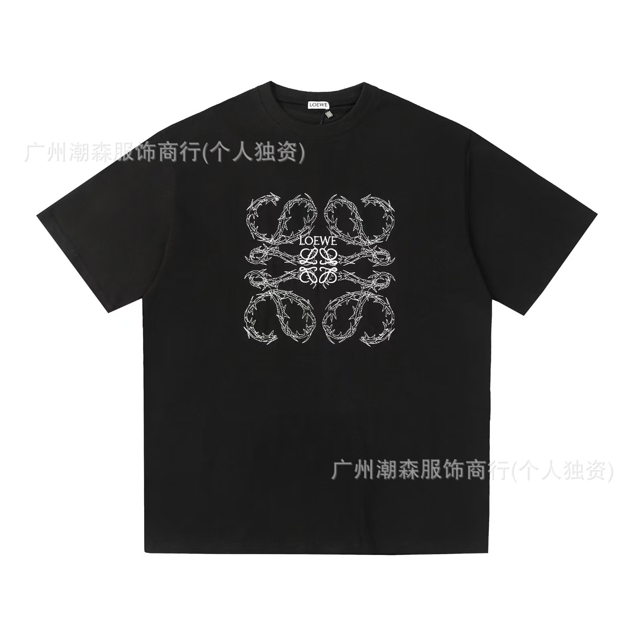 국경 간 25ss Luojia 하이 퀄리티 자수 로고 느슨한 면 반팔 남성 및 여성 캐주얼 패션 다목적 티셔츠스토어 가기