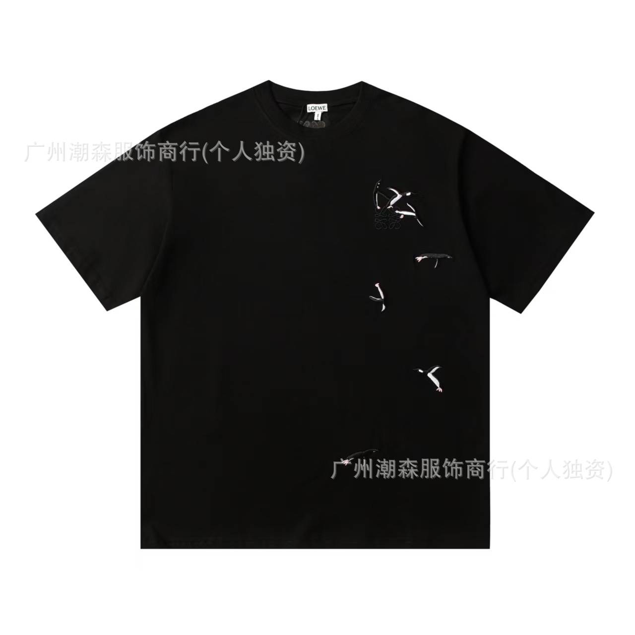 국경 간 25ss Luojia 하이 퀄리티 자수 로고 느슨한 면 반팔 남성 및 여성 캐주얼 패션 다목적 티셔츠
