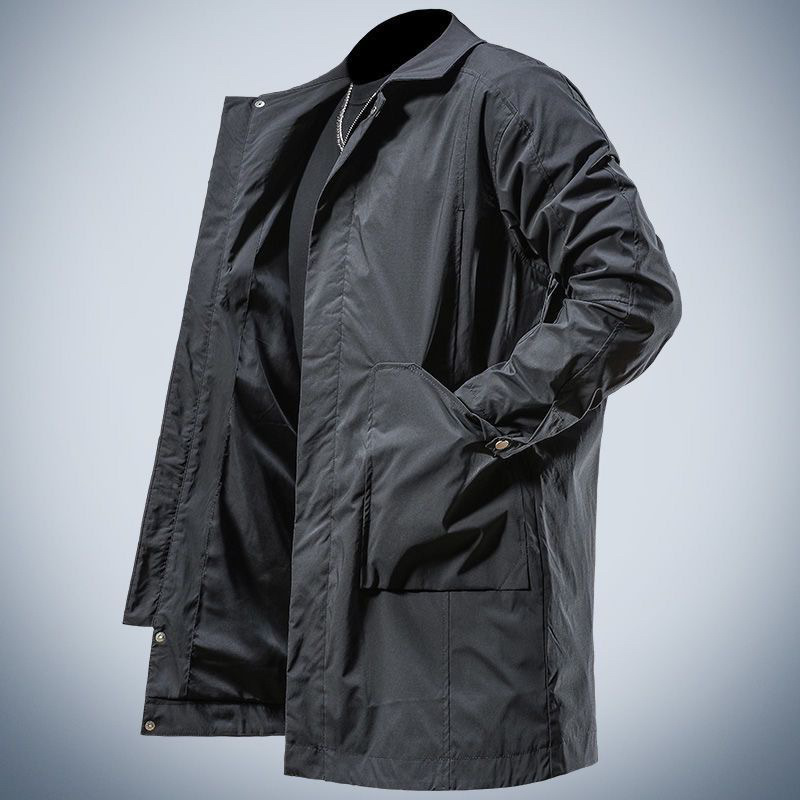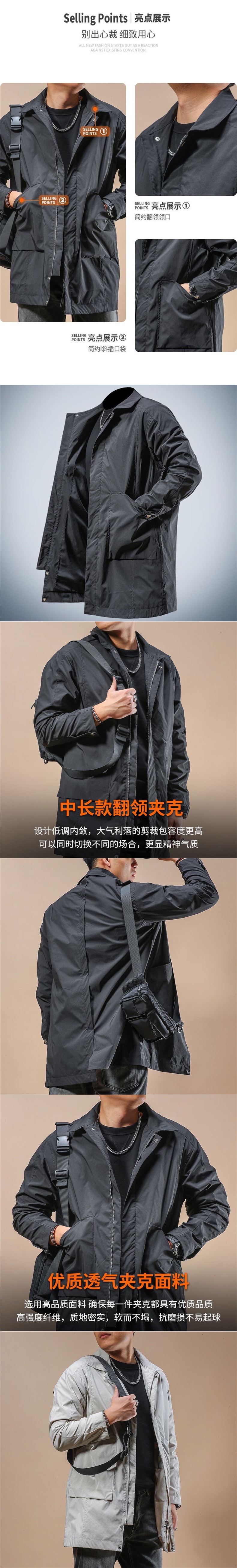 봄과 가을 새로운 간단한 사업 중간 길이 재킷 남자의 유행 바느질 포켓 옷깃 코트스토어 가기