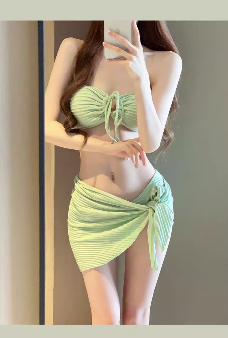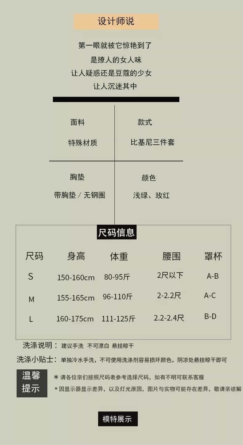 비키니 수영복 여성 3 피스 해변 휴일 삼각형 섹시 하이 레벨 화이트 로즈 레드 온천 수영복 여성