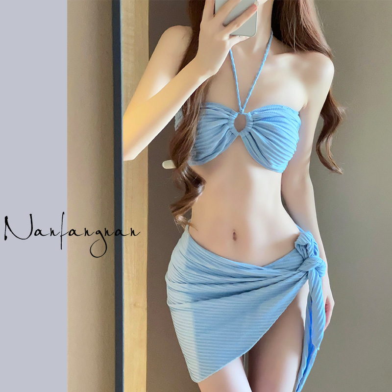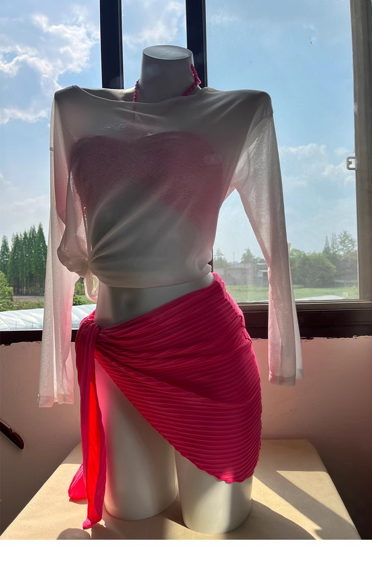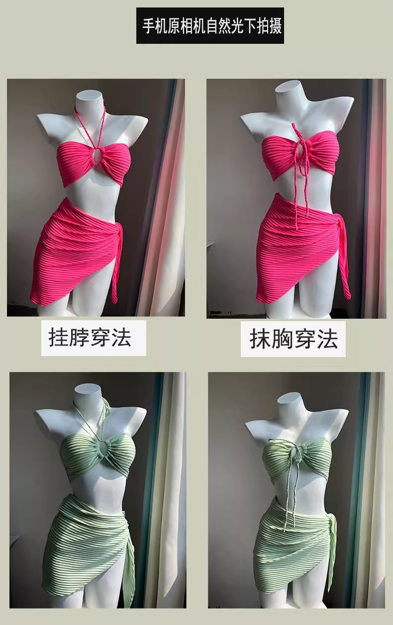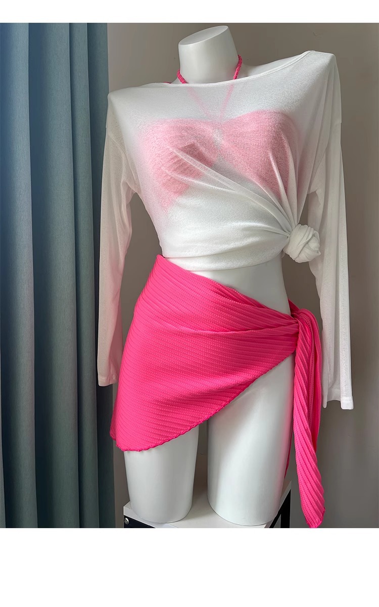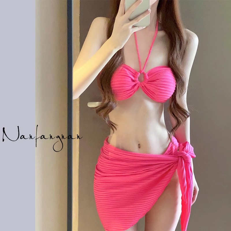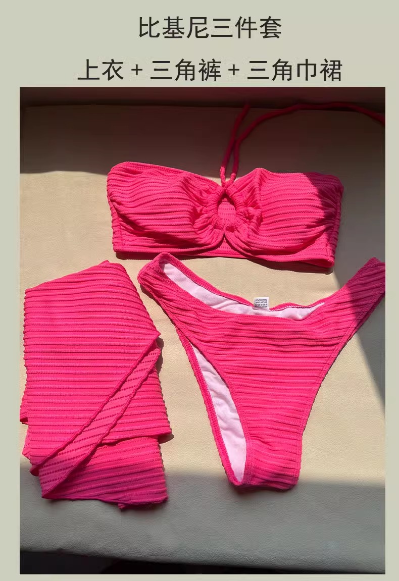 비키니 수영복 여성 3 피스 해변 휴일 삼각형 섹시 하이 레벨 화이트 로즈 레드 온천 수영복 여성스토어 가기