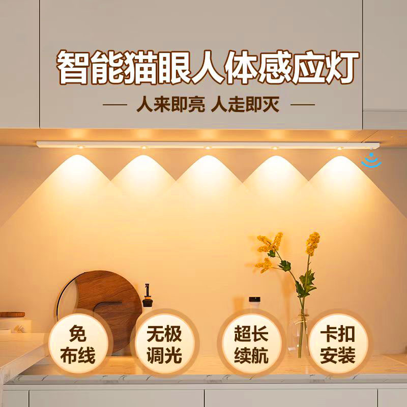 공장도매가 LED 충전식 고양이눈 센서등, 자석 부착 가능, 휴대 가능, 캐비닛/와인장 분위기 조명, 라이트 스트립 포함스토어 가기