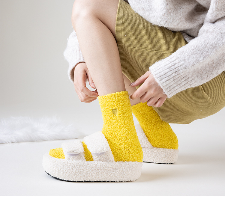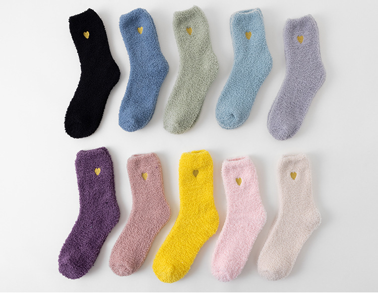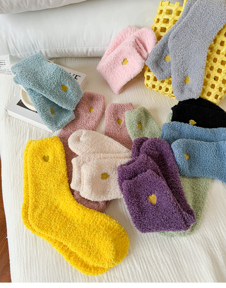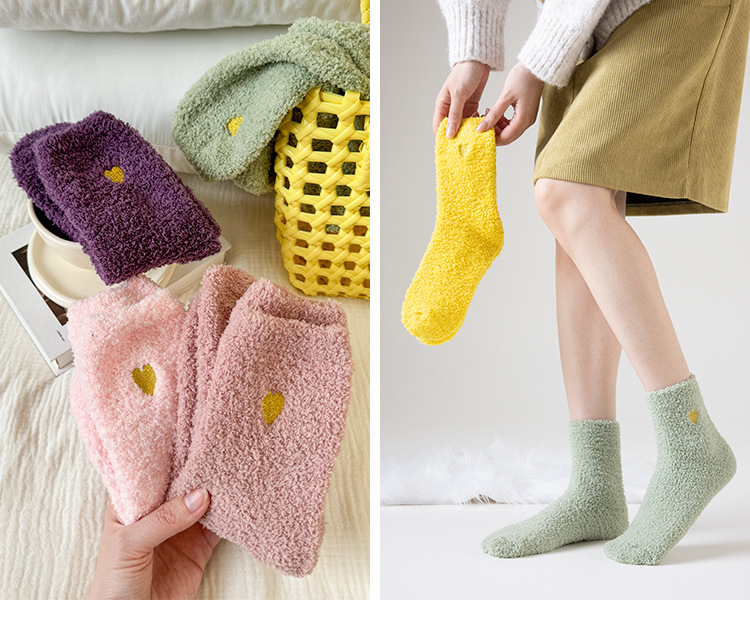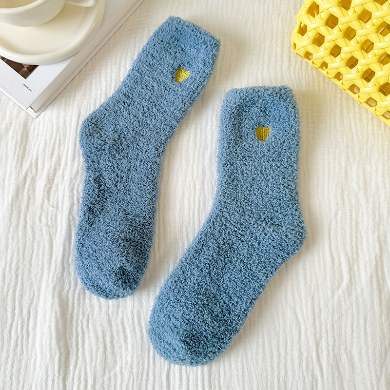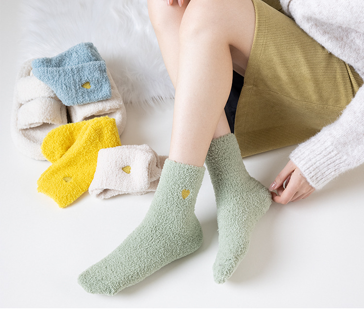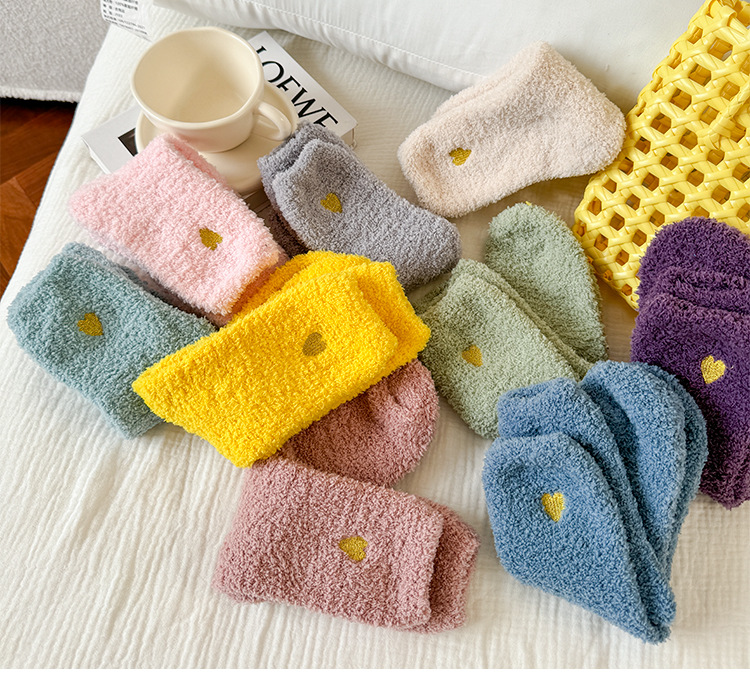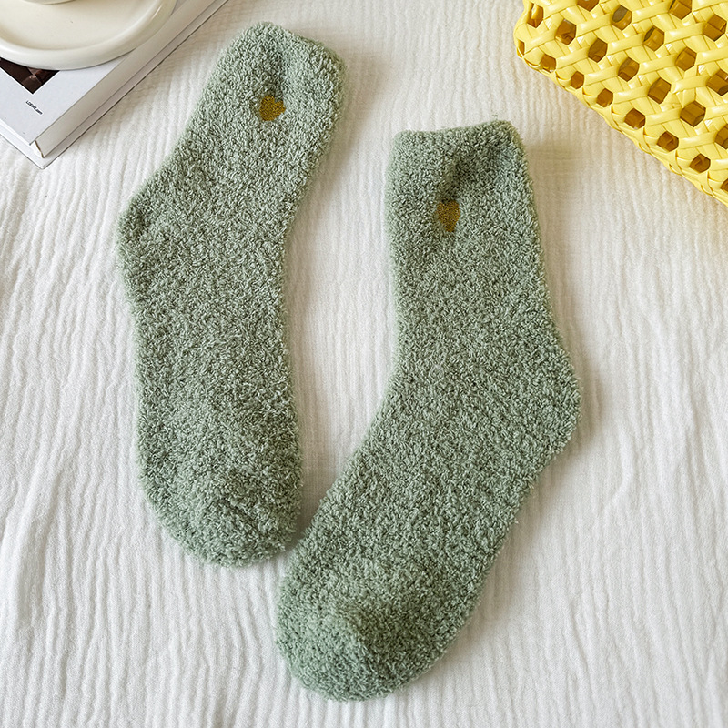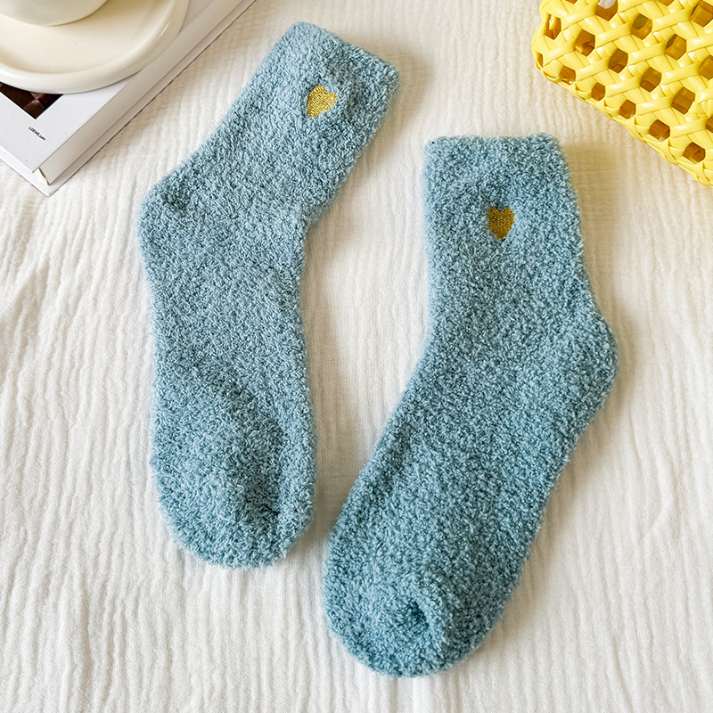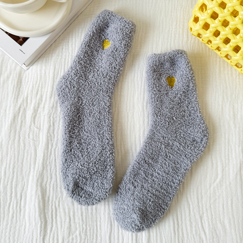 국경 간 겨울 산호 양털 일본 자수 사랑 두꺼운 따뜻한 바닥 양말 여성용 미드 튜브 양말스토어 가기