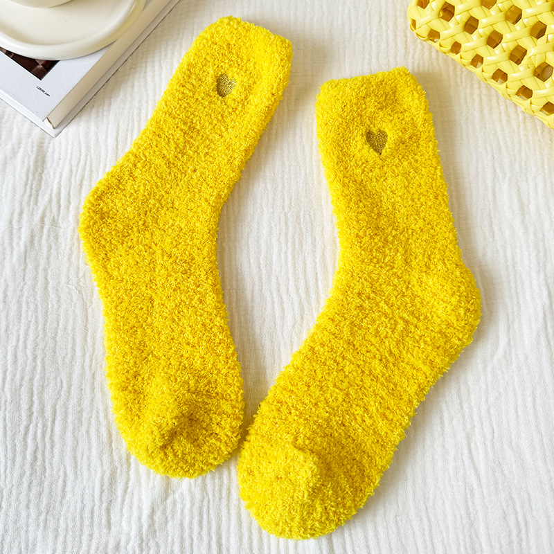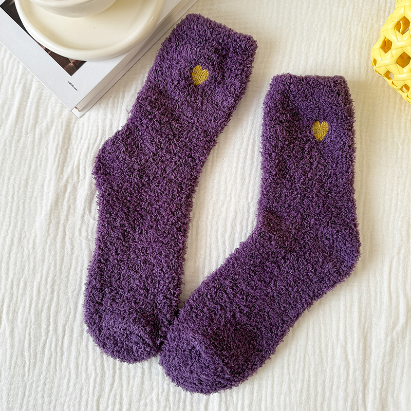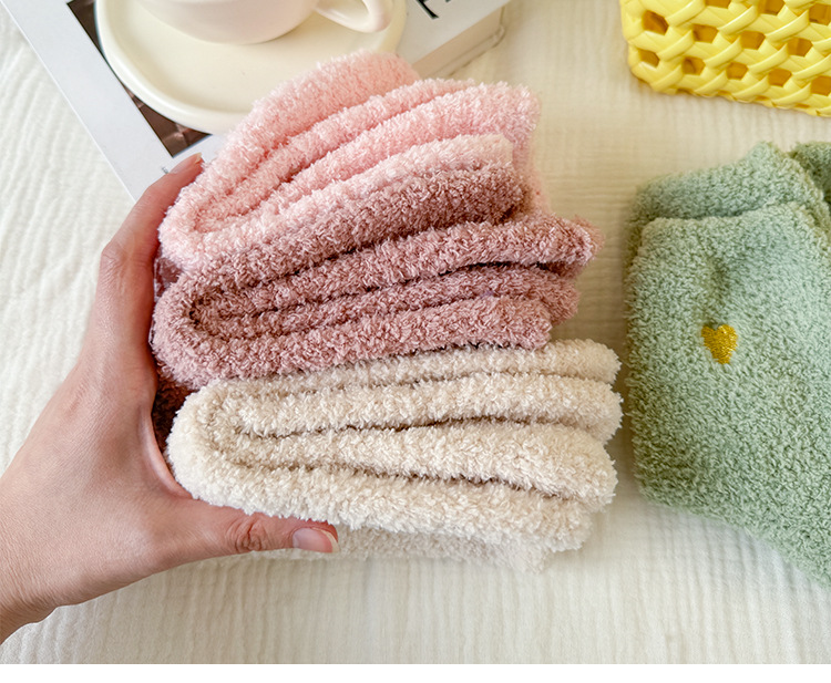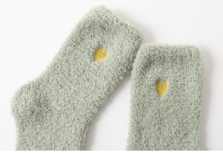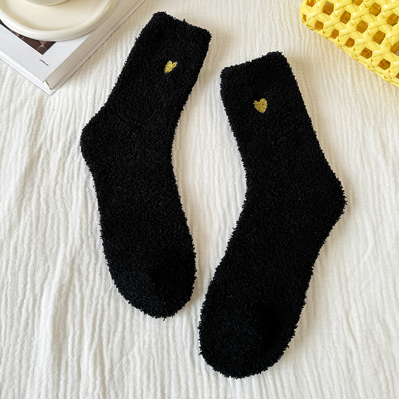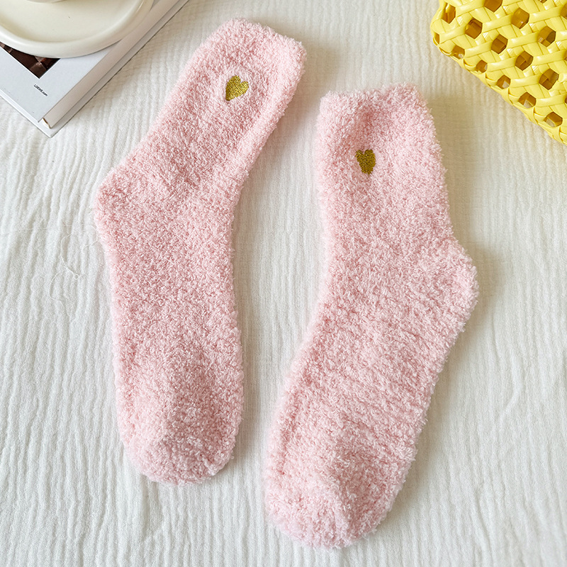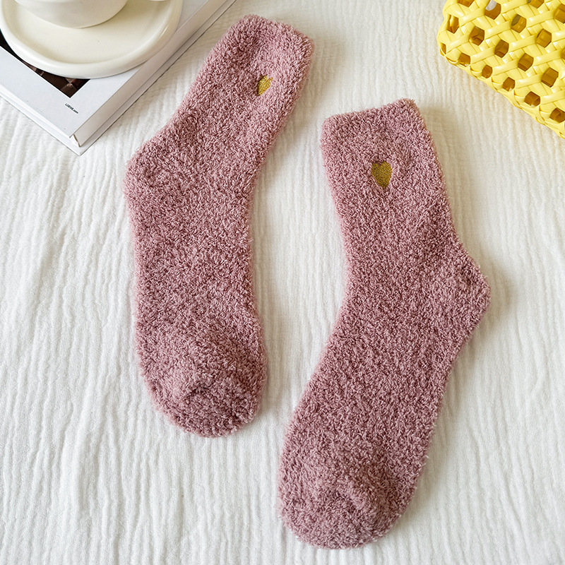 국경 간 겨울 산호 양털 일본 자수 사랑 두꺼운 따뜻한 바닥 양말 여성용 미드 튜브 양말