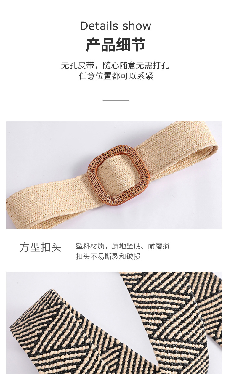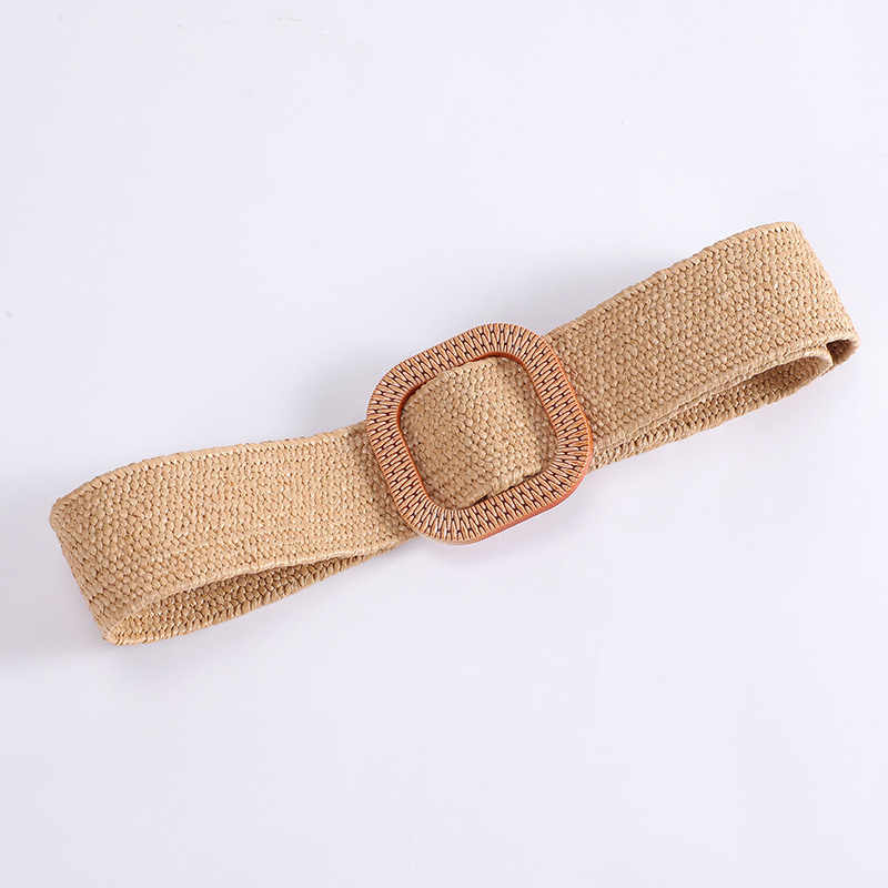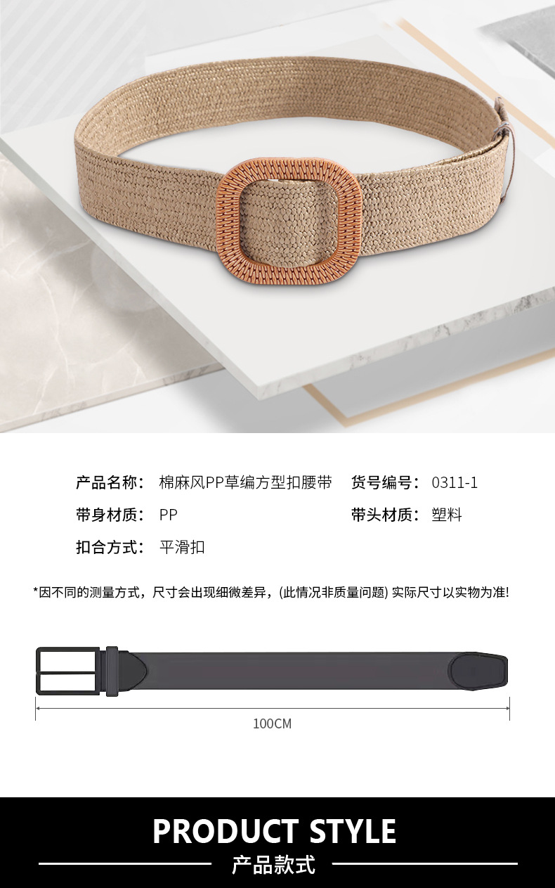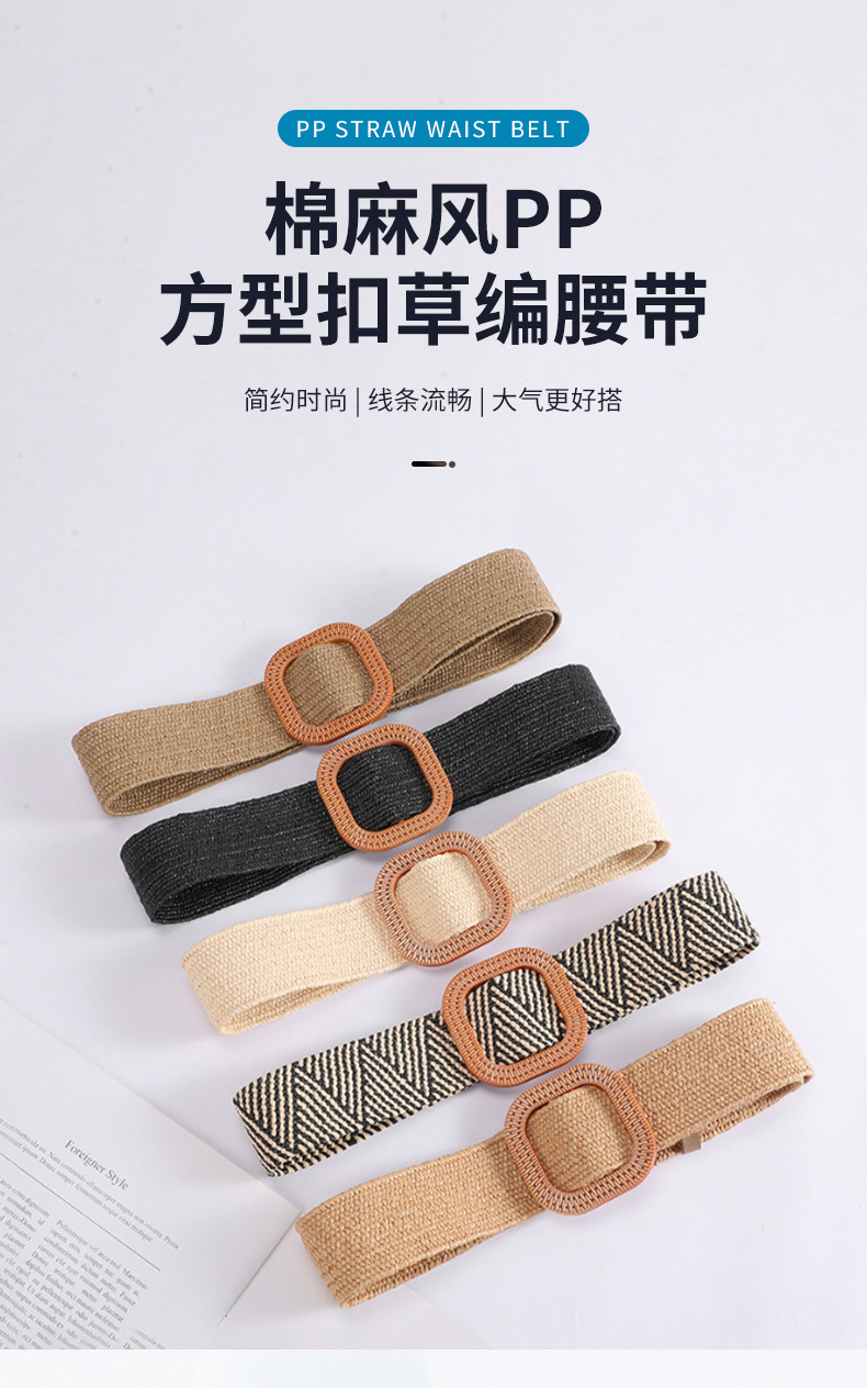 새로운 코튼 및 리넨 스타일 pp 밀짚 벨트 여성 올 매치 패션 스퀘어 버클 코트 장식 벨트 도매 대외 무역스토어 가기