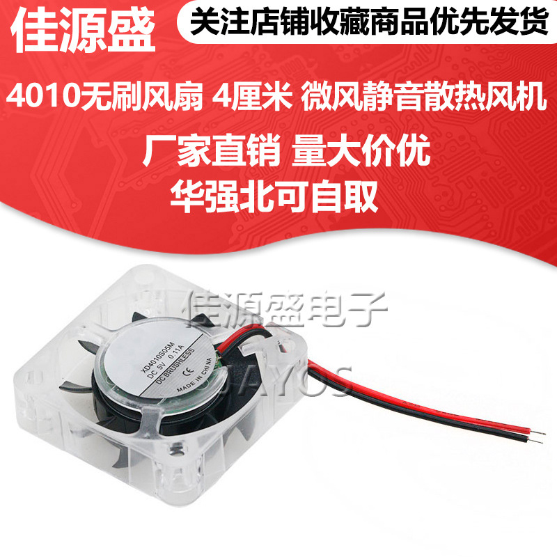 4010 조용한 브러시리스 팬 4CM 5V DC3.7V-7.4V 파란색 LED 빛 역방향 연결 보호스토어 가기