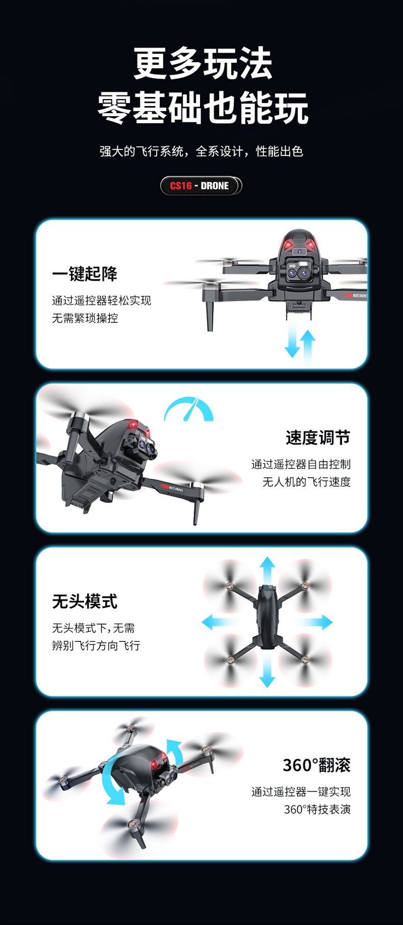产品描述:四面避障 光流定位 无刷动力?电调双镜头