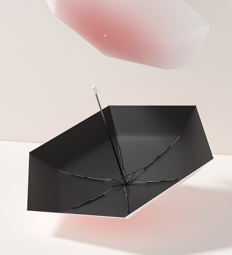 드림 그라디언트 캡슐 우산 60% 접힌 6 뼈 당기기 미니 우산 선 스크린 블랙 고무 단열 콤팩트 및 경량 태양 우산