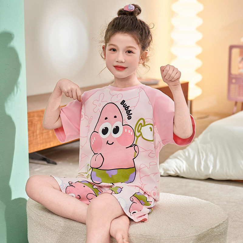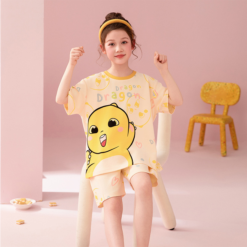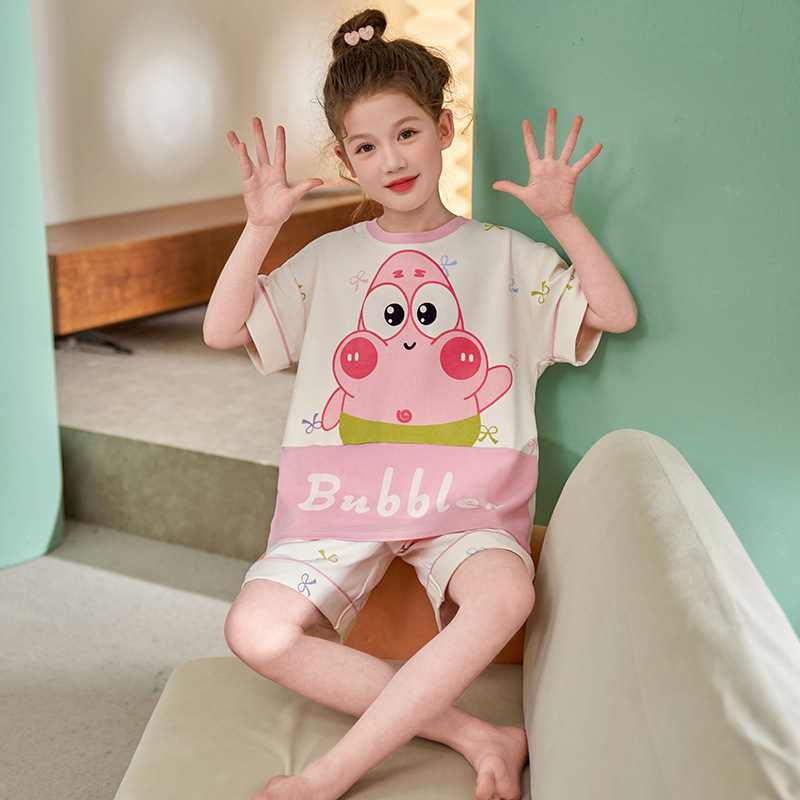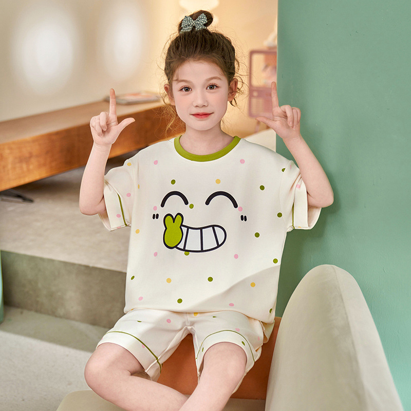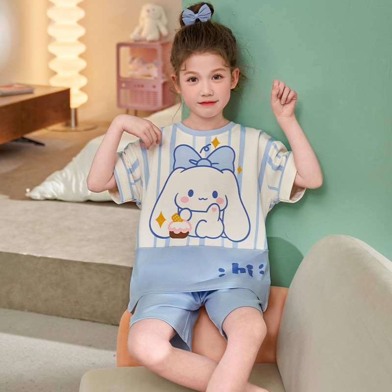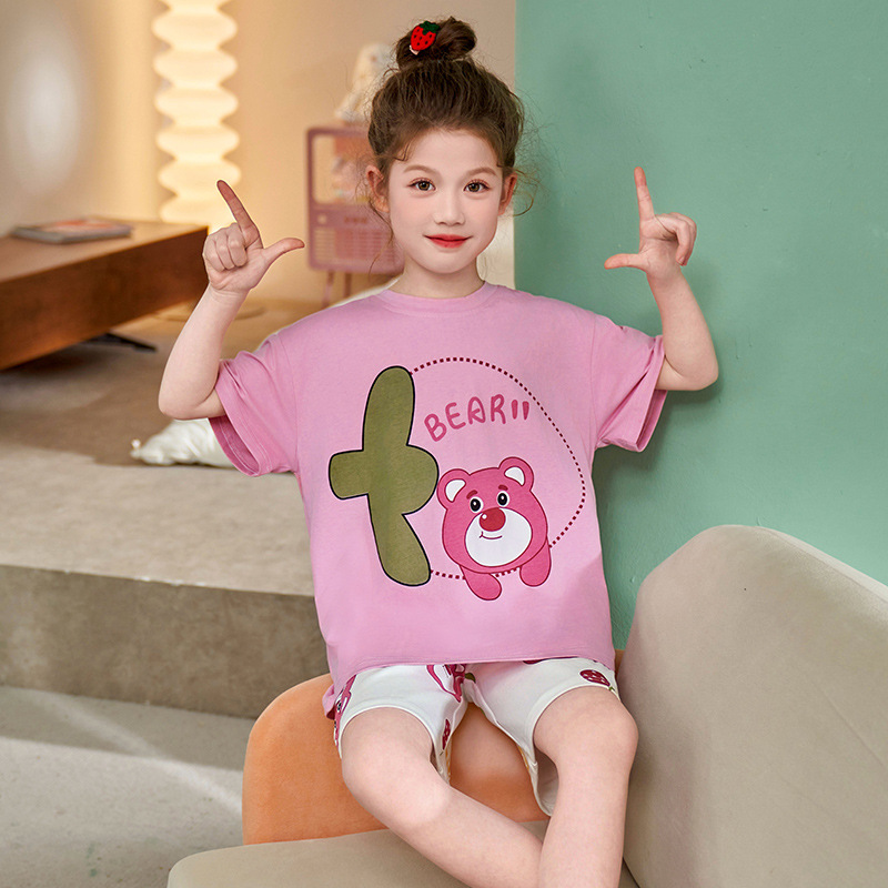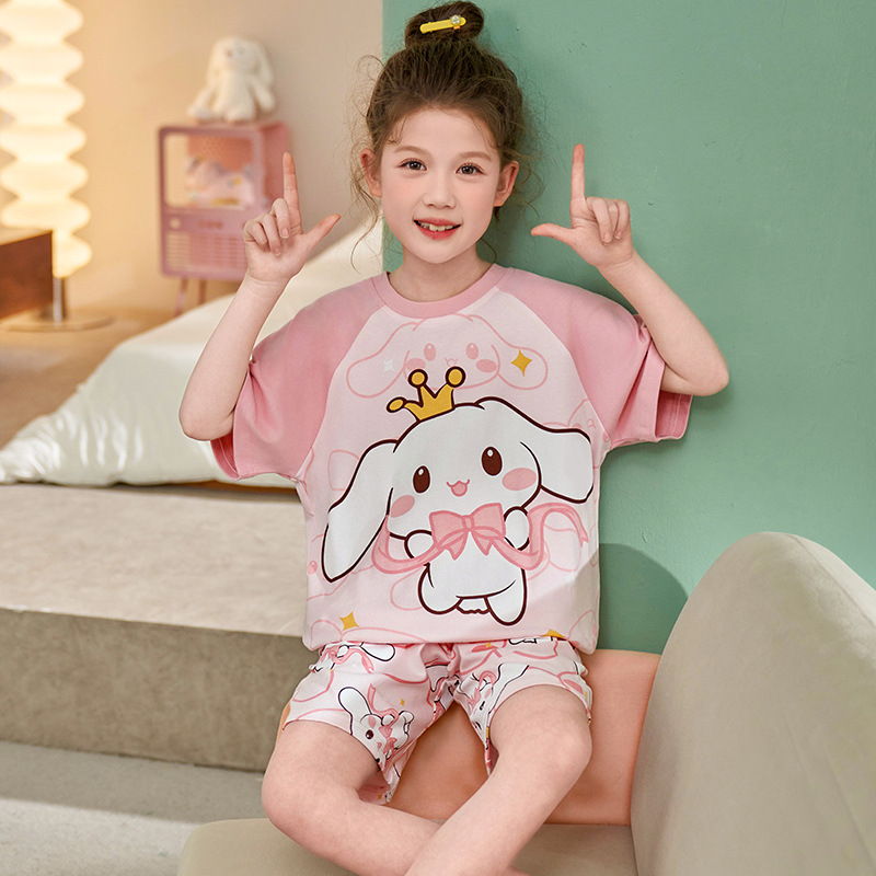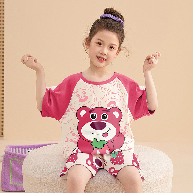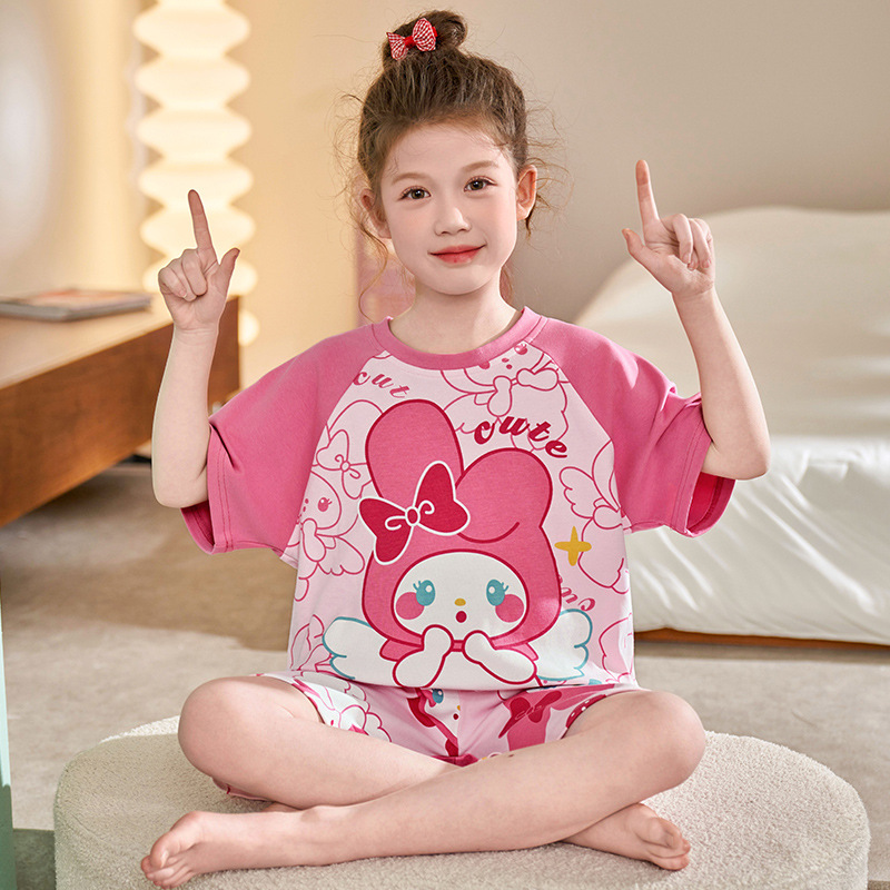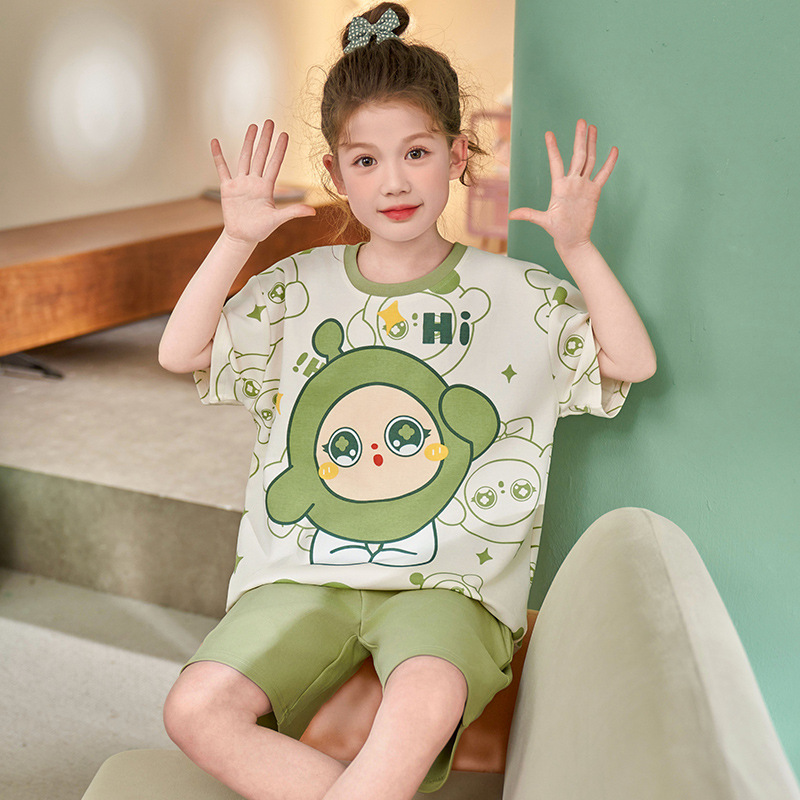 어린이 아기의 집 옷 여아 순면 반팔 잠옷 여름 얇은 소녀의 만화 소녀의 세트
