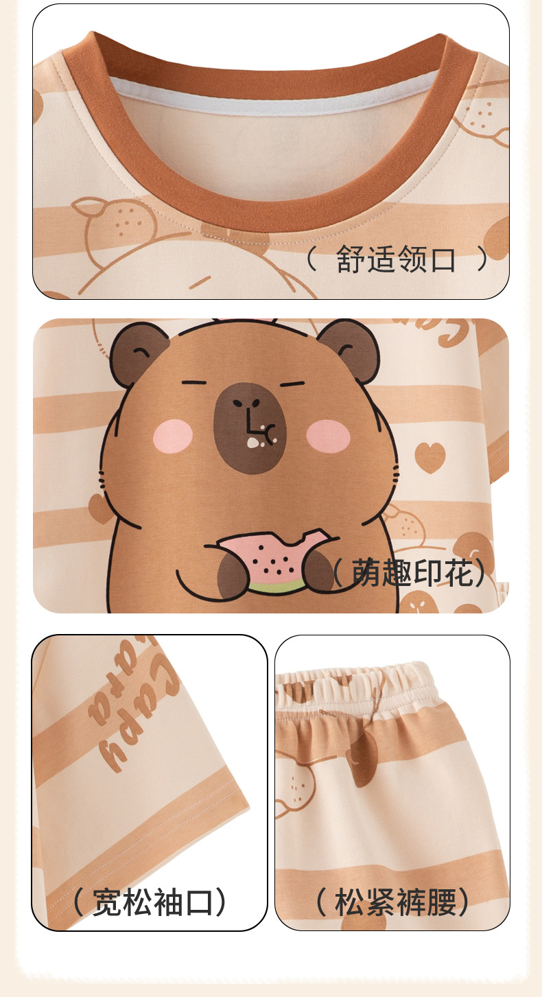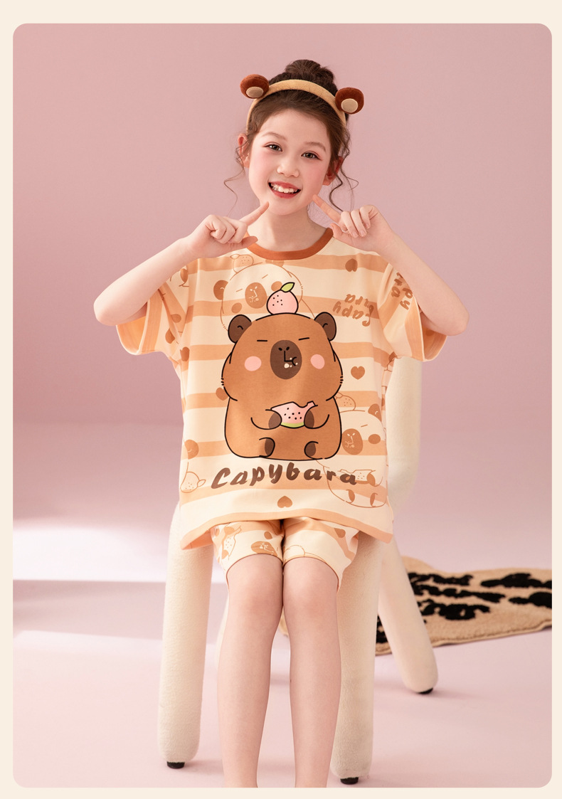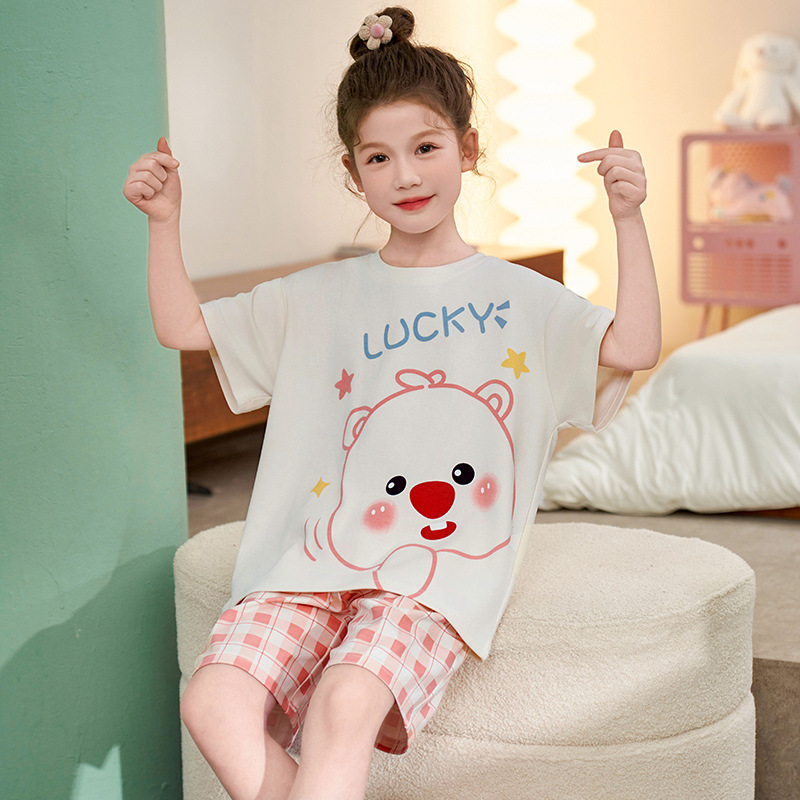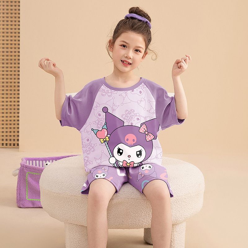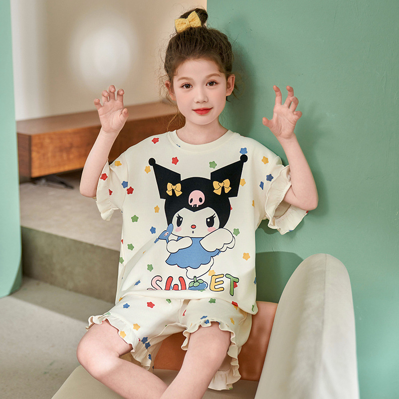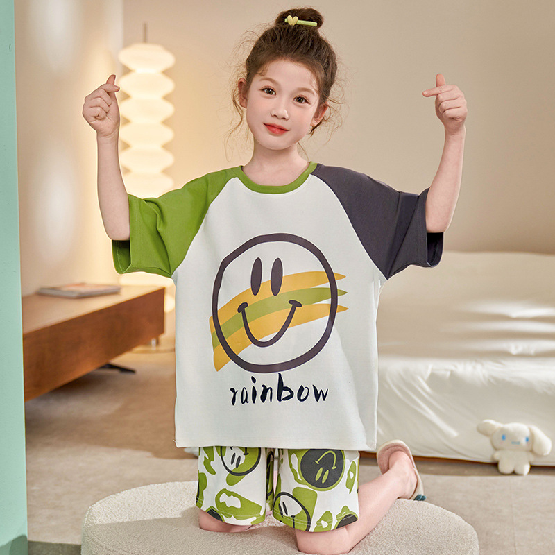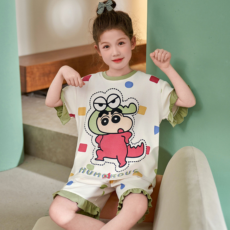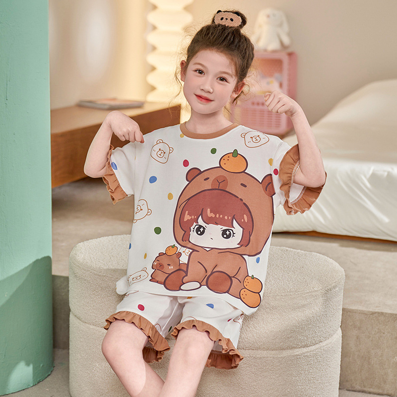 어린이 아기의 집 옷 여아 순면 반팔 잠옷 여름 얇은 소녀의 만화 소녀의 세트