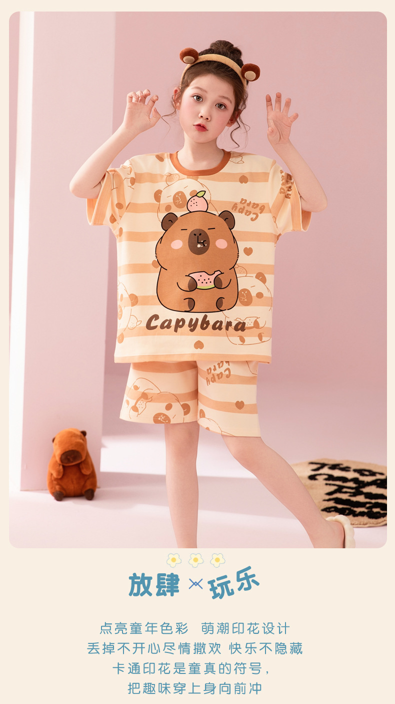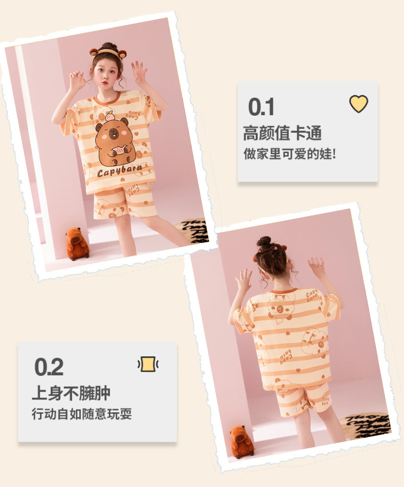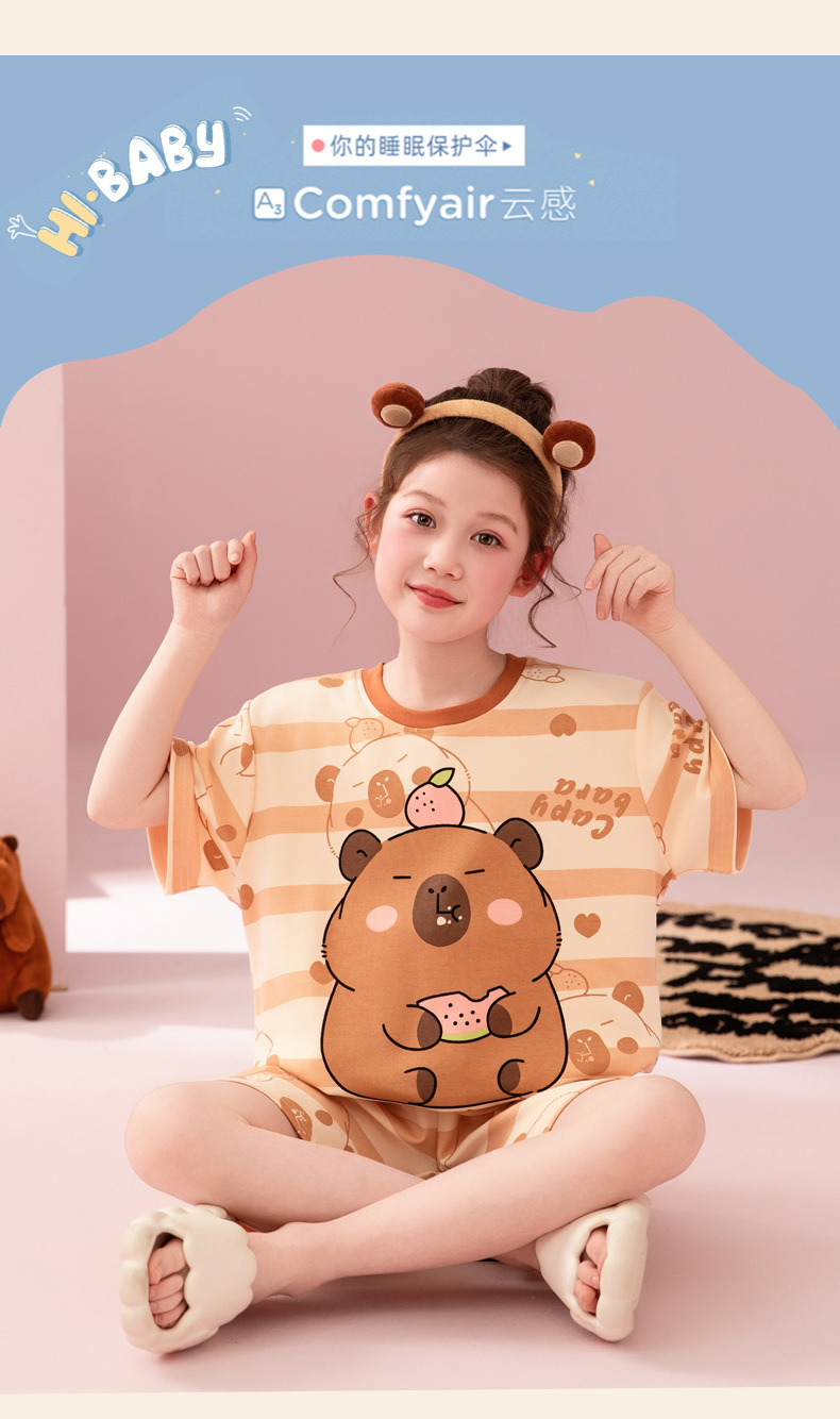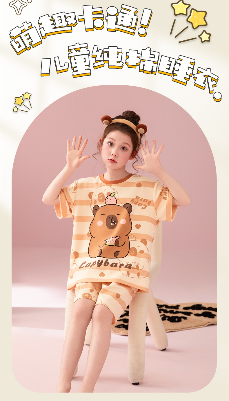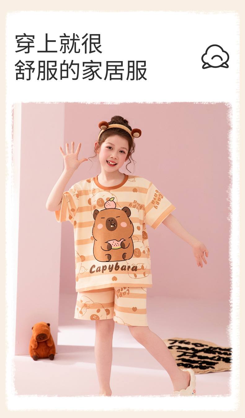 어린이 아기의 집 옷 여아 순면 반팔 잠옷 여름 얇은 소녀의 만화 소녀의 세트스토어 가기