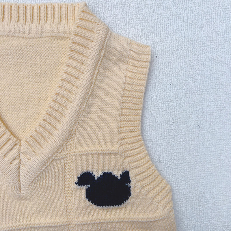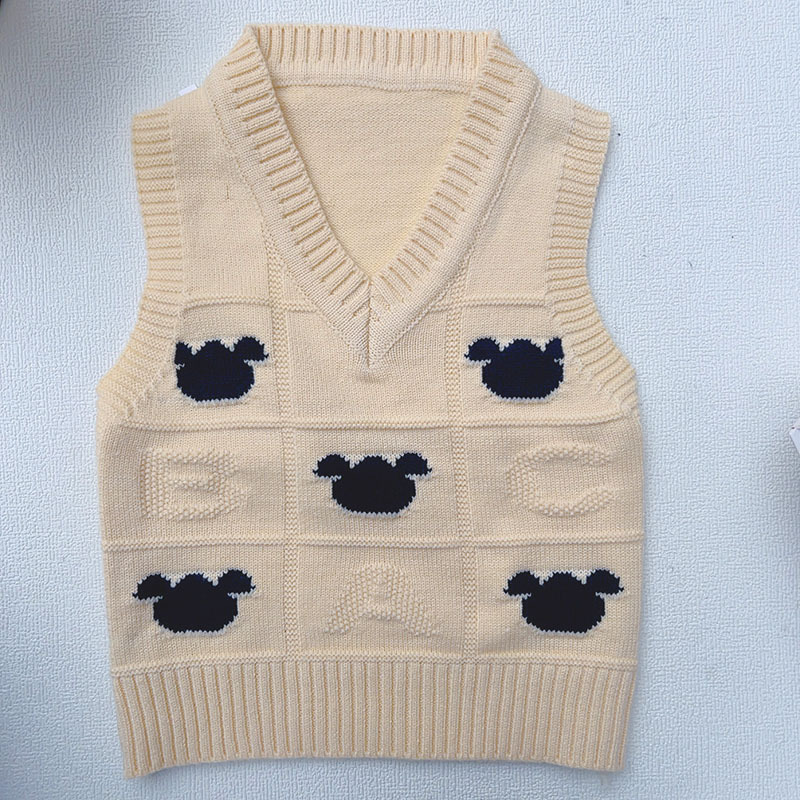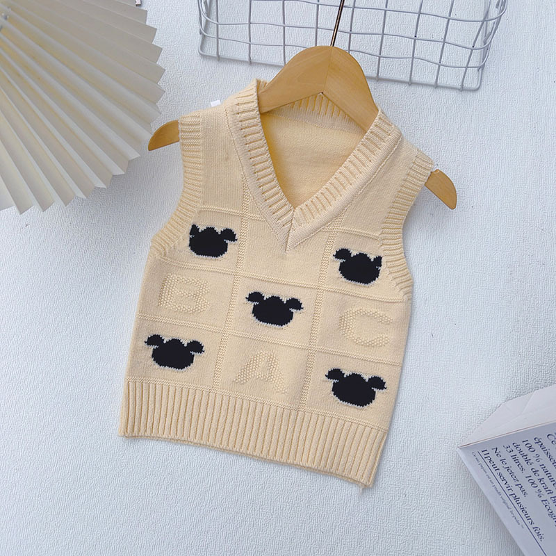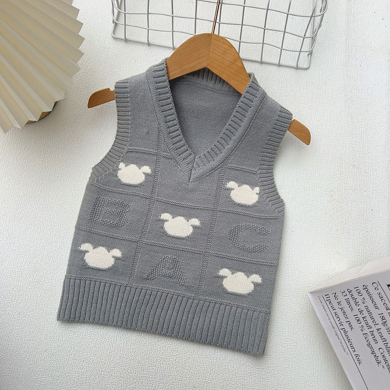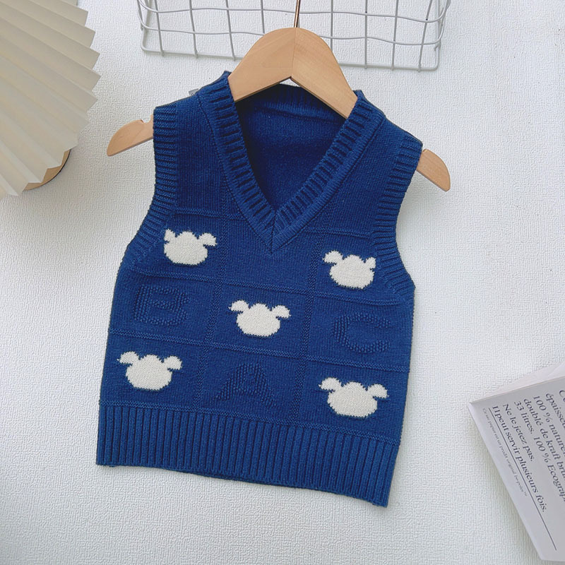 소년 V 넥 조끼 스웨터 봄과 가을 2025 새로운 만화 양고기 조끼 어린이 조끼스토어 가기