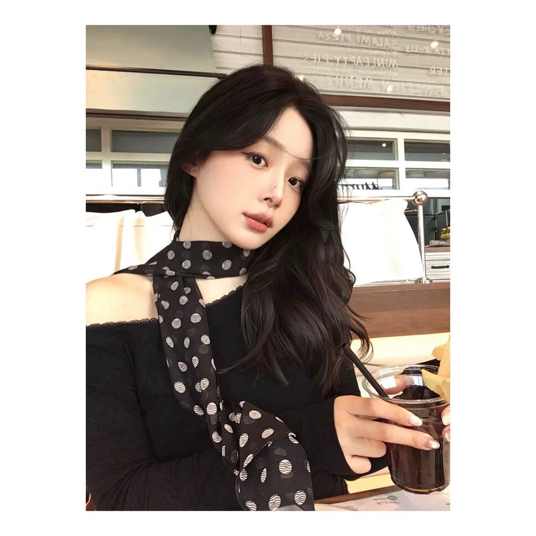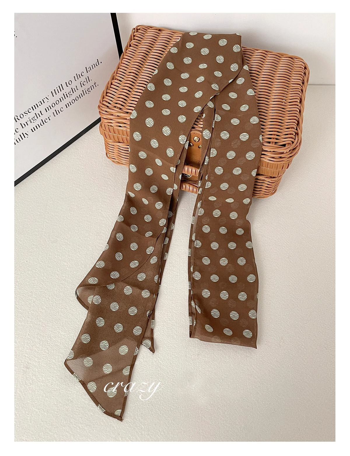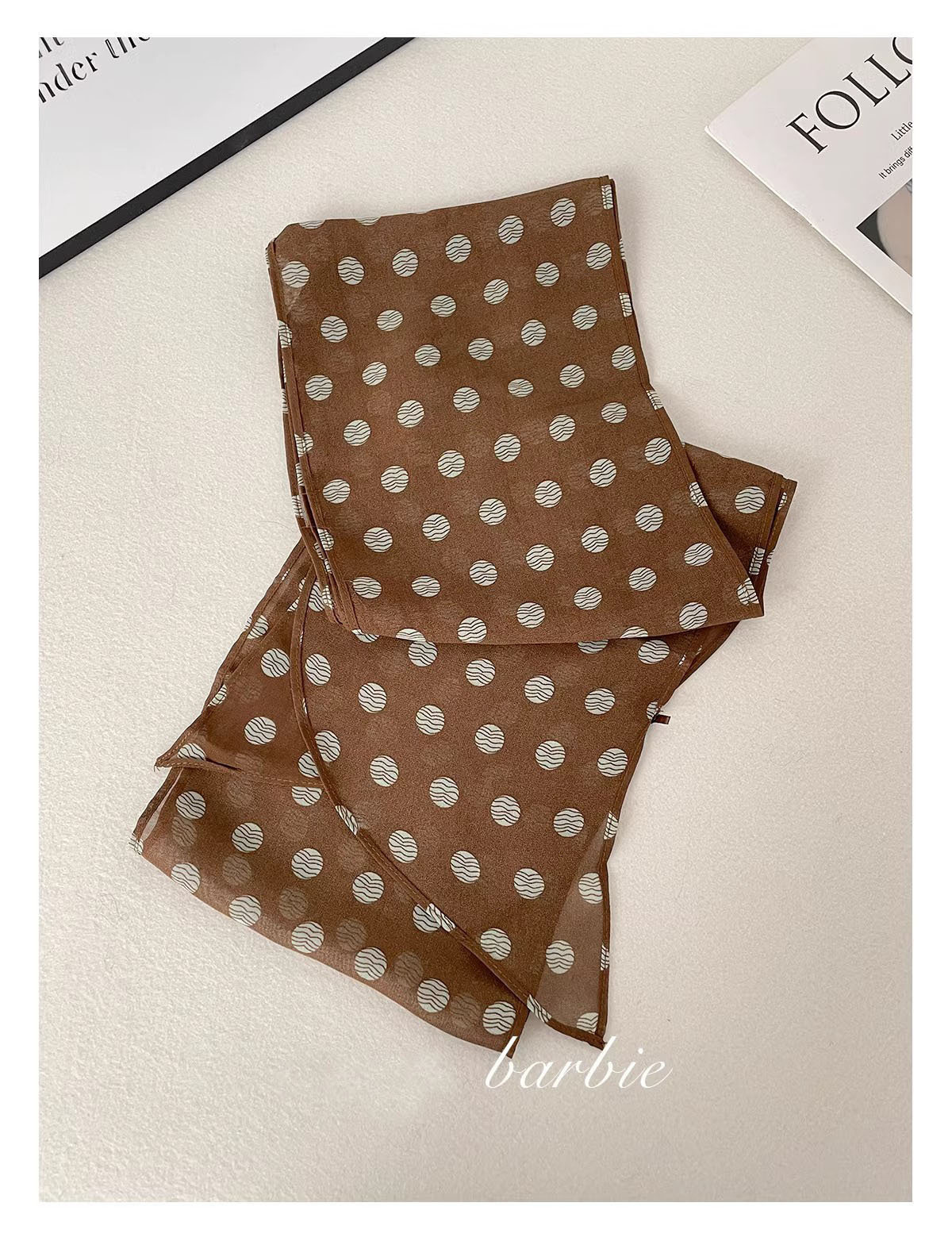 다크 브라운 설문 조사 도트 스카프 여성의 인쇄 된 고급 올 매치 액세서리 목 2025 새로운 장식 작은 스카프 목 보호 도매