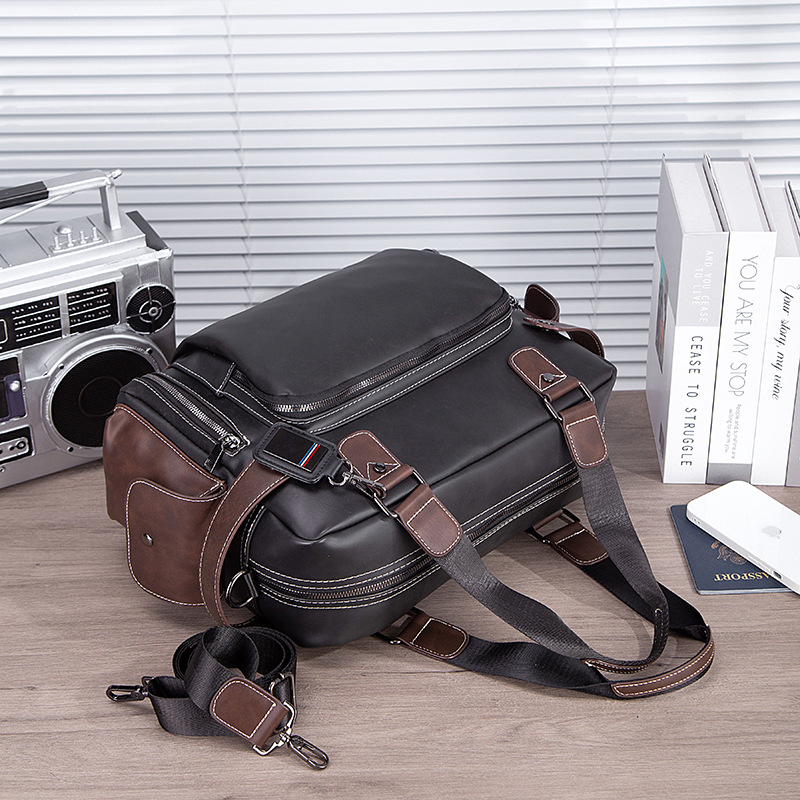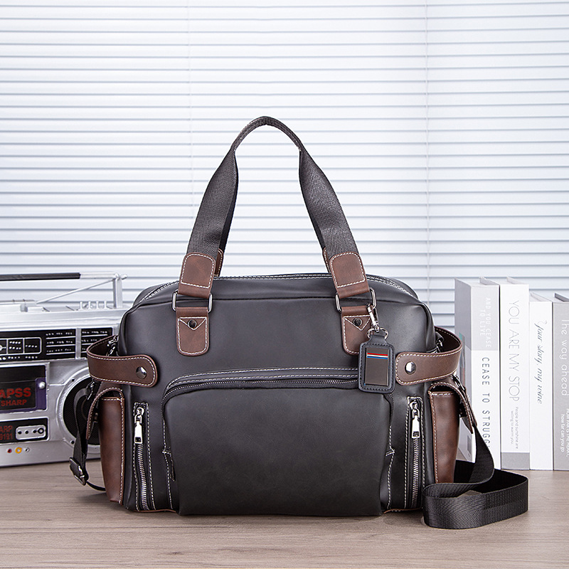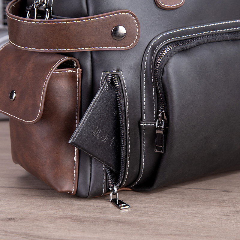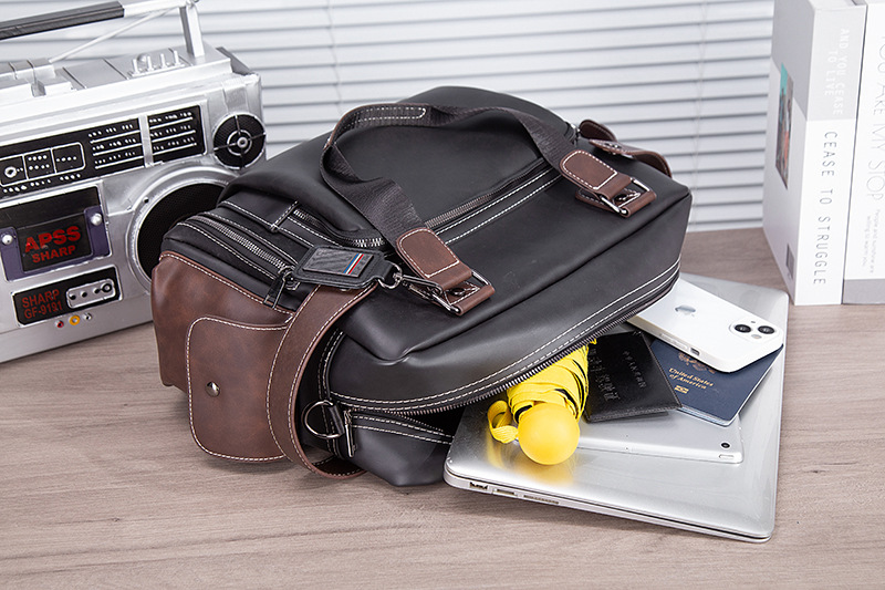 새로운 유행 가방 미친 말 가죽 한국 스타일 남성 가방 캐주얼 어깨 크로스 바디 백 핸드백 대용량 남성 여행 가방