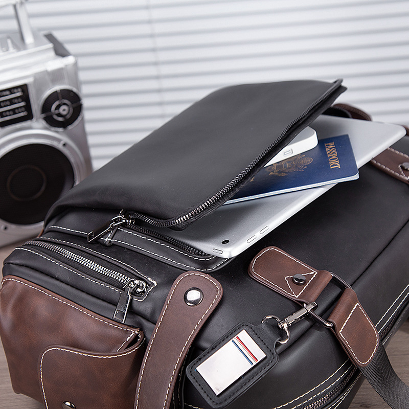 새로운 유행 가방 미친 말 가죽 한국 스타일 남성 가방 캐주얼 어깨 크로스 바디 백 핸드백 대용량 남성 여행 가방스토어 가기