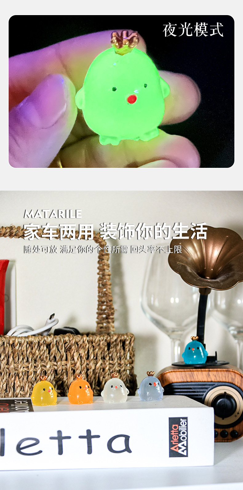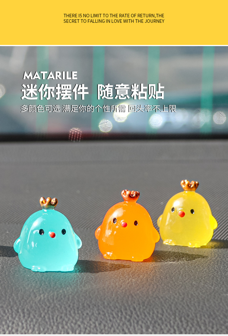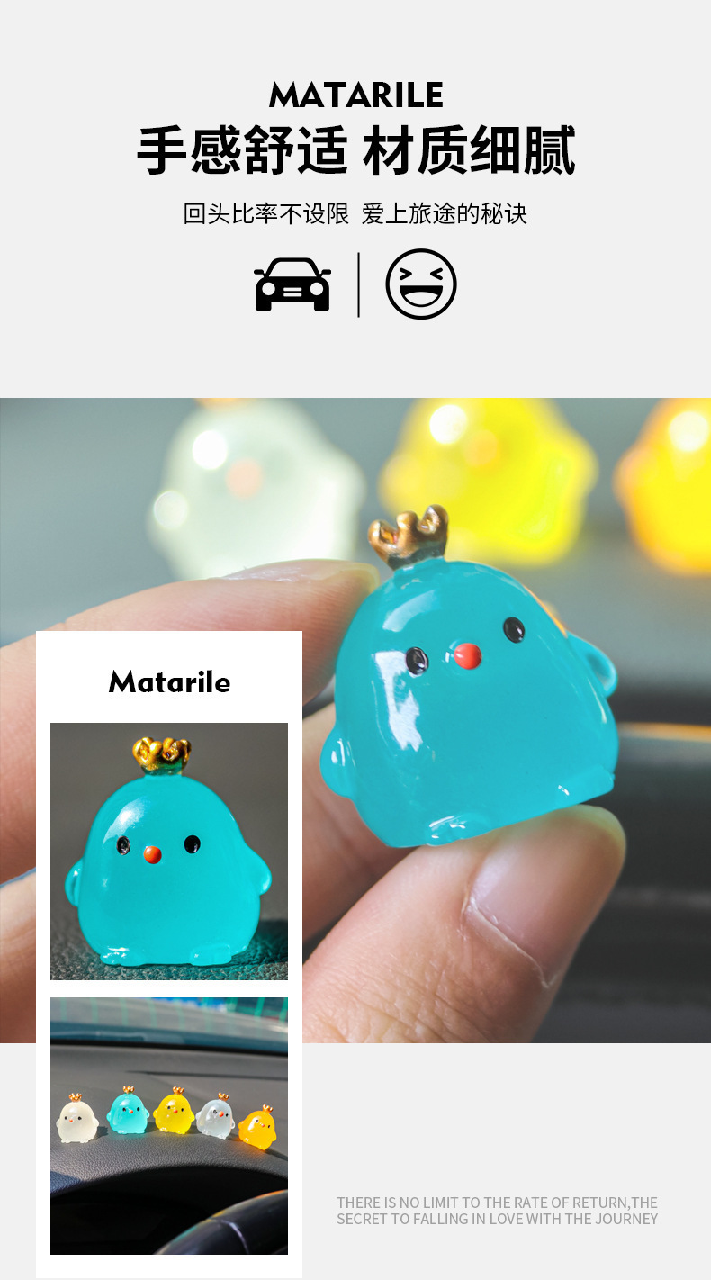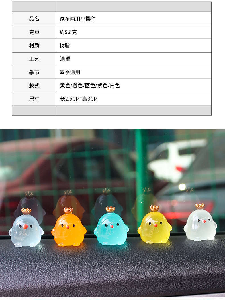 크라운 치킨 귀여운 작은 장식품 자동차 귀여운 자동차 홈 이중 사용 미니 빛나는 작은 장식품 자동차 인테리어 장식