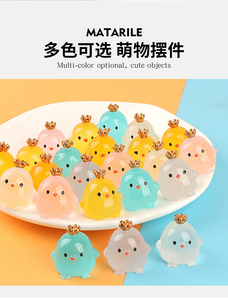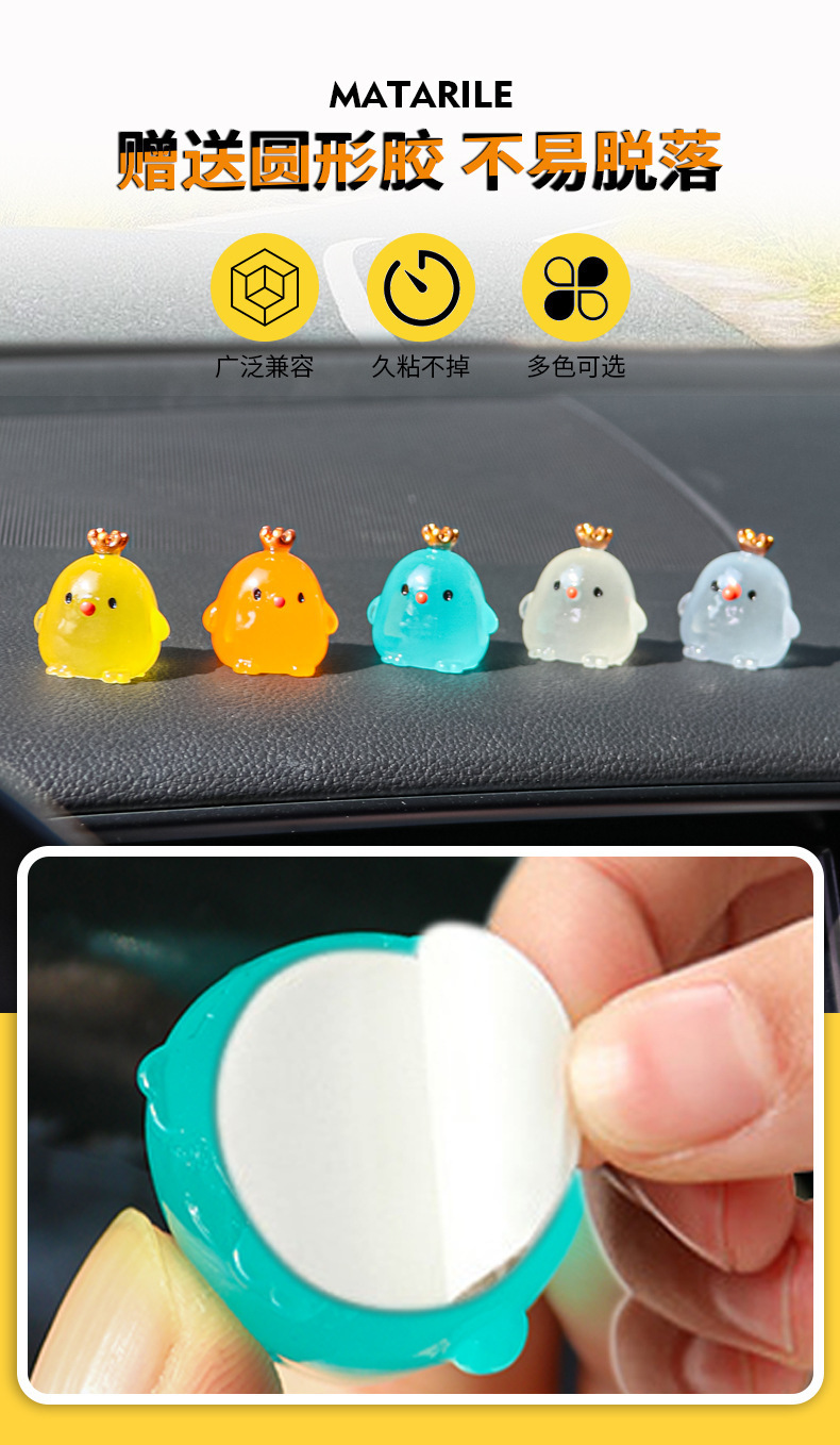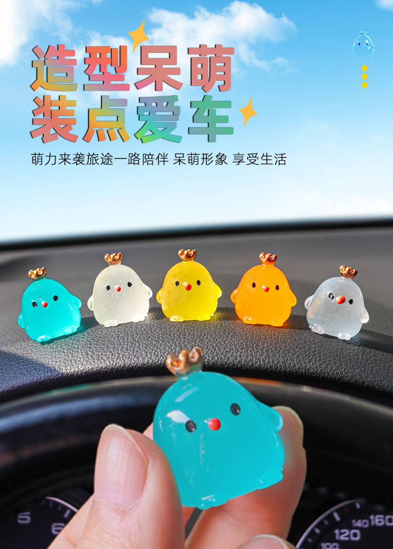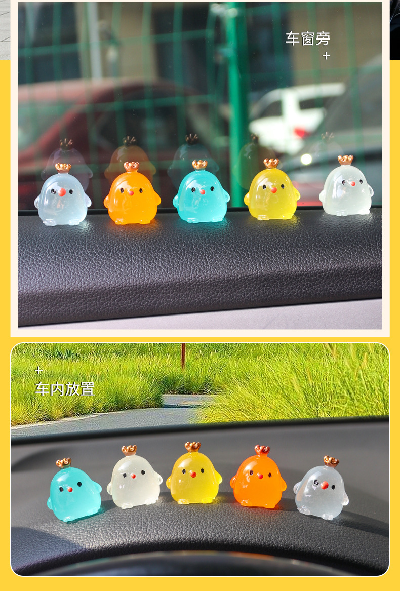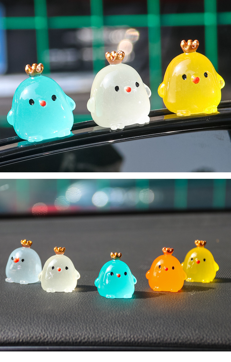 크라운 치킨 귀여운 작은 장식품 자동차 귀여운 자동차 홈 이중 사용 미니 빛나는 작은 장식품 자동차 인테리어 장식