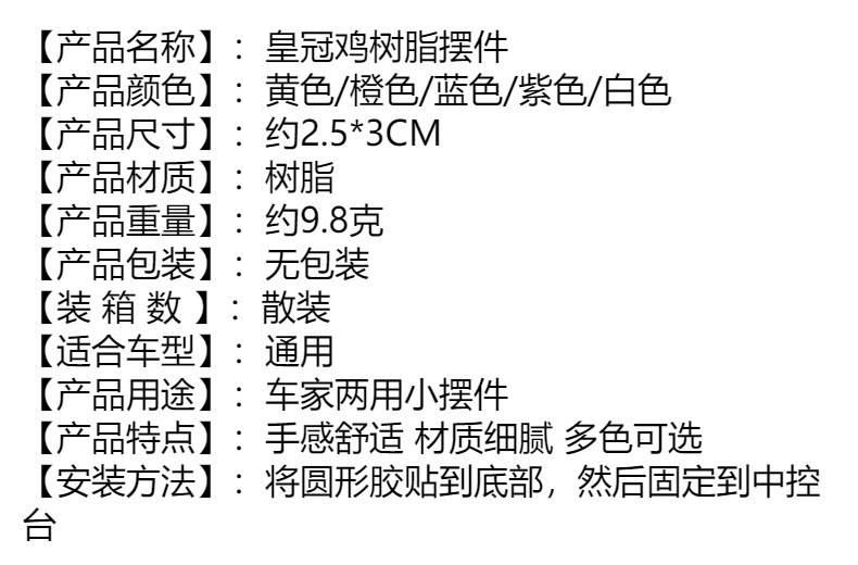 크라운 치킨 귀여운 작은 장식품 자동차 귀여운 자동차 홈 이중 사용 미니 빛나는 작은 장식품 자동차 인테리어 장식스토어 가기