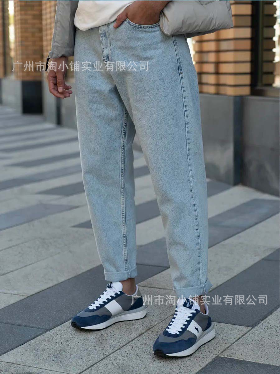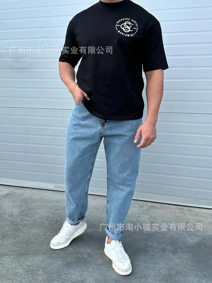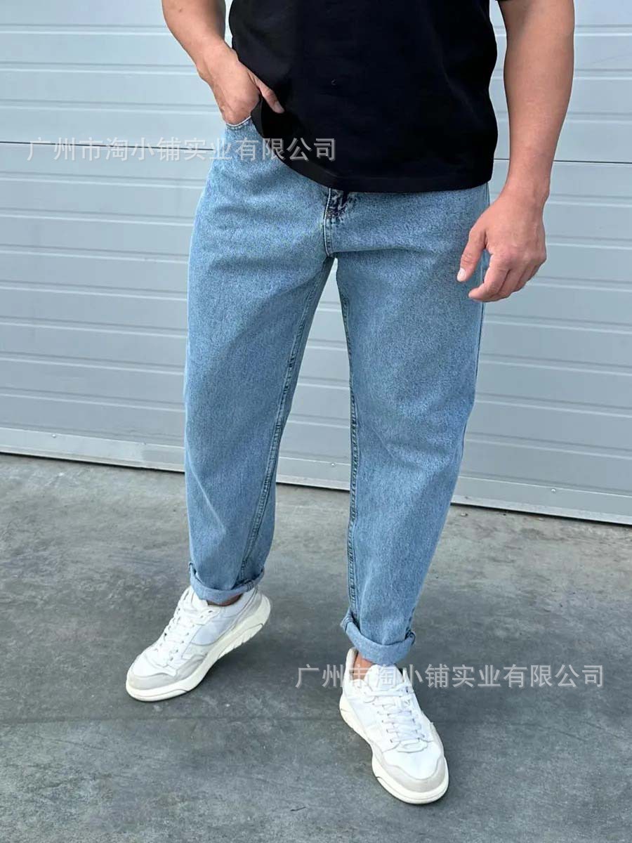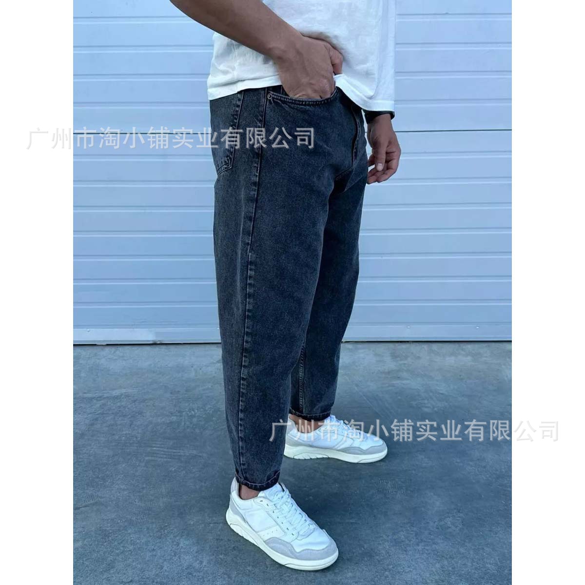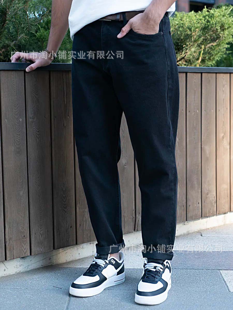 블랙 팬츠 남성용 루즈 스트레이트 청바지 남성용 바나나 팬츠 캐주얼 플러스 사이즈 하이 엔드 할란 크롭 팬츠 봄스토어 가기
