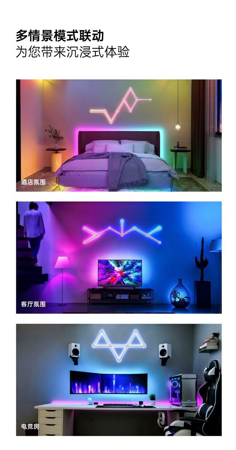RGB 다채로운 조명 스트립이 있는 게이밍 테이블, 분위기 조명, WIFI 및 블루투스 연결 가능, LED 별자리 퀀텀 벽등