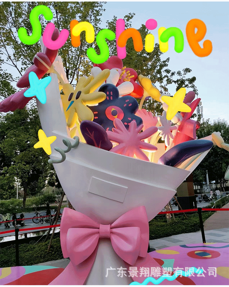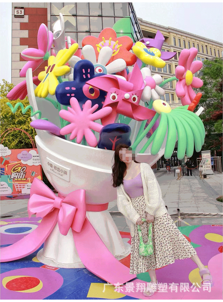 대형 유리 섬유 강화 플라스틱 시뮬레이션 꽃다발 모델 조각 장식품 야외 정원 풍경 공원 숲 명승지 펀치 카드 아름다움 첸