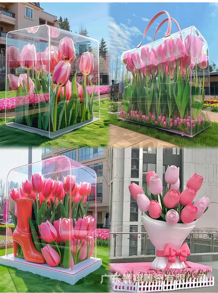 대형 유리 섬유 강화 플라스틱 시뮬레이션 꽃다발 모델 조각 장식품 야외 정원 풍경 공원 숲 명승지 펀치 카드 아름다움 첸스토어 가기