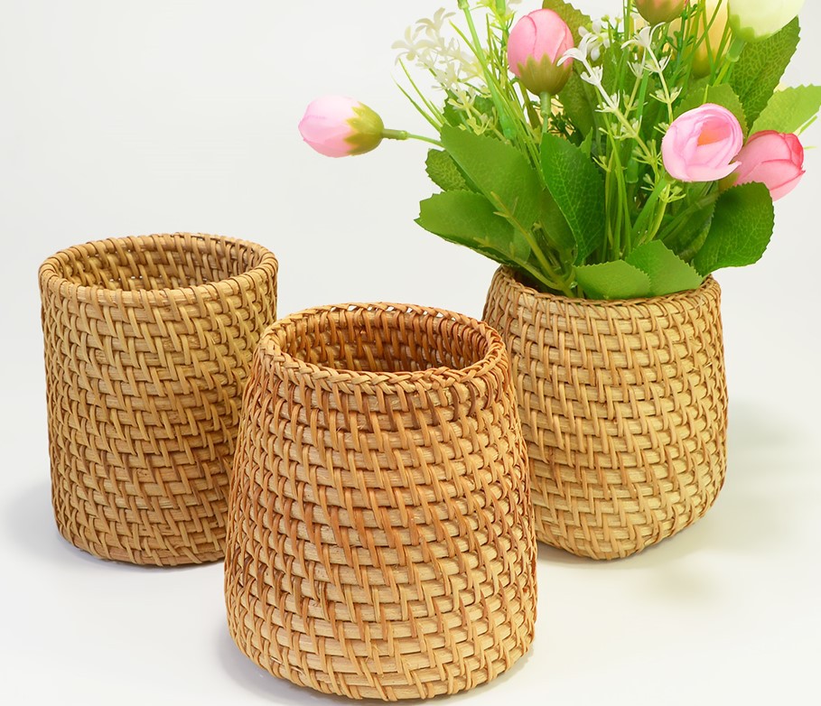 등나무로 짠 수제 펜 홀더 베트남 가을 등나무 다도 액세서리 보관통 다도 차통 펜 홀더 장식품 보관통 등나무스토어 가기