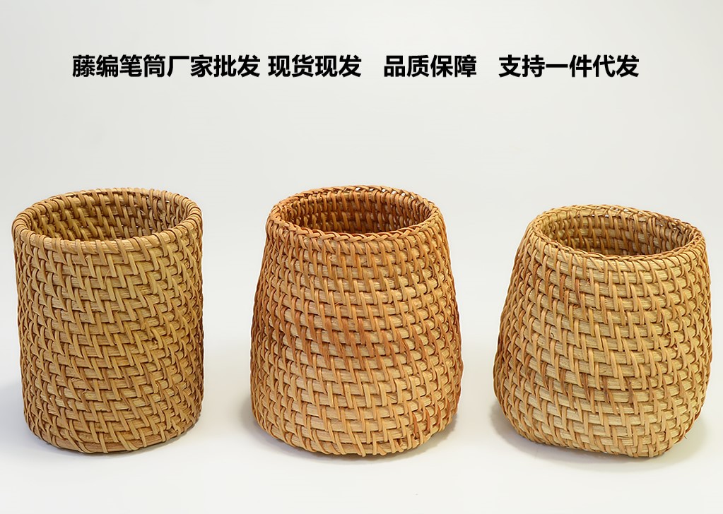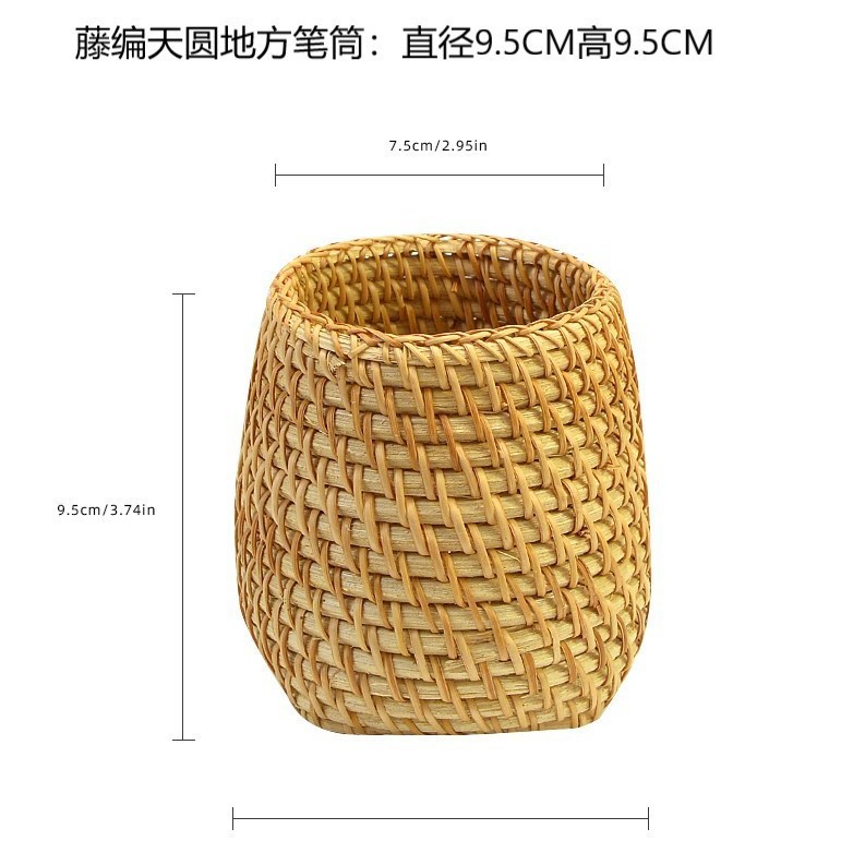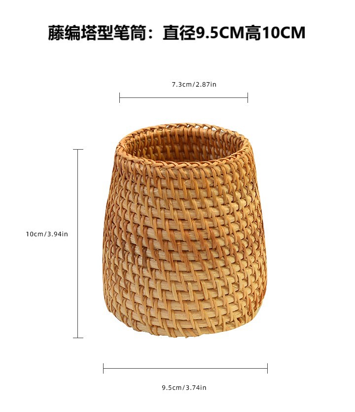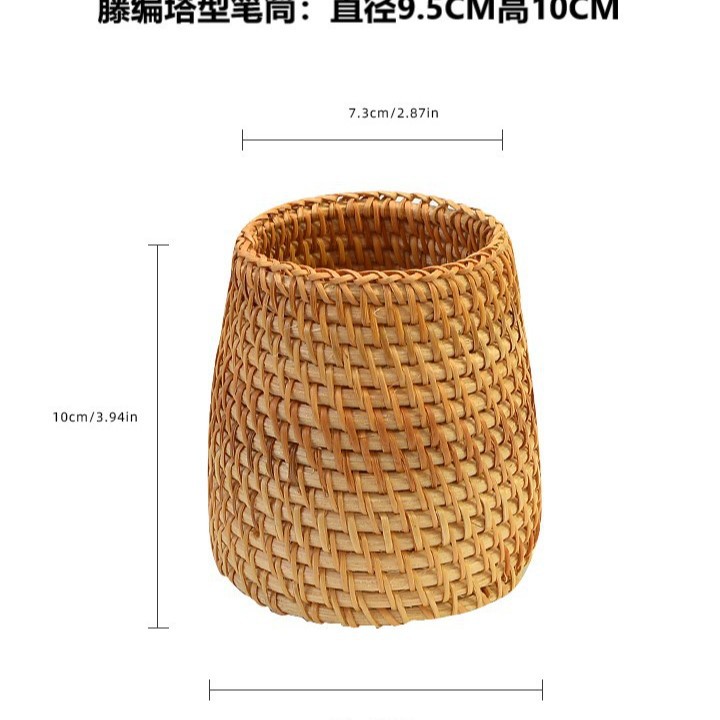 등나무로 짠 수제 펜 홀더 베트남 가을 등나무 다도 액세서리 보관통 다도 차통 펜 홀더 장식품 보관통 등나무