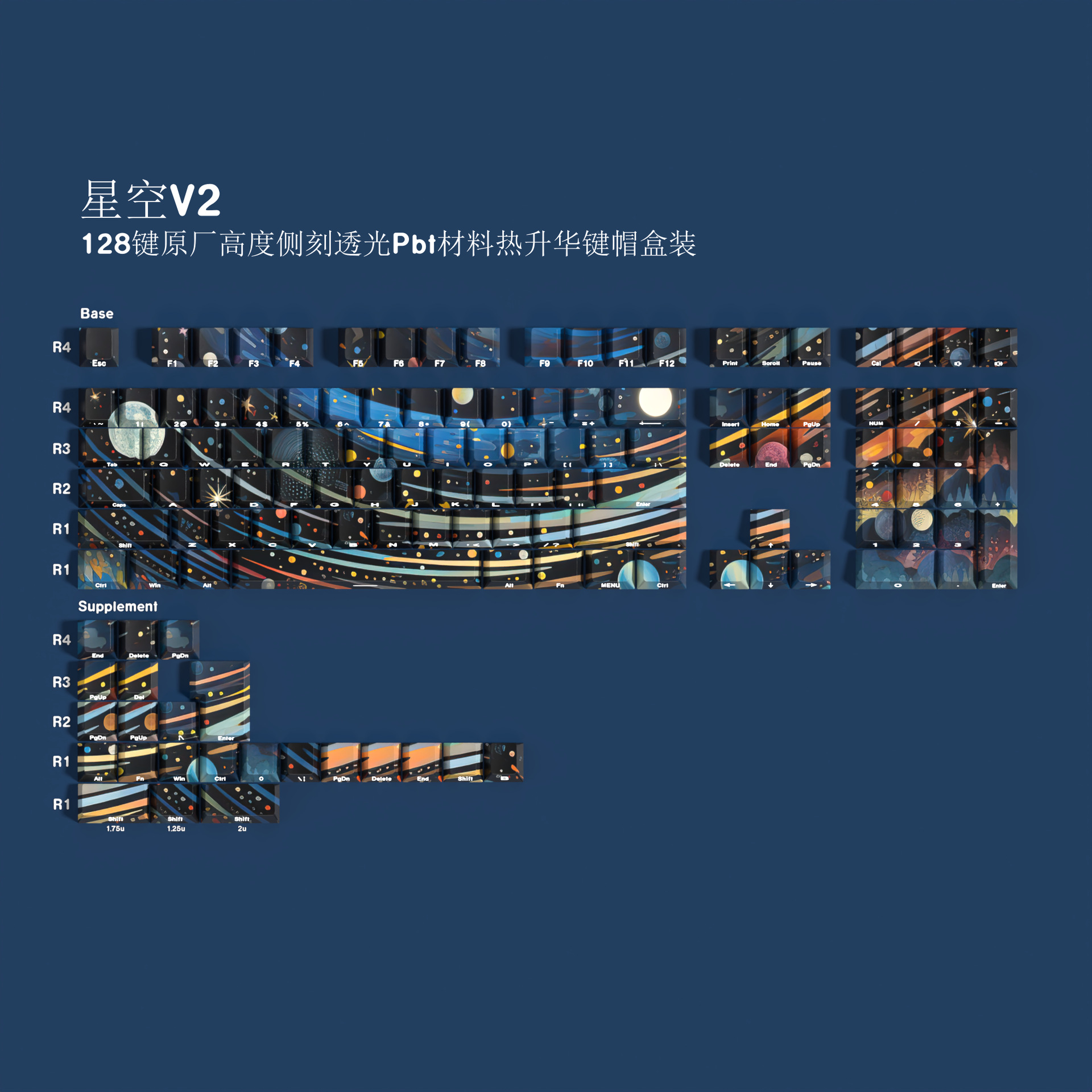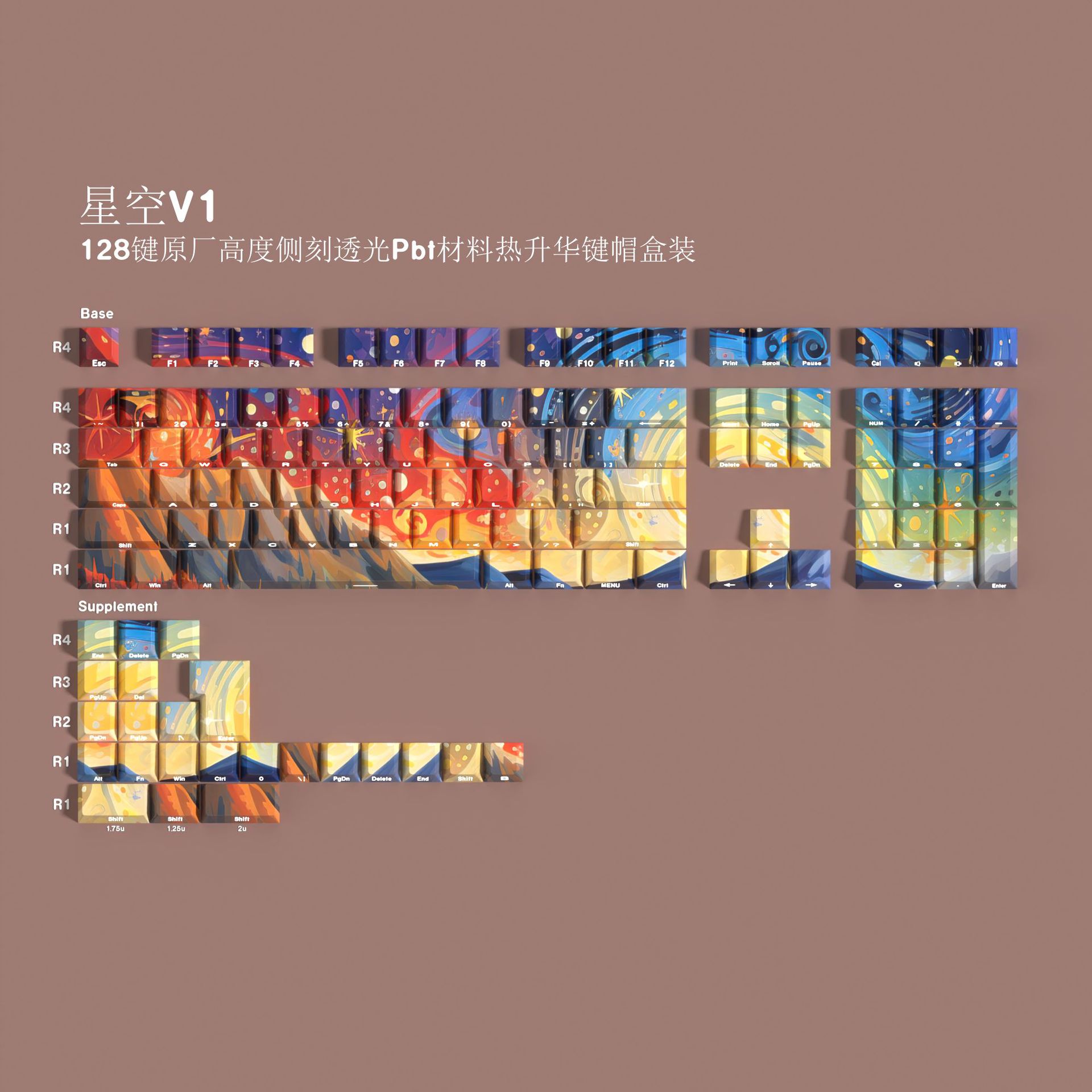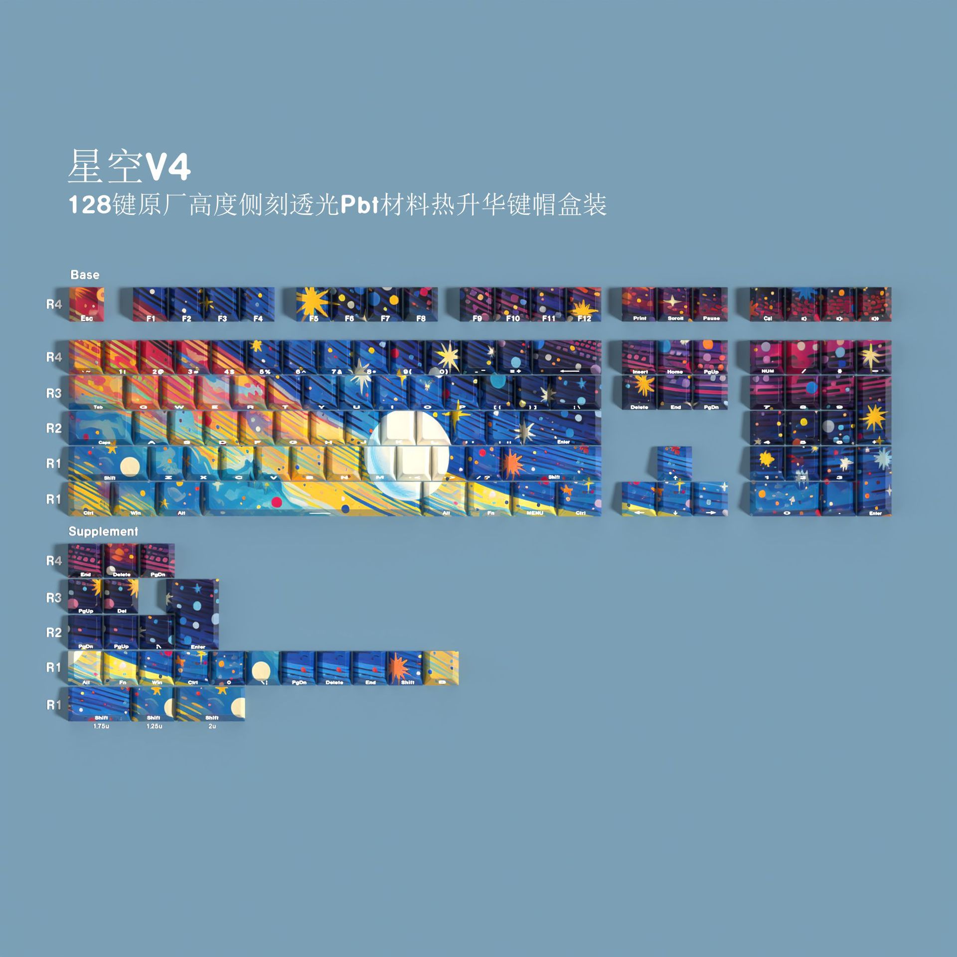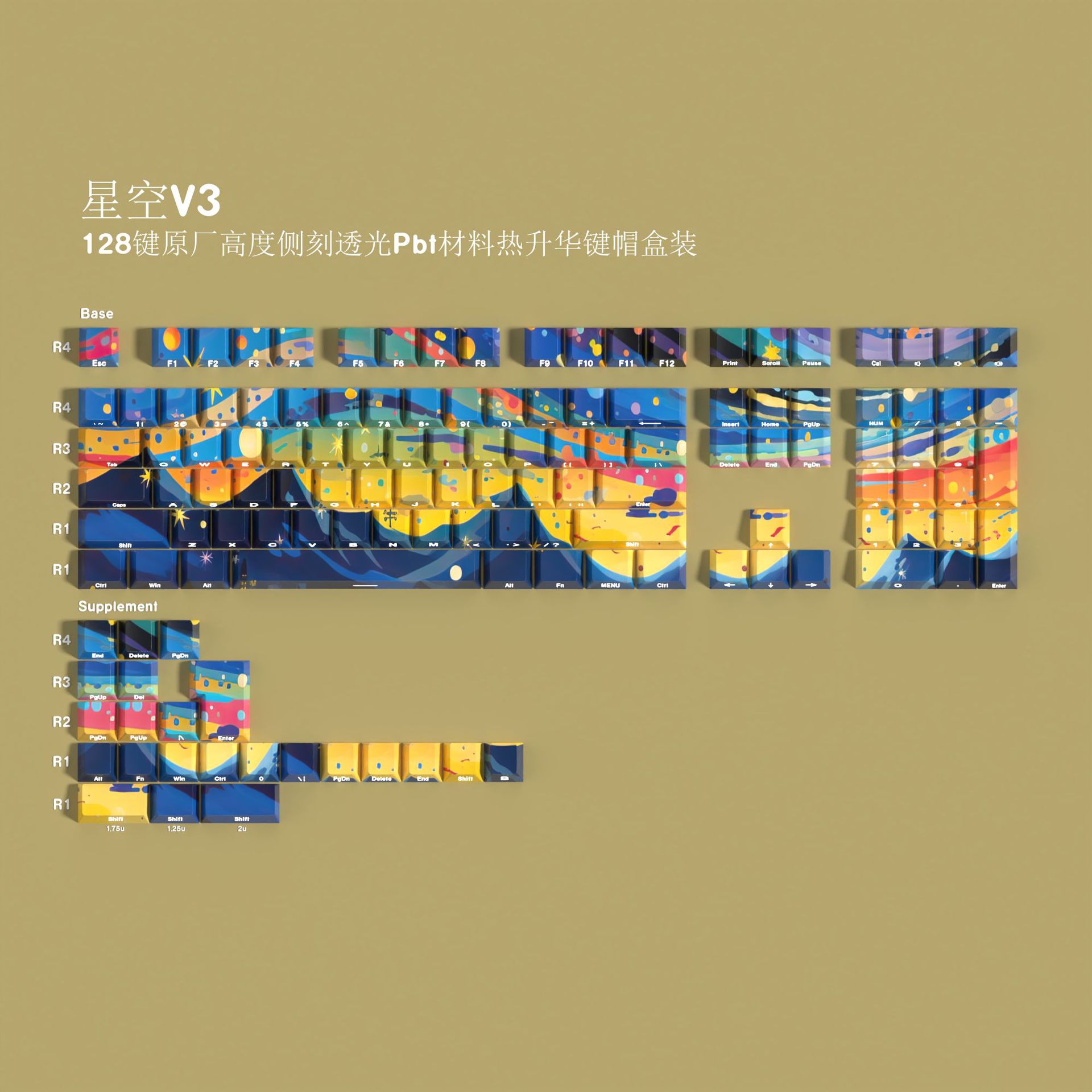 JCM 별이 빛나는 하늘 유화 키 캡 측면 새겨진 광 전송 캐릭터 128 키 박스 대형 기계 키보드 캡 우드 세트스토어 가기