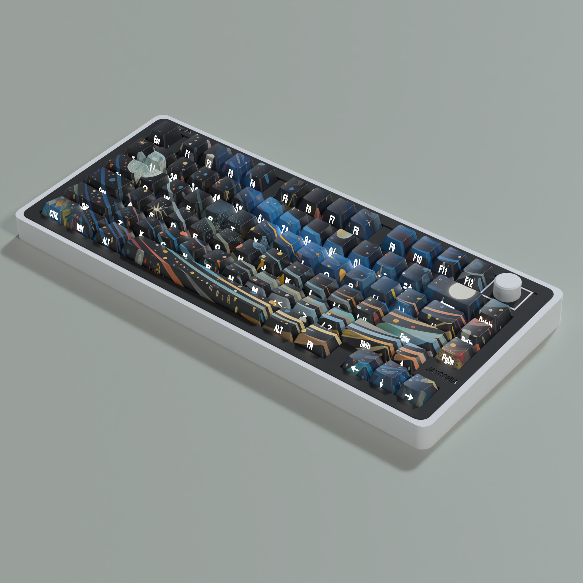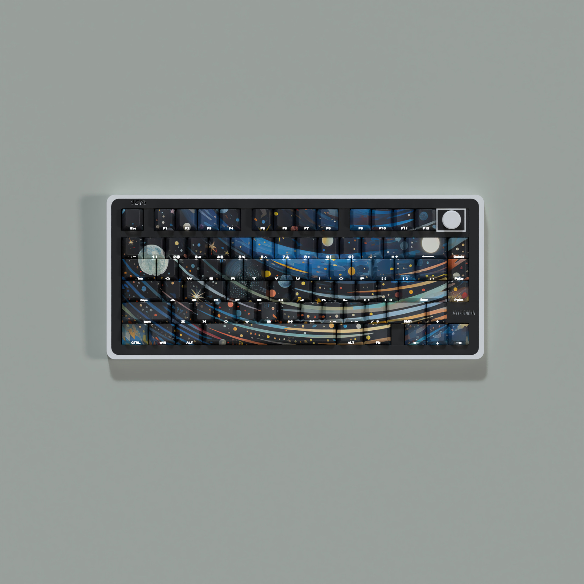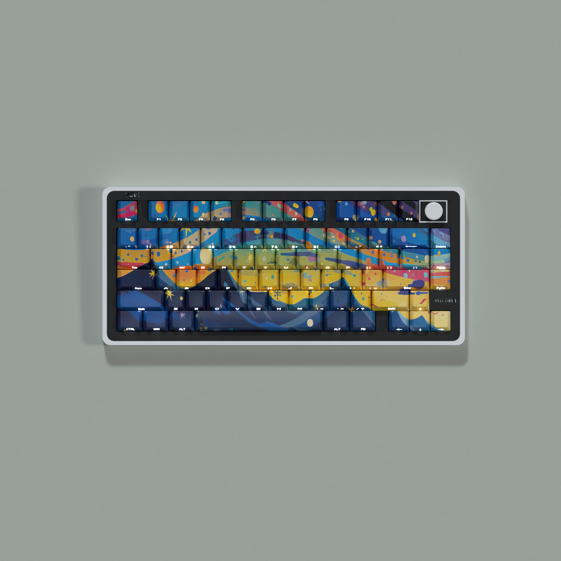 JCM 별이 빛나는 하늘 유화 키 캡 측면 새겨진 광 전송 캐릭터 128 키 박스 대형 기계 키보드 캡 우드 세트스토어 가기