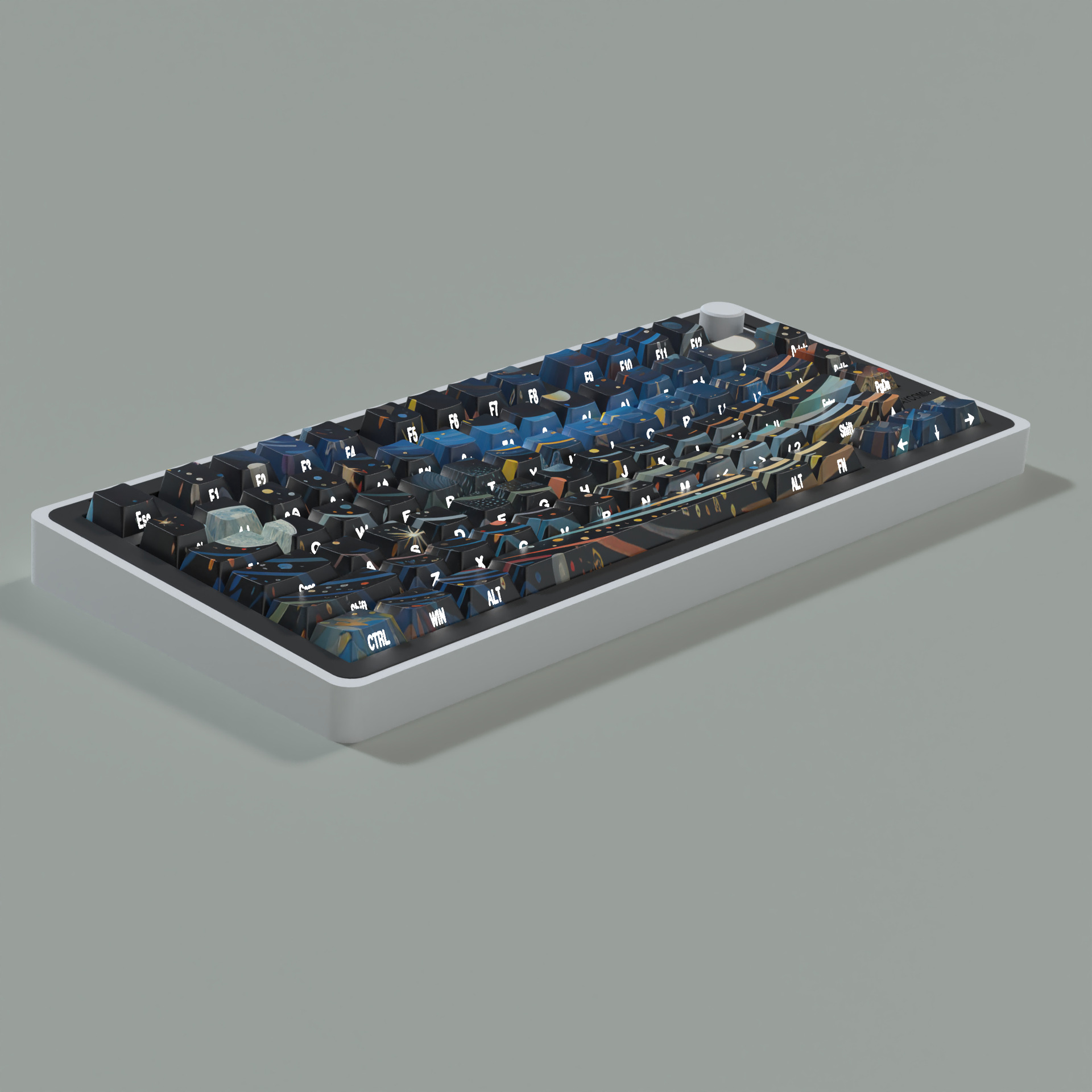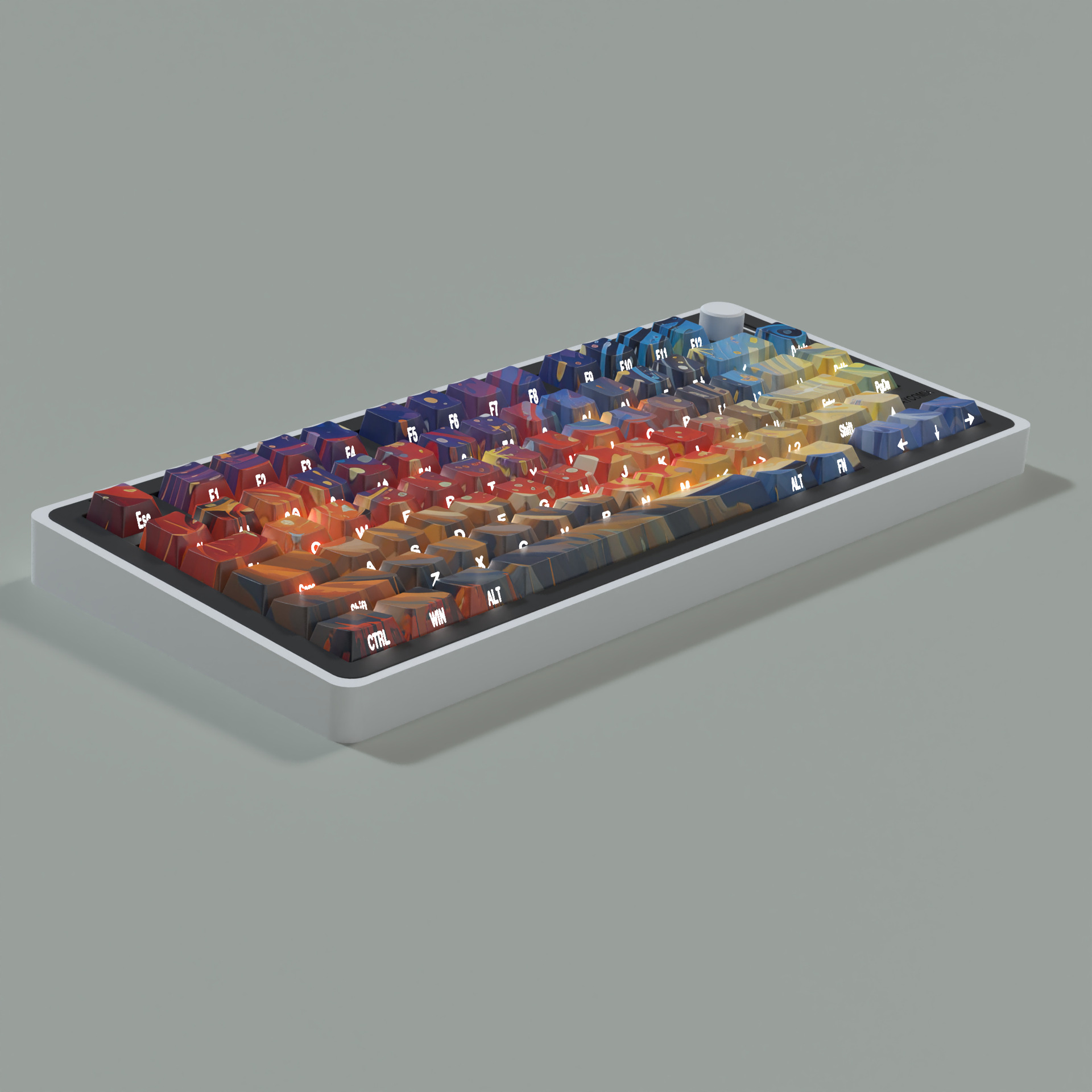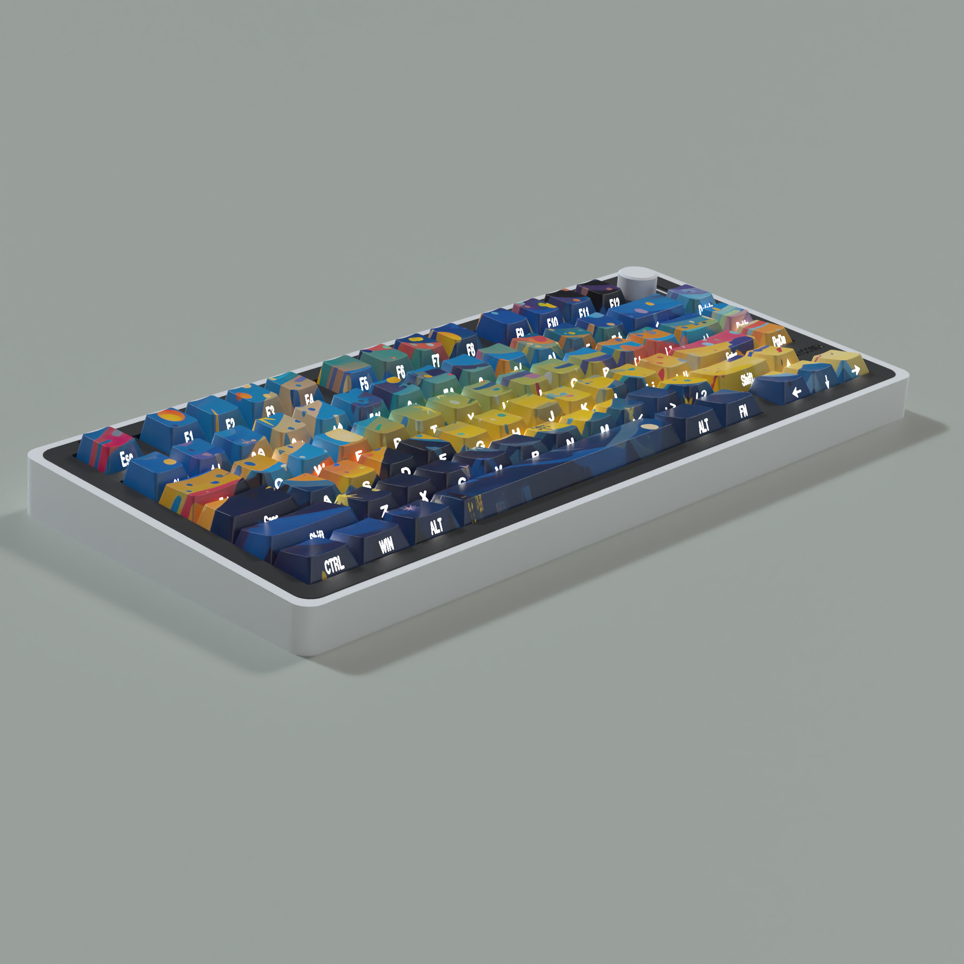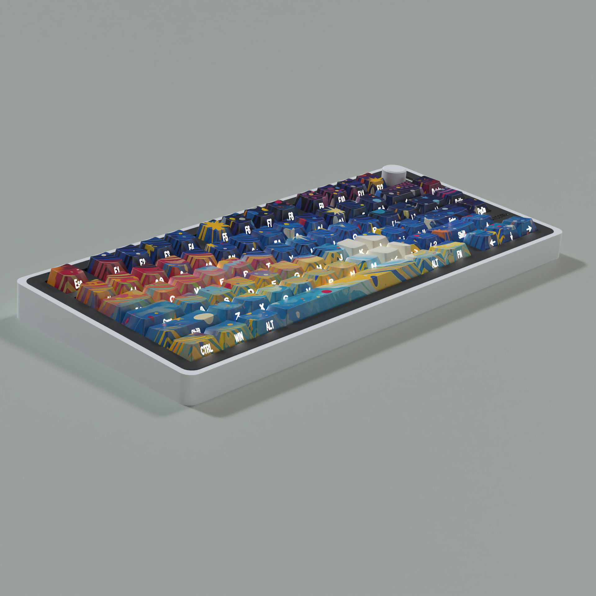 JCM 별이 빛나는 하늘 유화 키 캡 측면 새겨진 광 전송 캐릭터 128 키 박스 대형 기계 키보드 캡 우드 세트스토어 가기