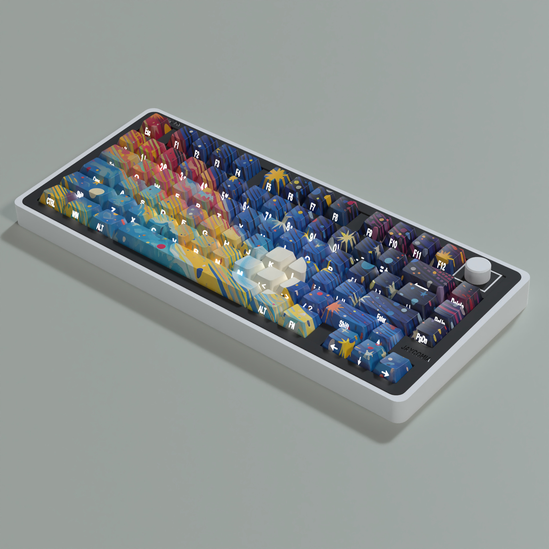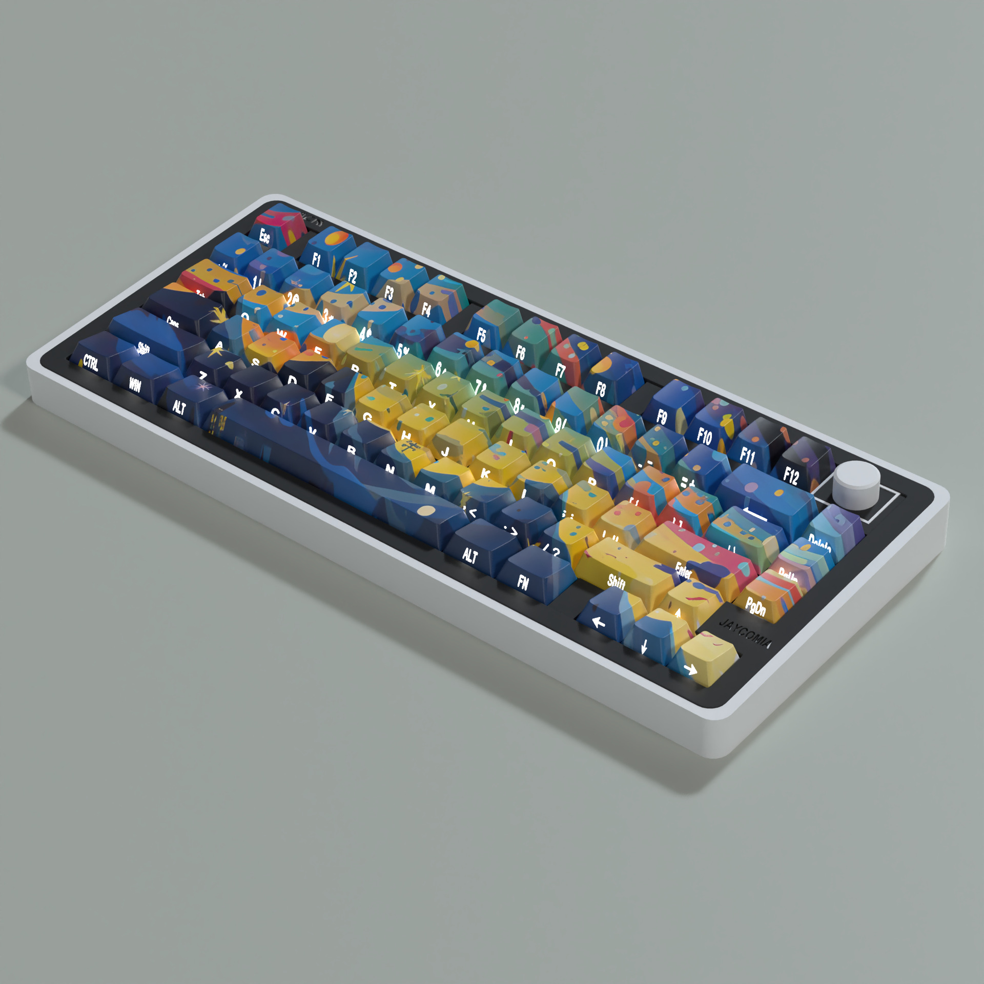 JCM 별이 빛나는 하늘 유화 키 캡 측면 새겨진 광 전송 캐릭터 128 키 박스 대형 기계 키보드 캡 우드 세트