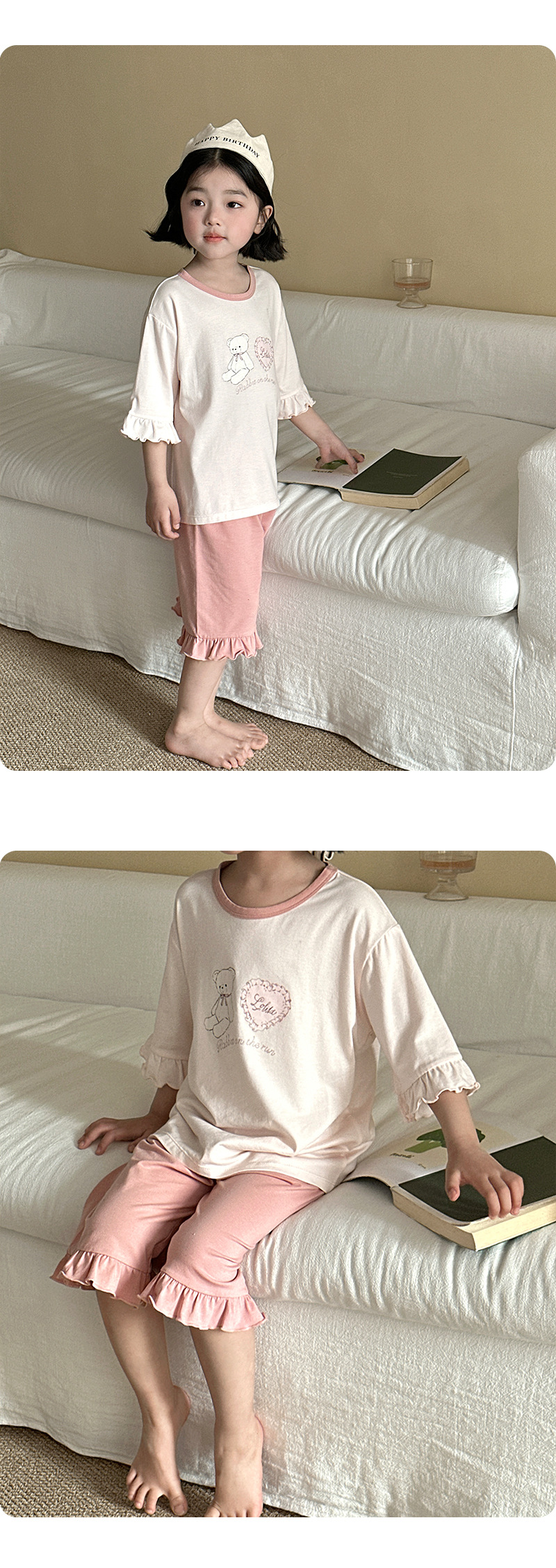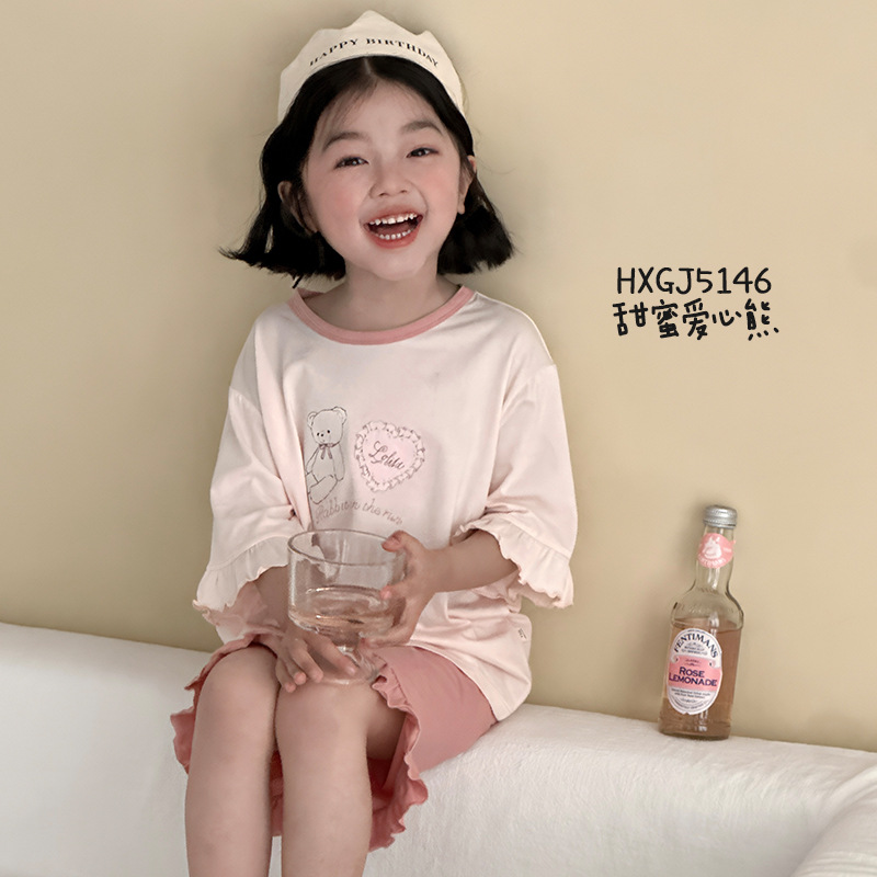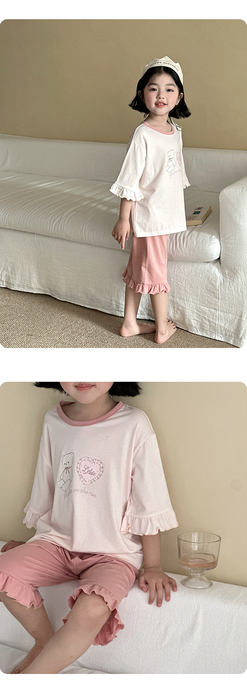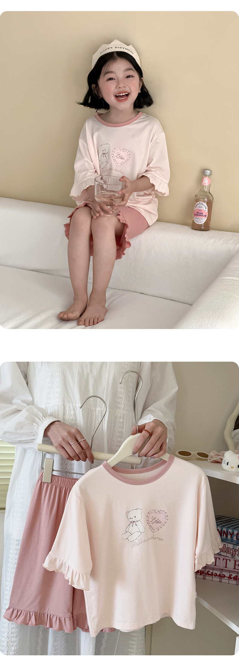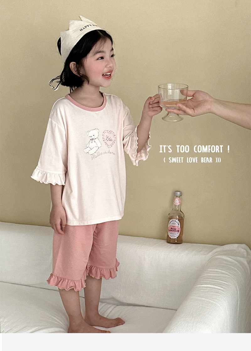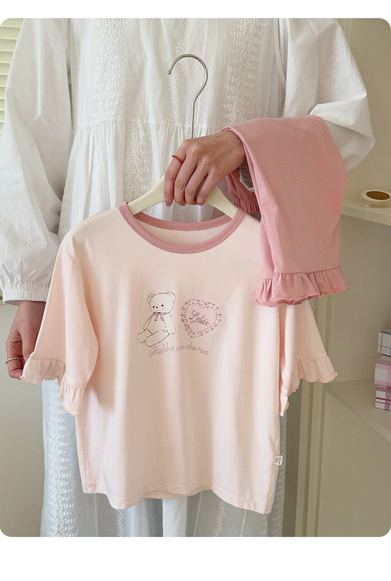 블랙커피베어 라운드넥 리오셀 A급 아동 홈웨어 2026 봄여름 신상 루즈핏 여아 반팔 잠옷 세트스토어 가기