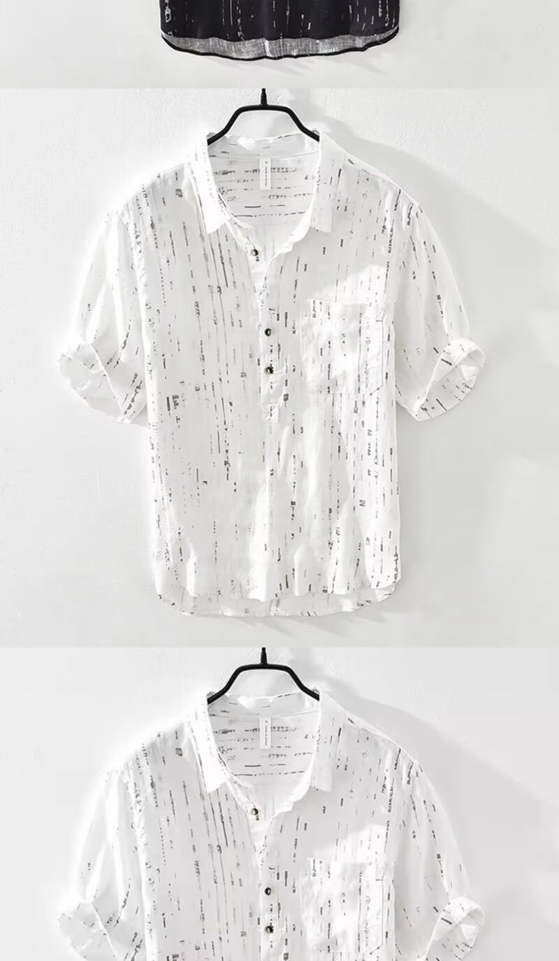 일본식 레트로 풀오버 리넨 셔츠 남자의 여름 얇은 통기성 플러스 사이즈 유행 인쇄 셔츠 짧은 소매 디자인 감각스토어 가기