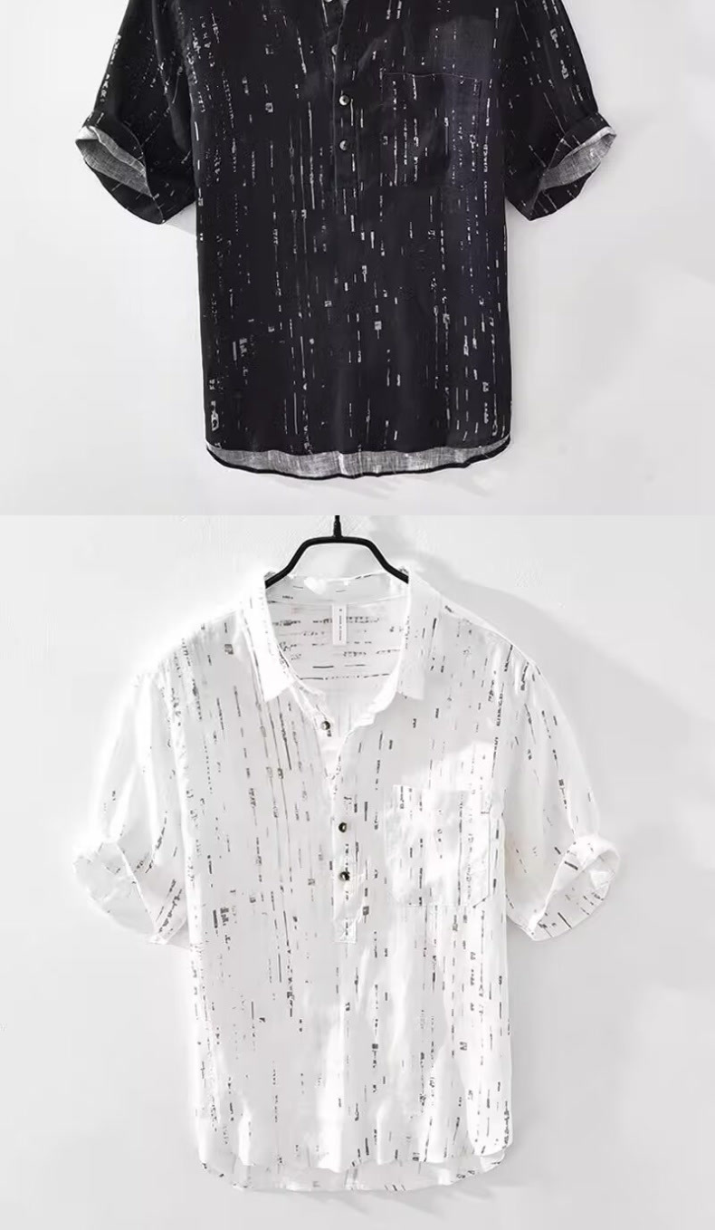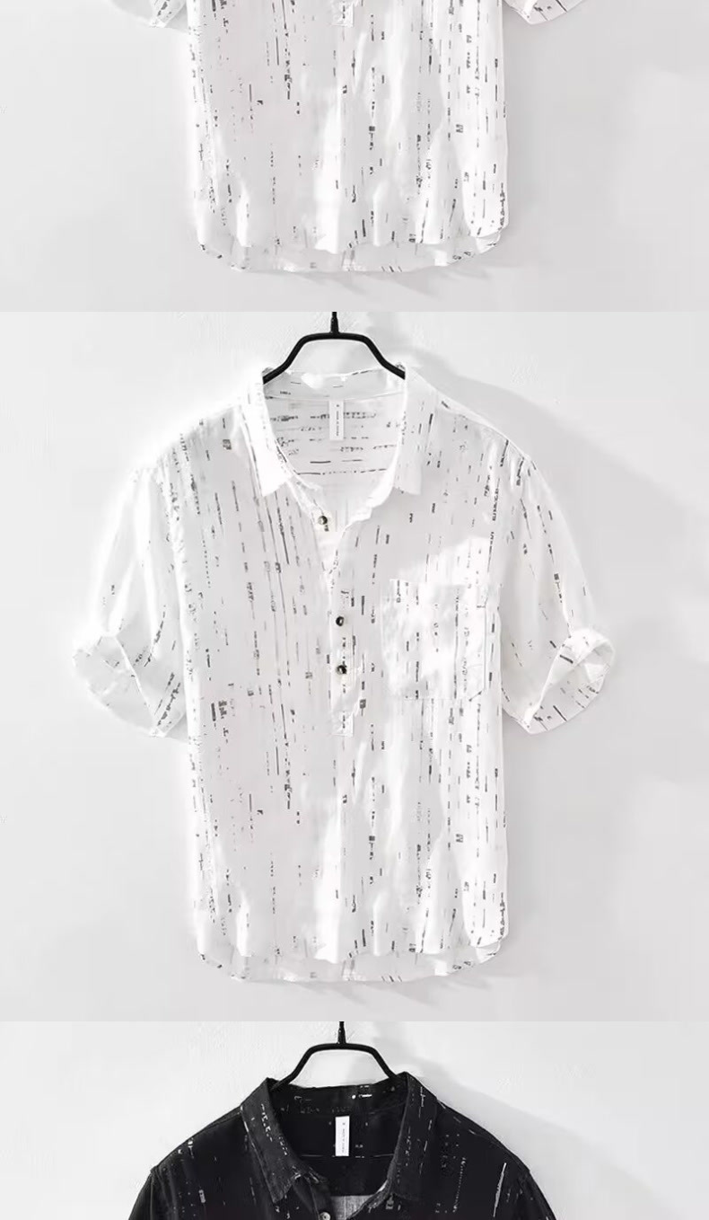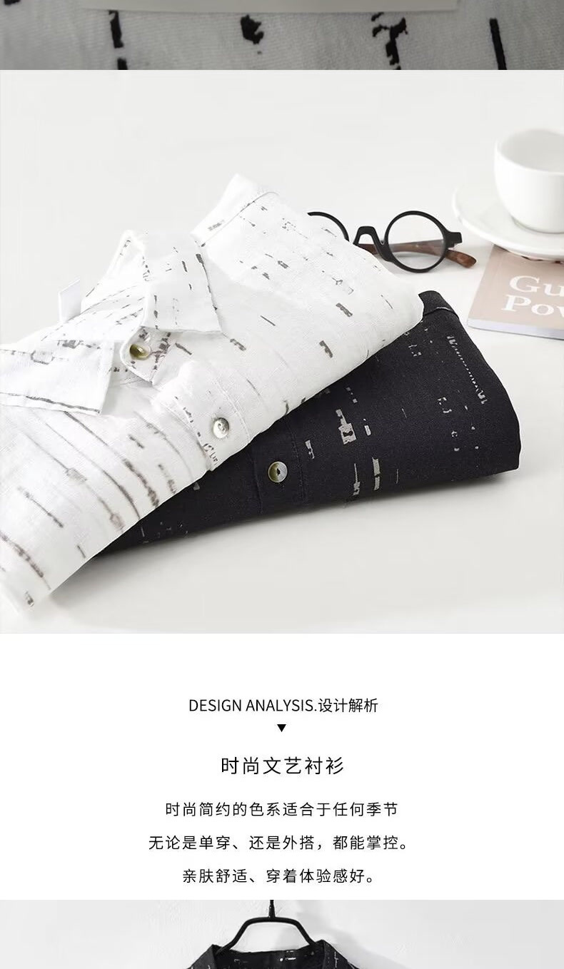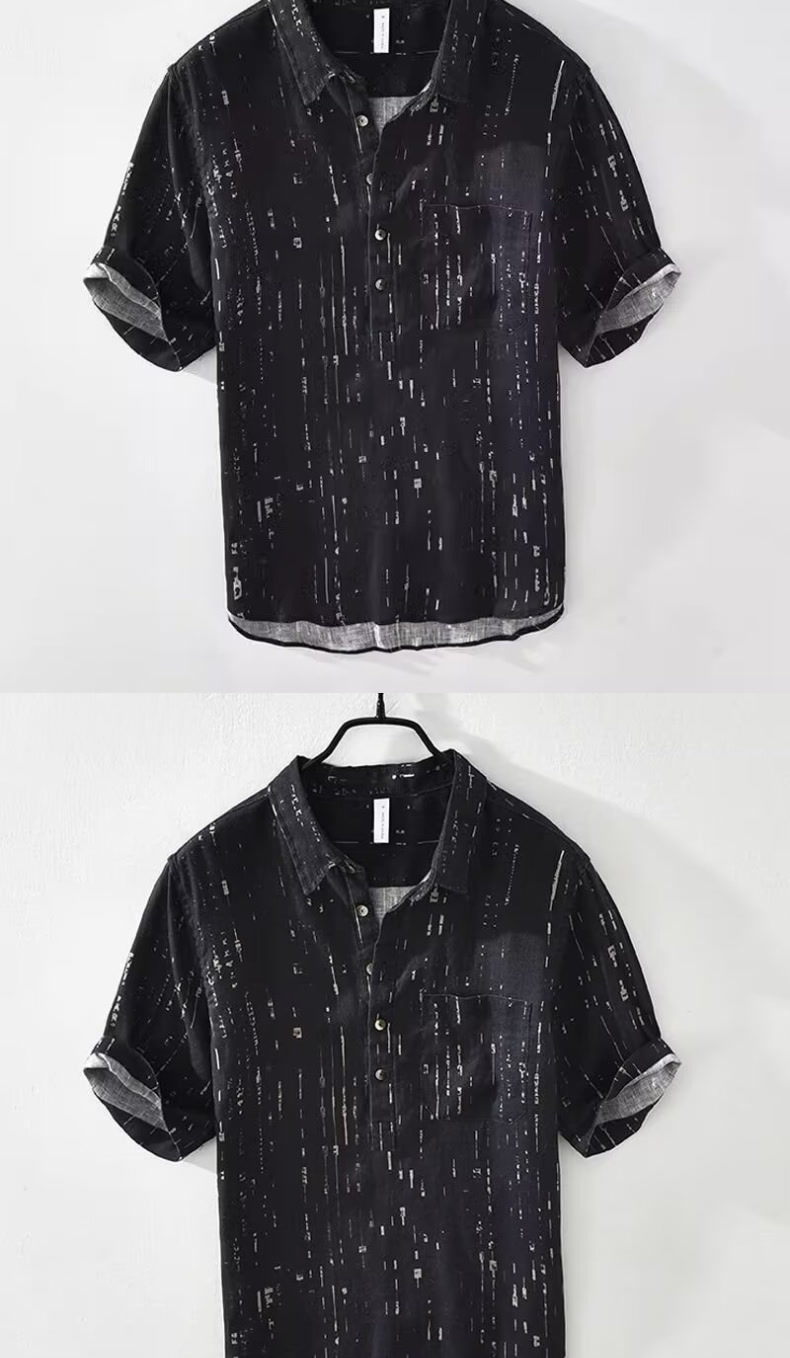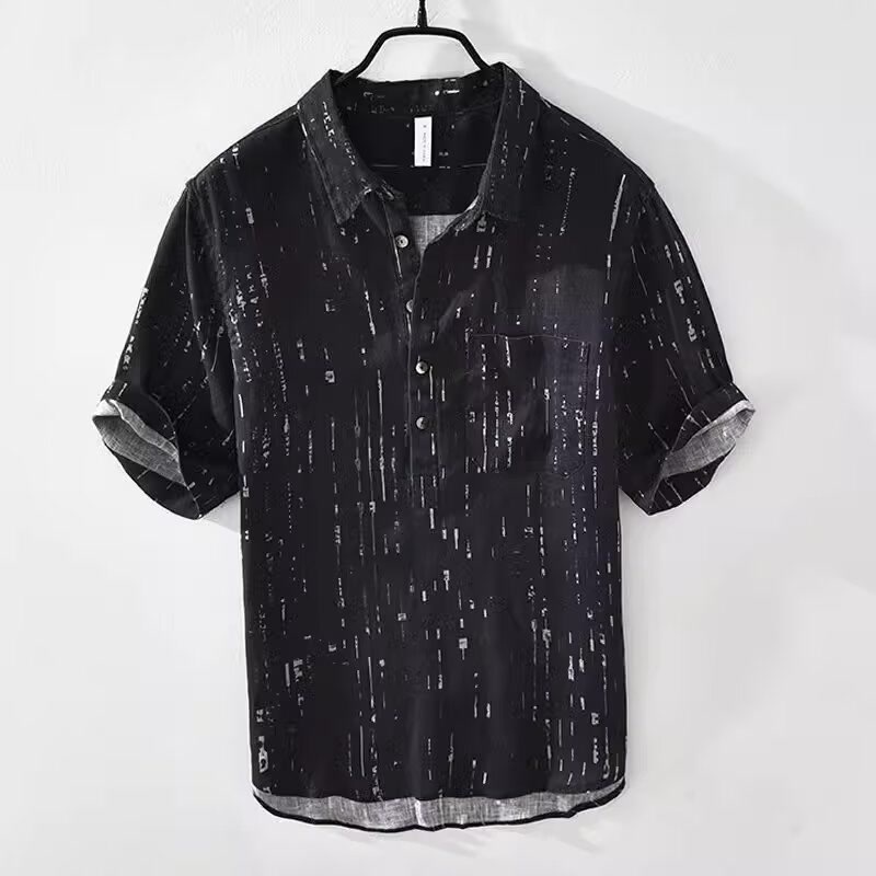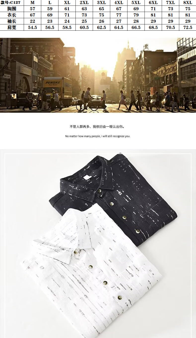 일본식 레트로 풀오버 리넨 셔츠 남자의 여름 얇은 통기성 플러스 사이즈 유행 인쇄 셔츠 짧은 소매 디자인 감각