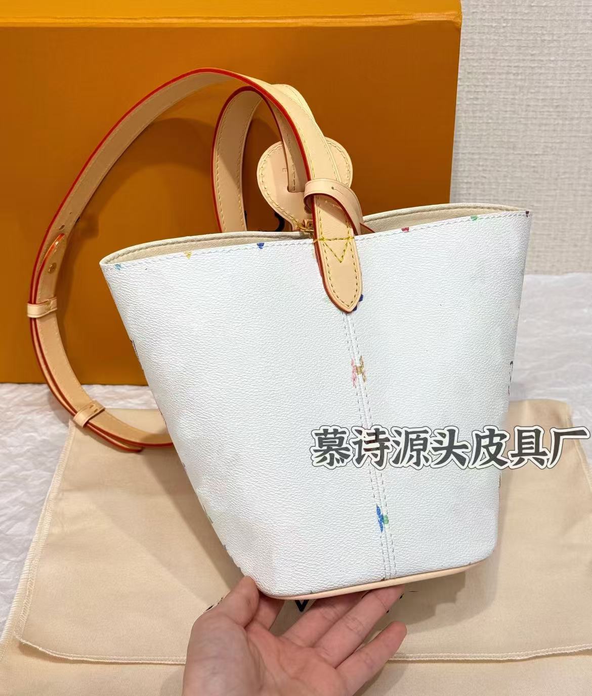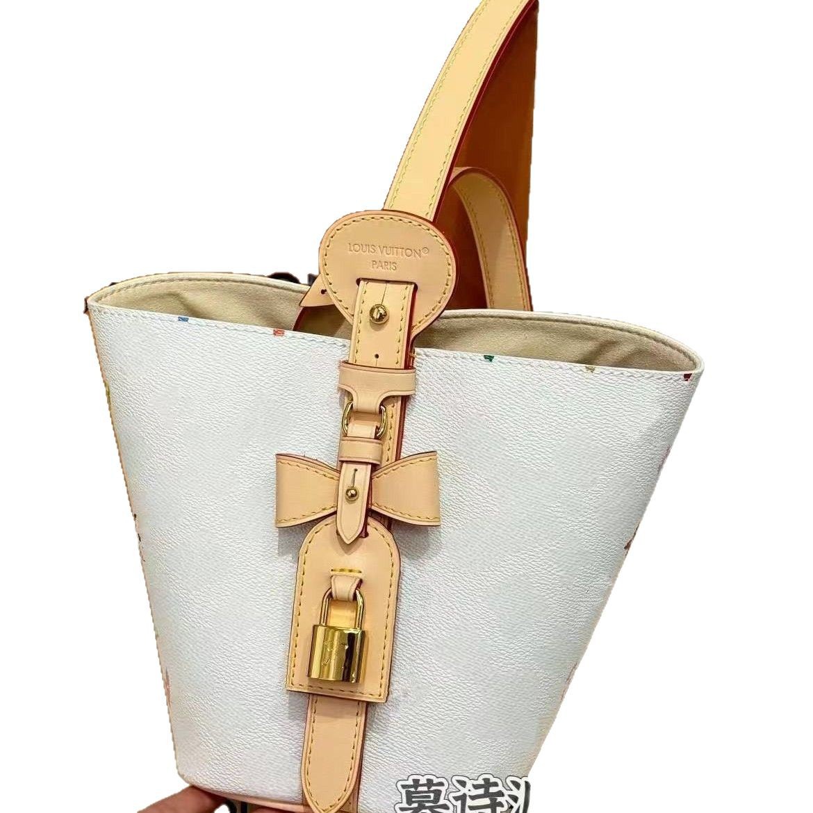 25 년 새로운 모든 bb 버킷 가방 화이트 컬러 3 활 잠금 가방 어머니 가방 여성 대각선 어깨스토어 가기
