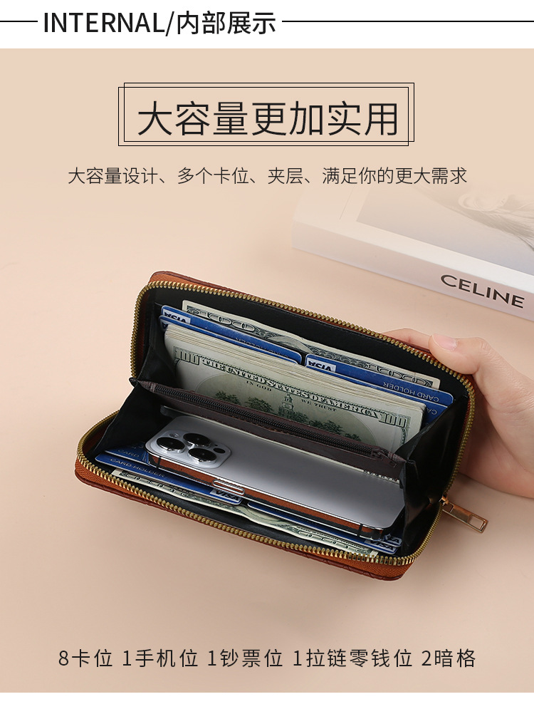 국경 새 여성용 지갑 긴 짠 패턴 지퍼 클러치 멀티 카드 지갑 전화 가방스토어 가기