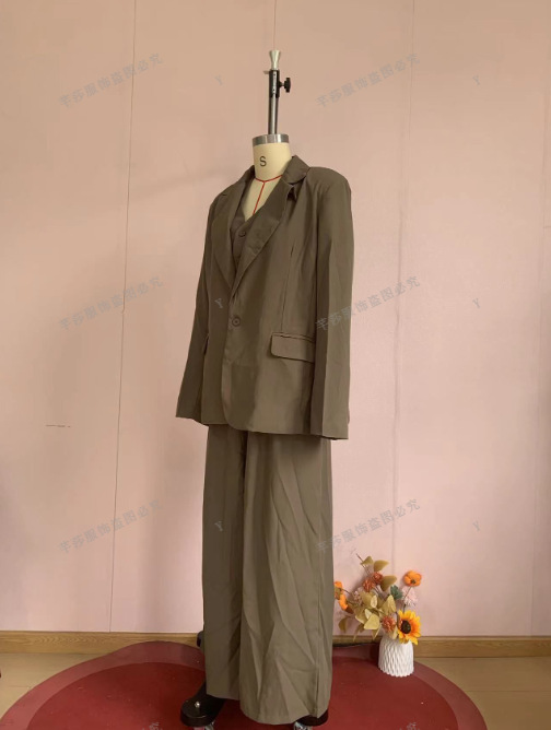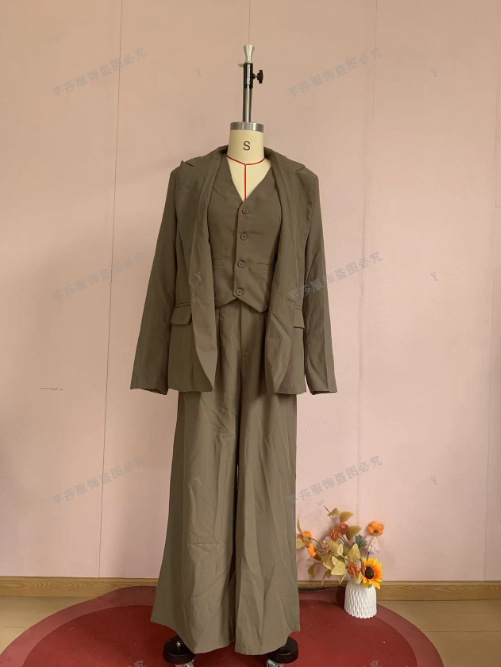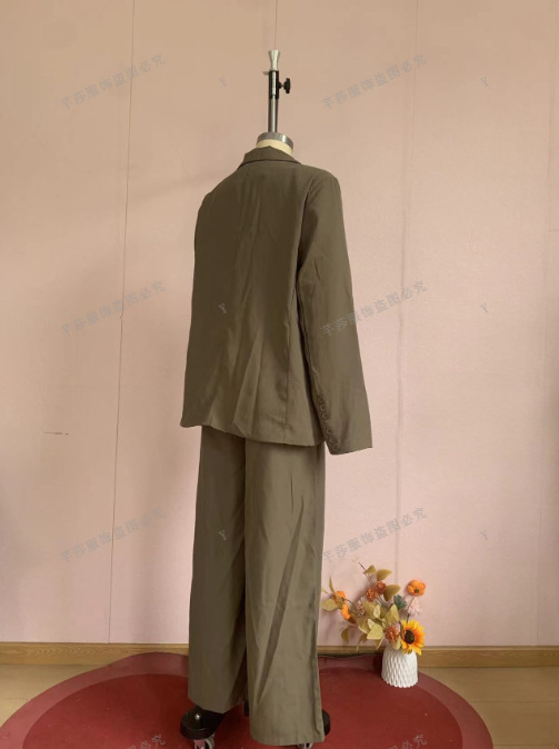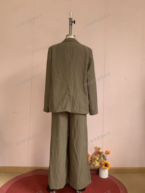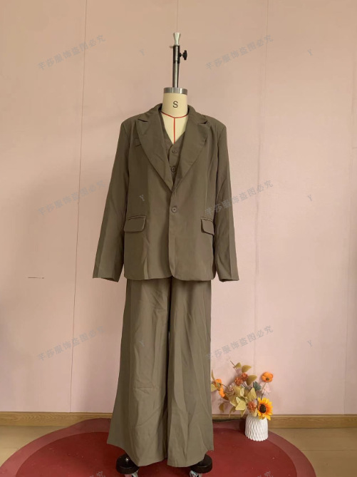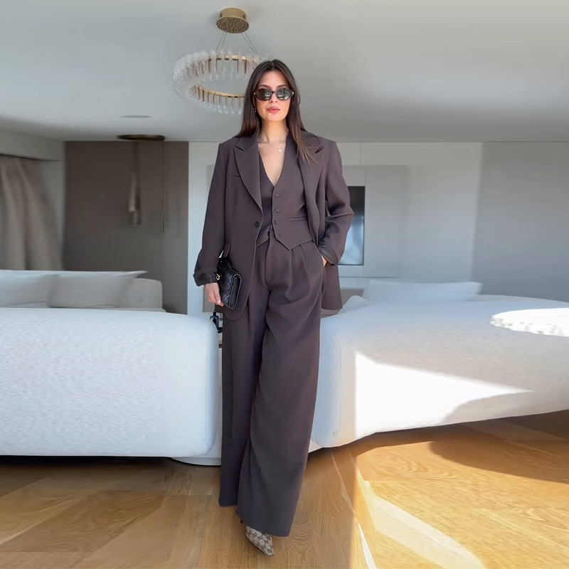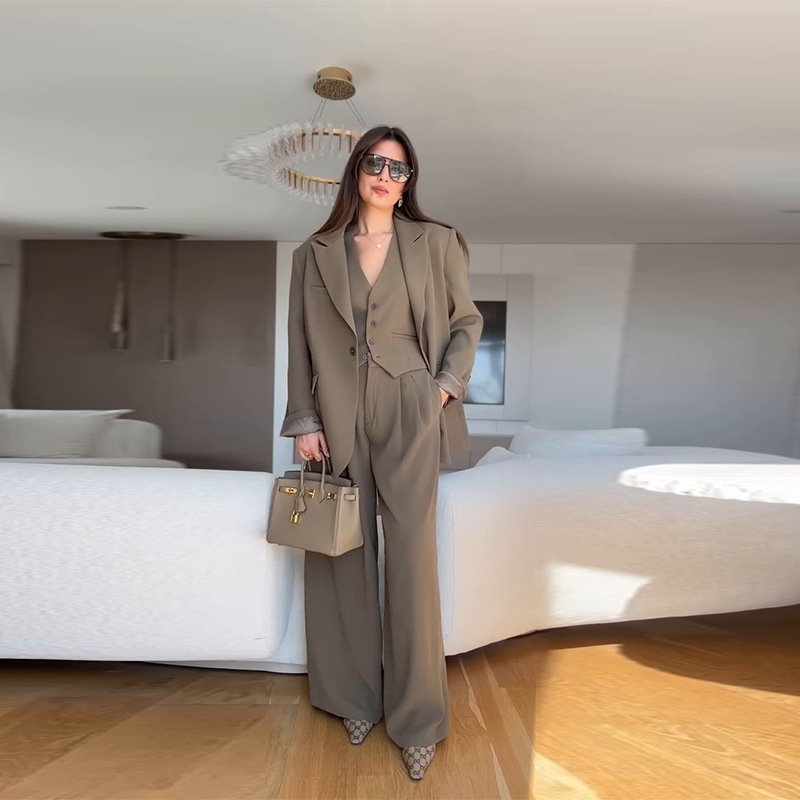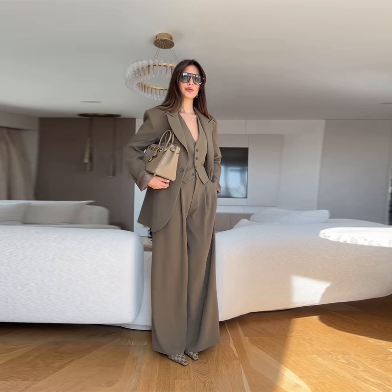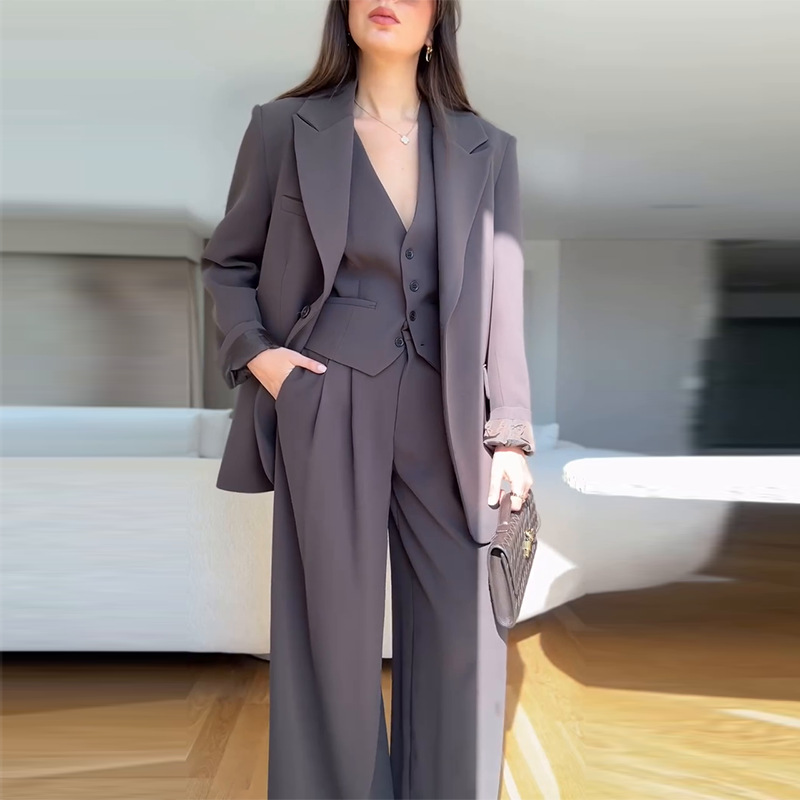 2025 새로운 여성 의류 유럽과 미국 아마존 국경 무역 레저 느슨한 긴 소매 코트 넓은 다리 바지 3 피스 세트