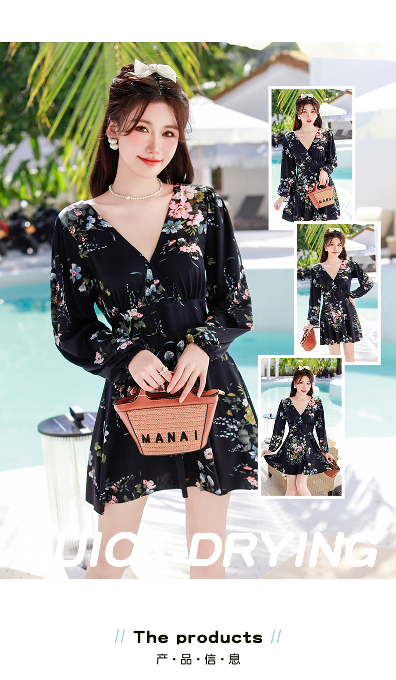 2025 신형 수영복 여성용 긴팔 보수 슬림 배꼽 플러스 사이즈 섹시한 봄 사이버 인기 통통녀 수영복 여성스토어 가기
