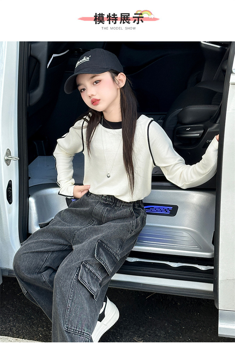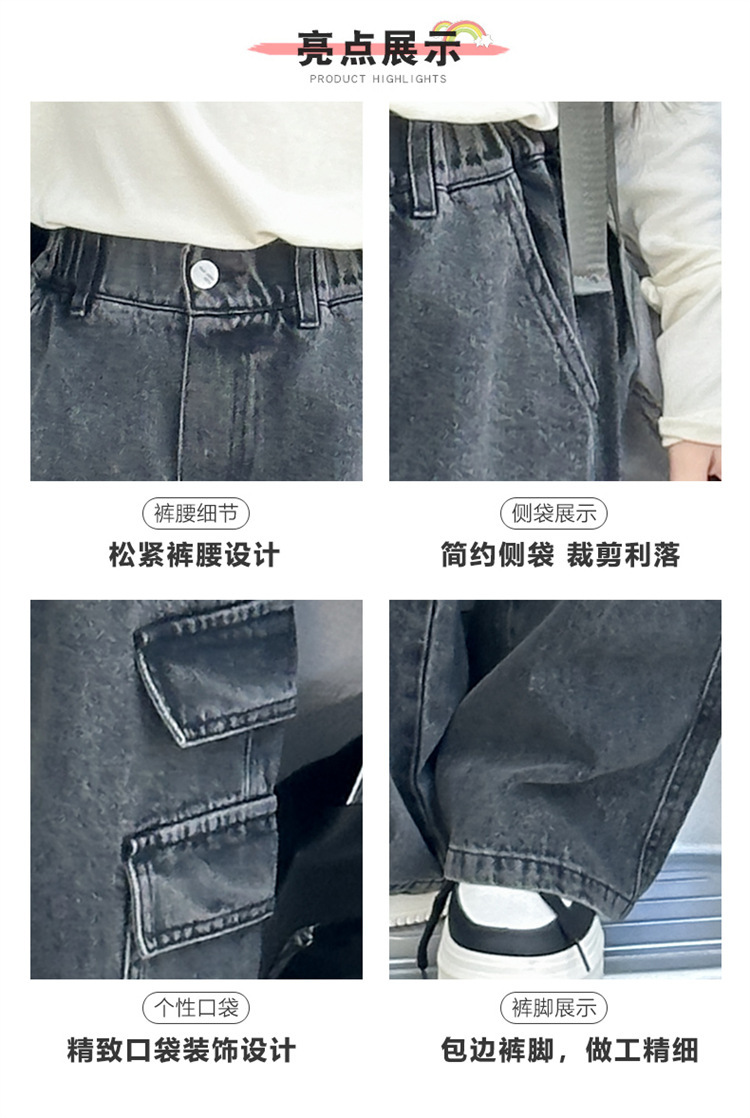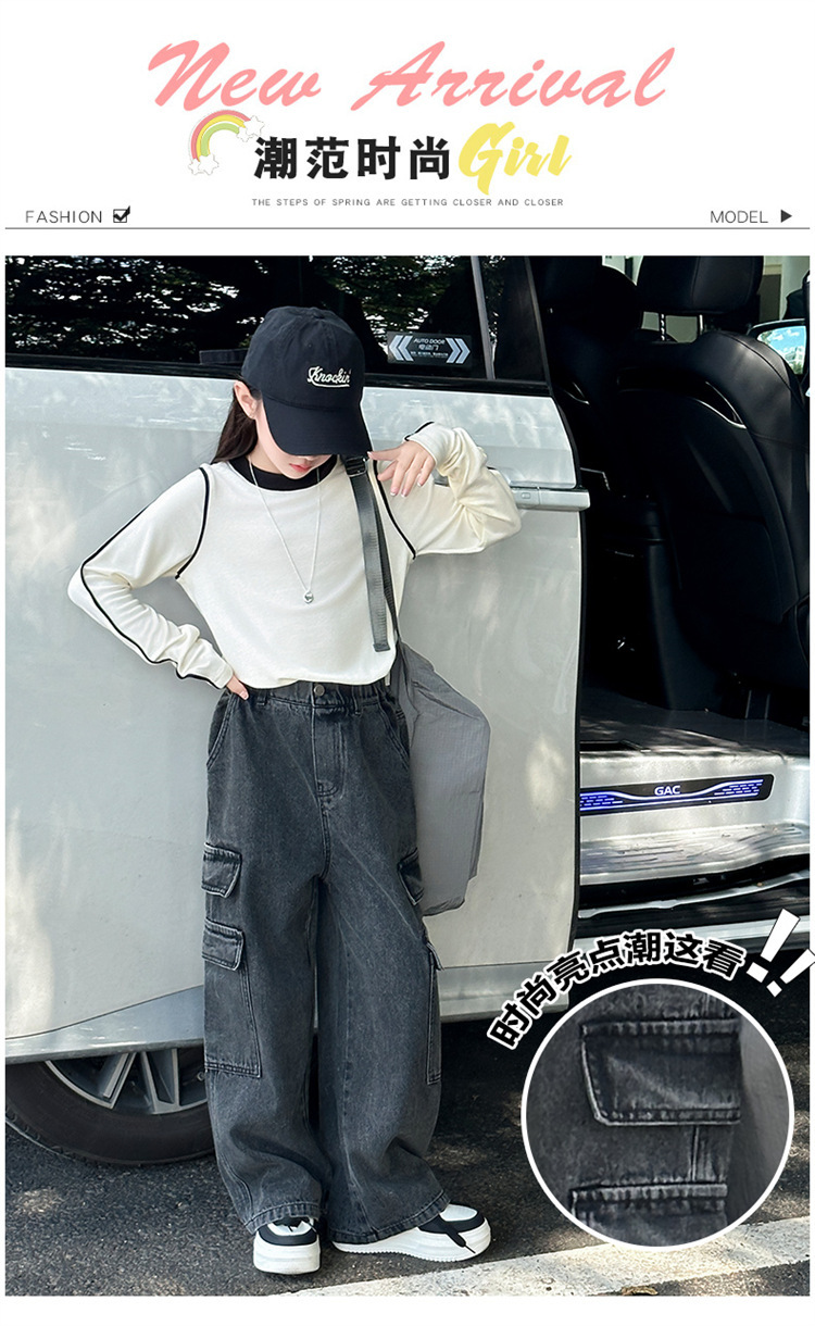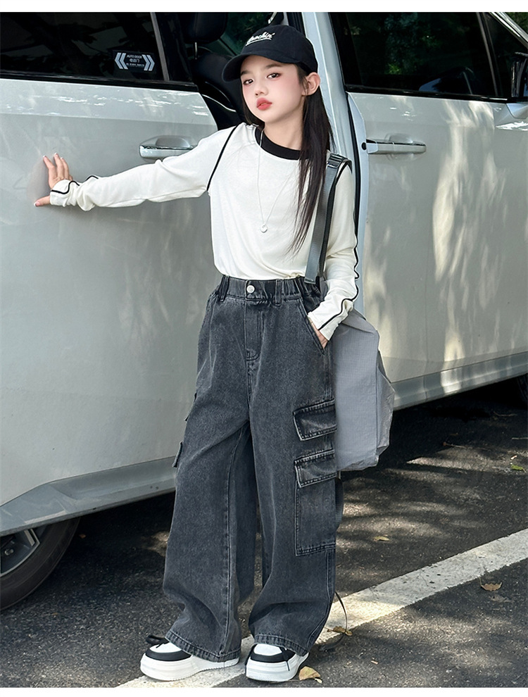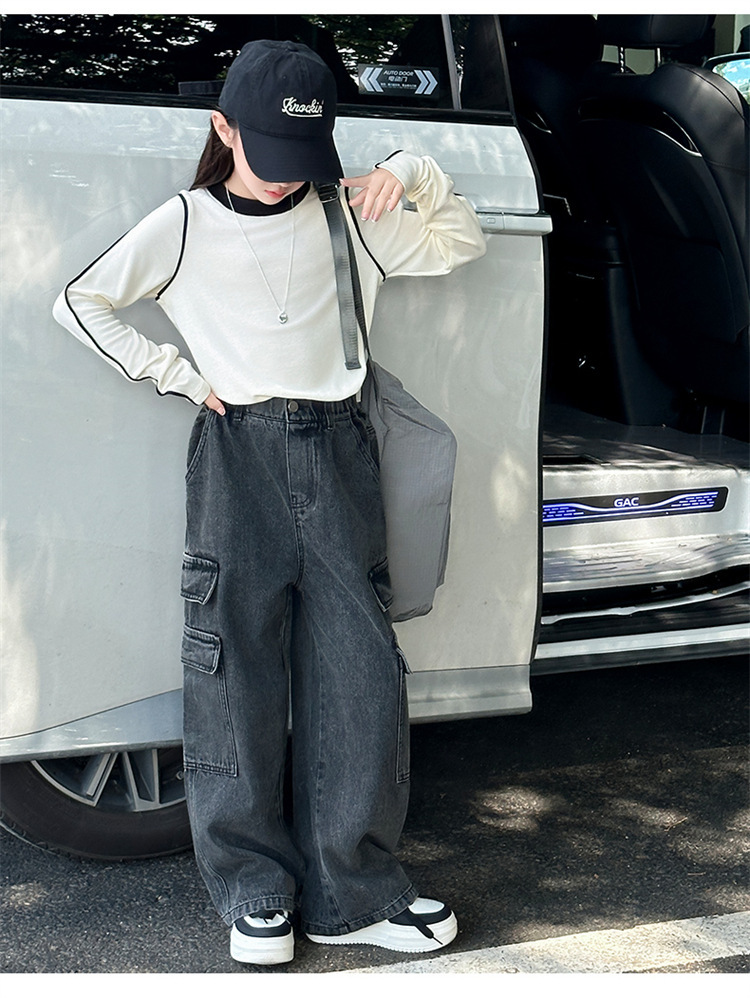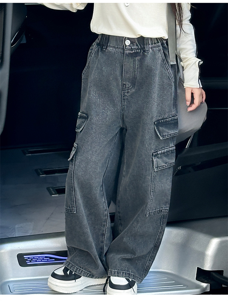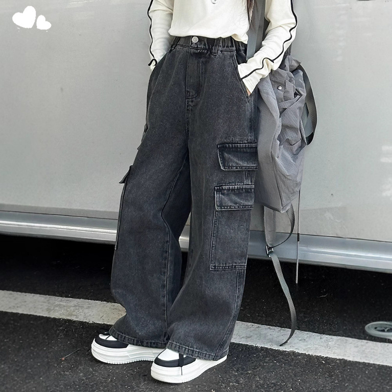 Xinyi 작은 사랑 소녀의 바지 청바지 봄과 가을 2025 새로운 어린이 넓은 다리 바지 소녀 큰 어린이 봄 튀김 거리스토어 가기
