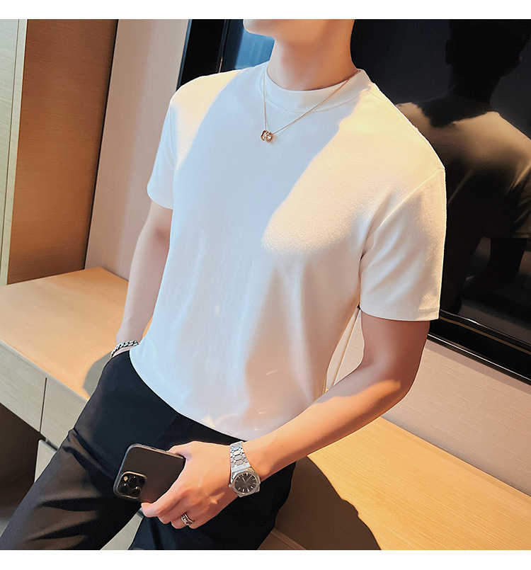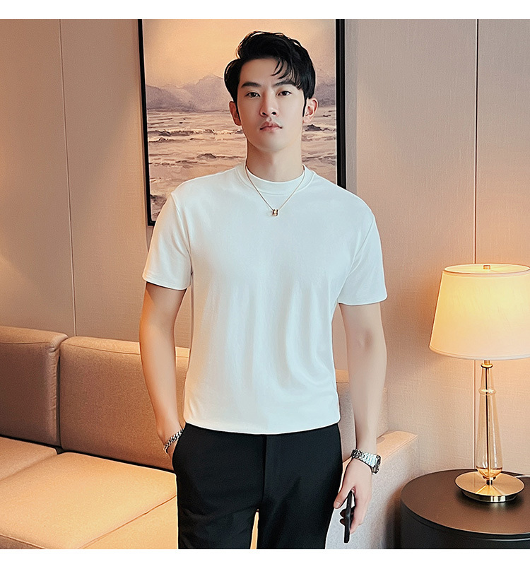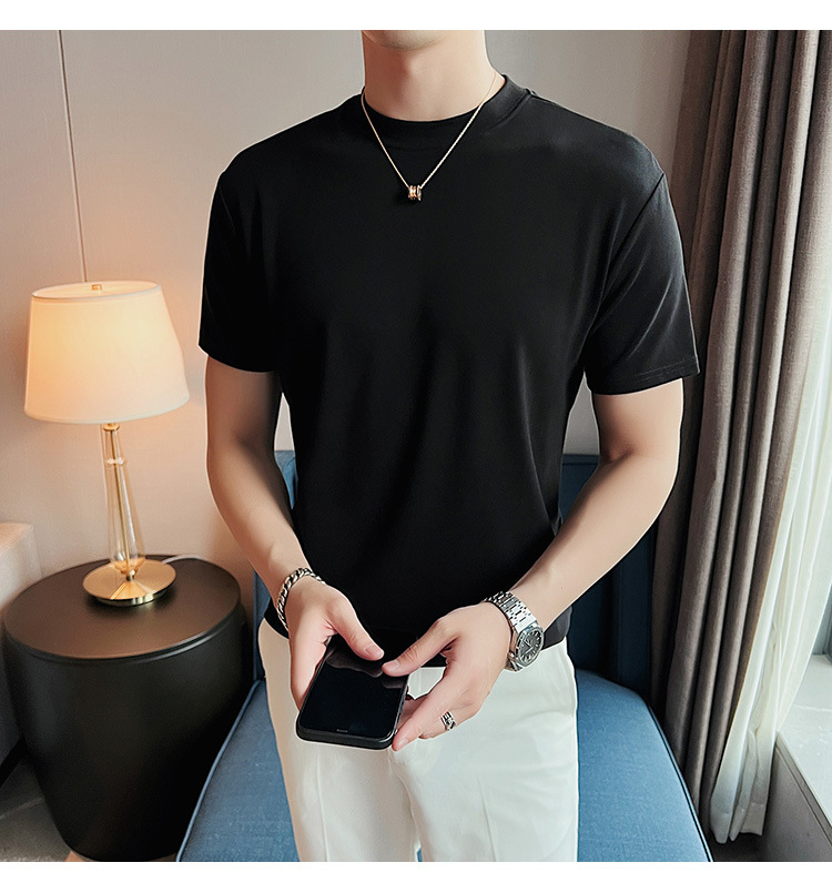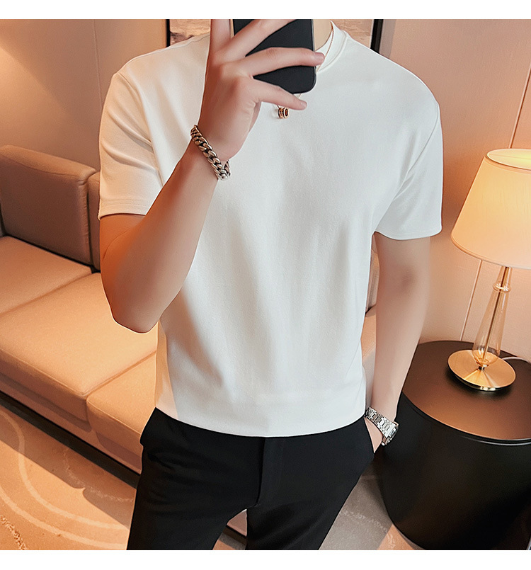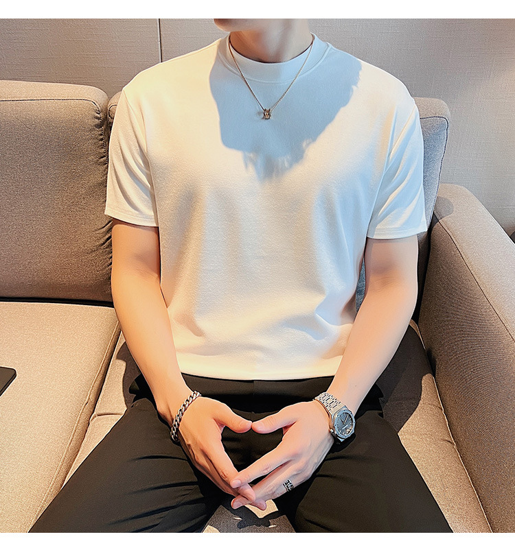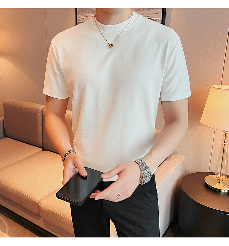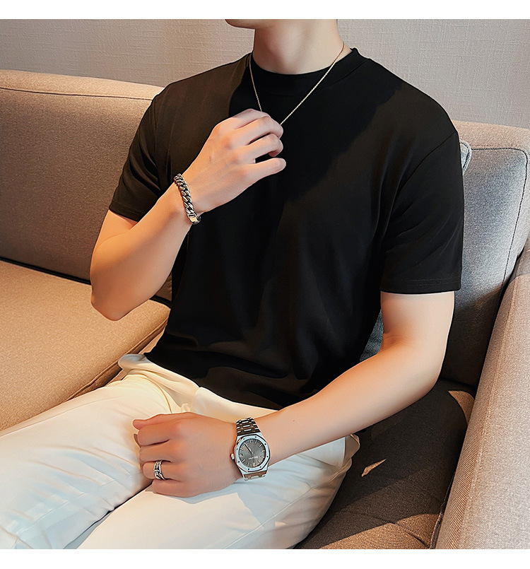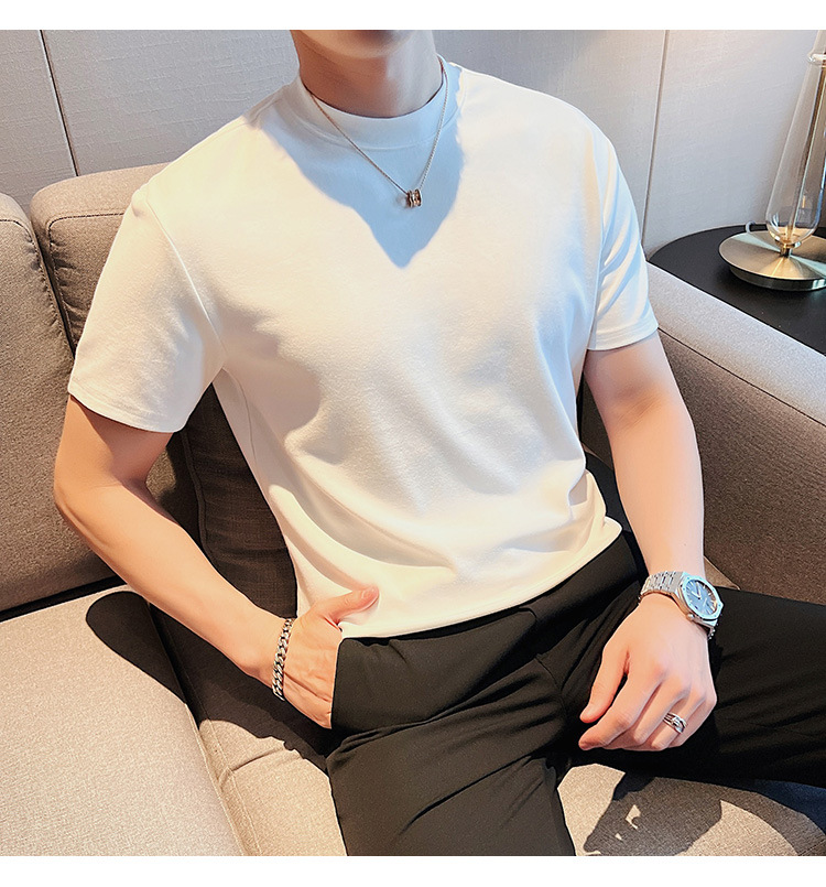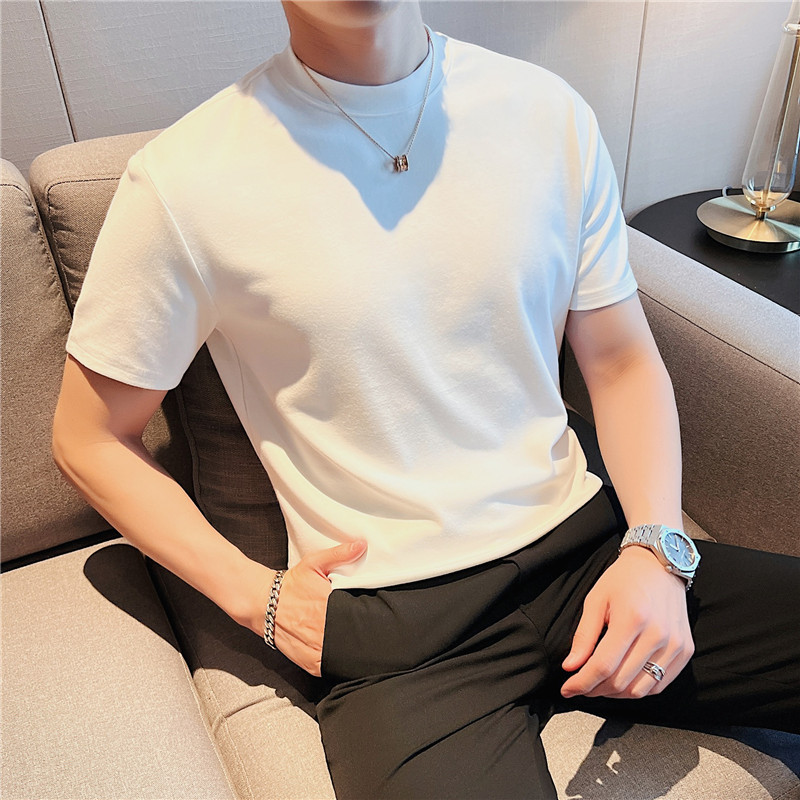 남자 반팔 티셔츠 작은 둥근 목 하이 퀄리티 95 면 슬림핏 편안한 스트레치 반소매 티셔츠 올 매치 남성베이스 셔츠스토어 가기