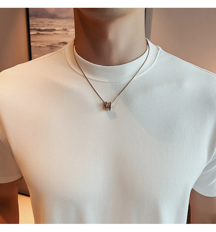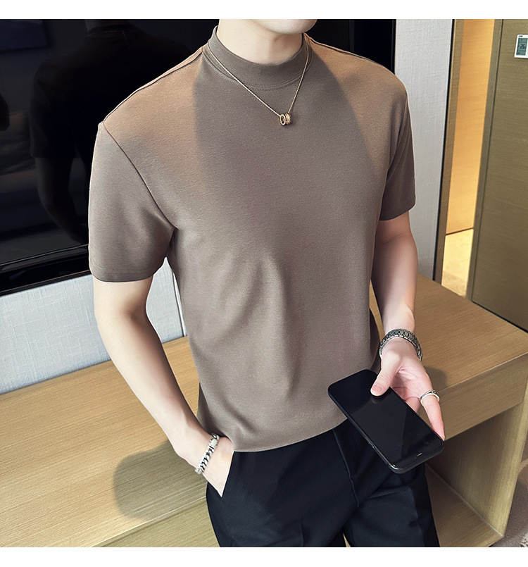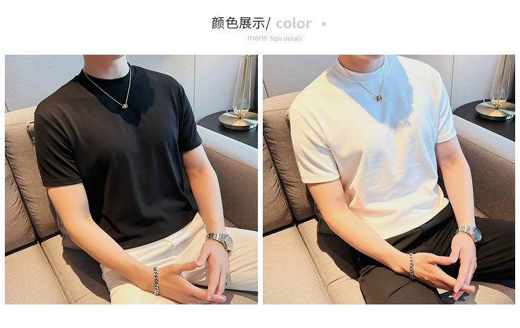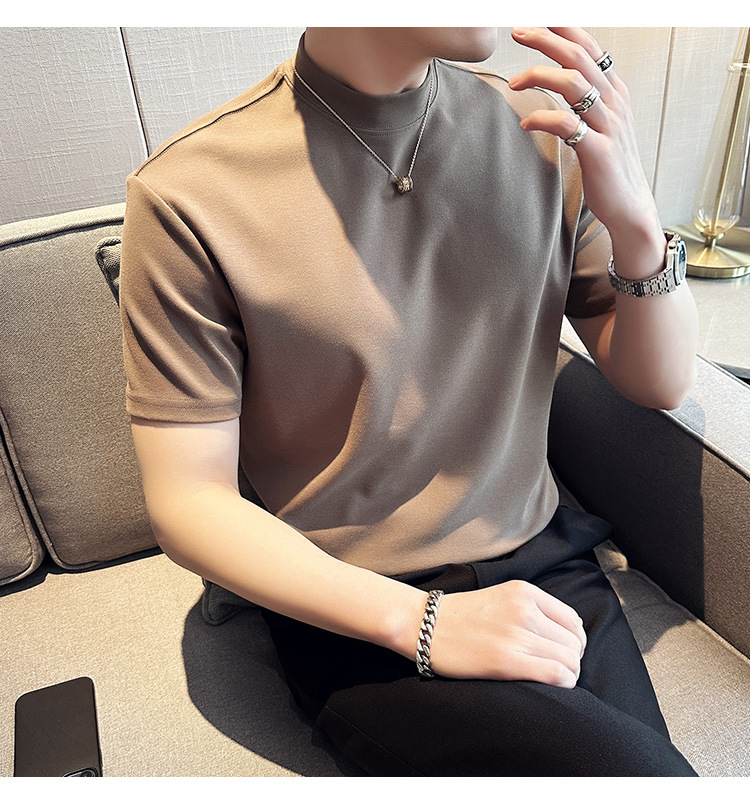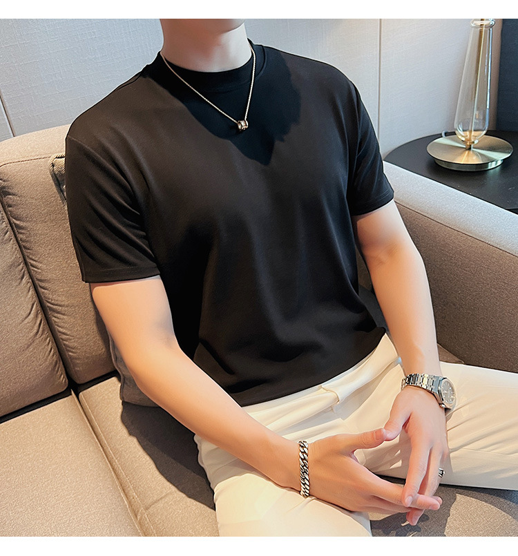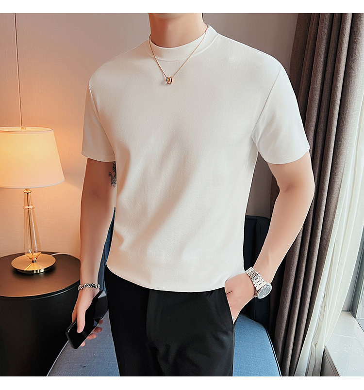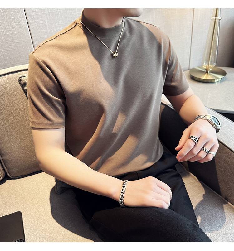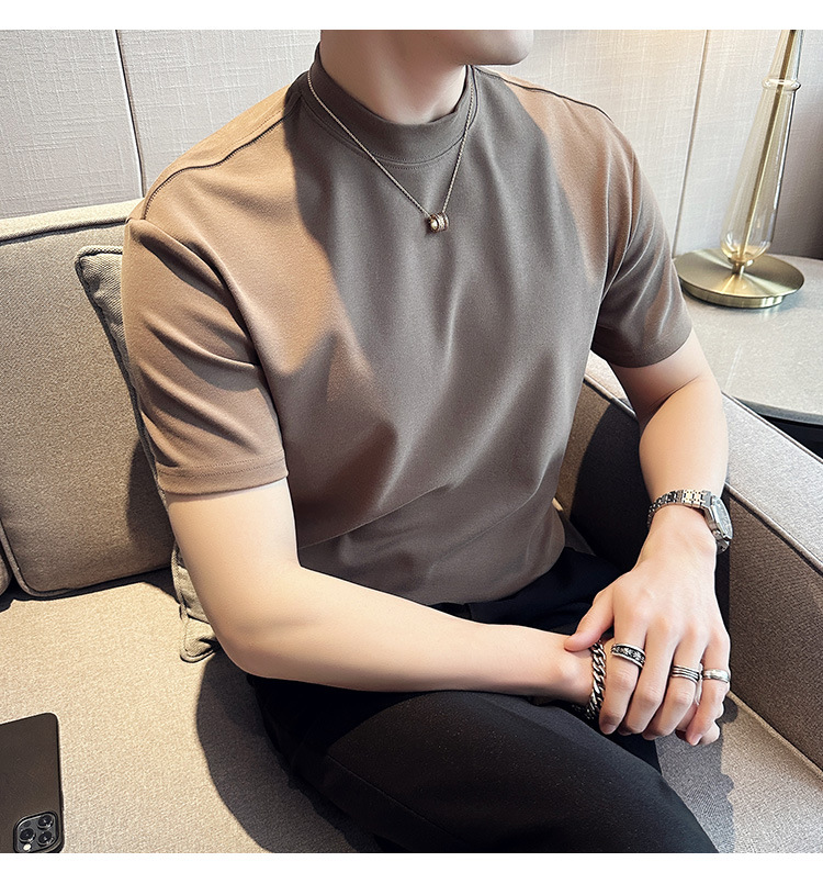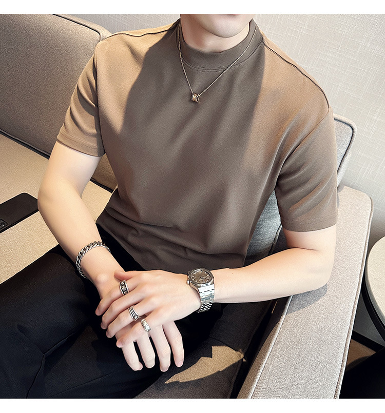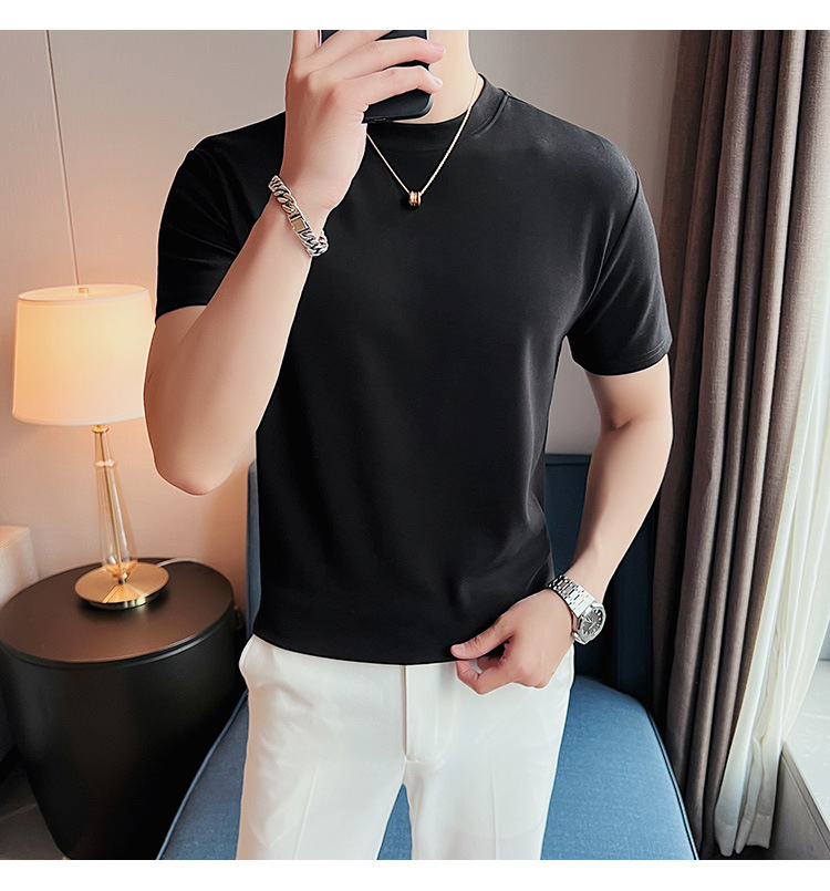 남자 반팔 티셔츠 작은 둥근 목 하이 퀄리티 95 면 슬림핏 편안한 스트레치 반소매 티셔츠 올 매치 남성베이스 셔츠스토어 가기